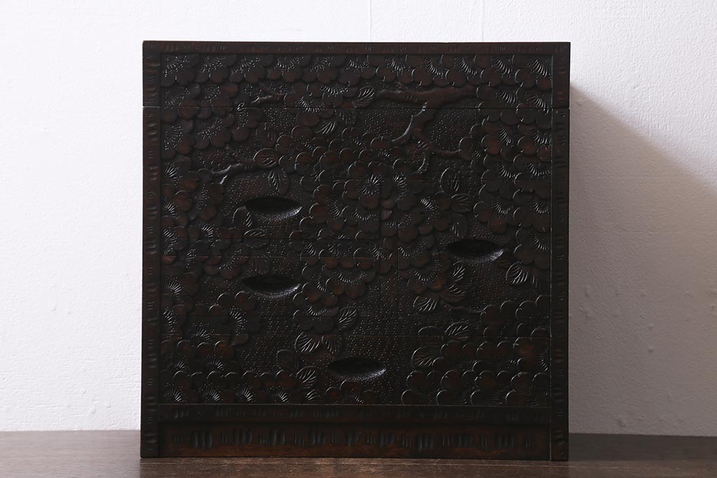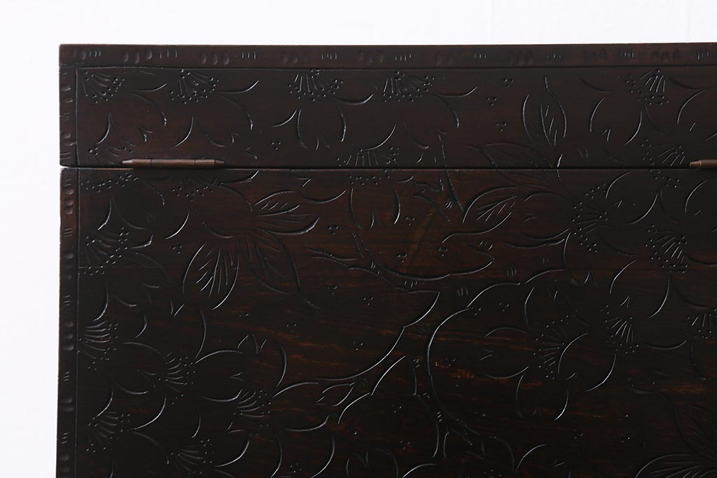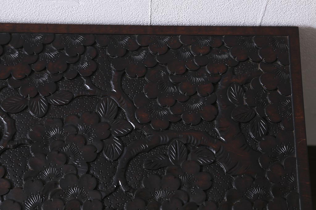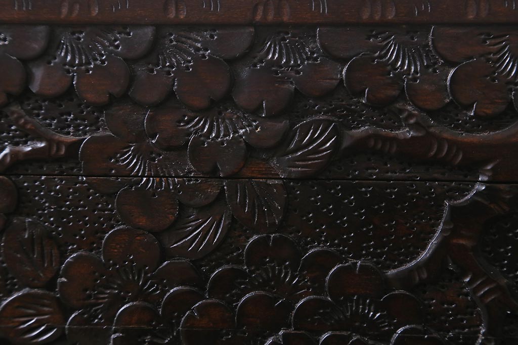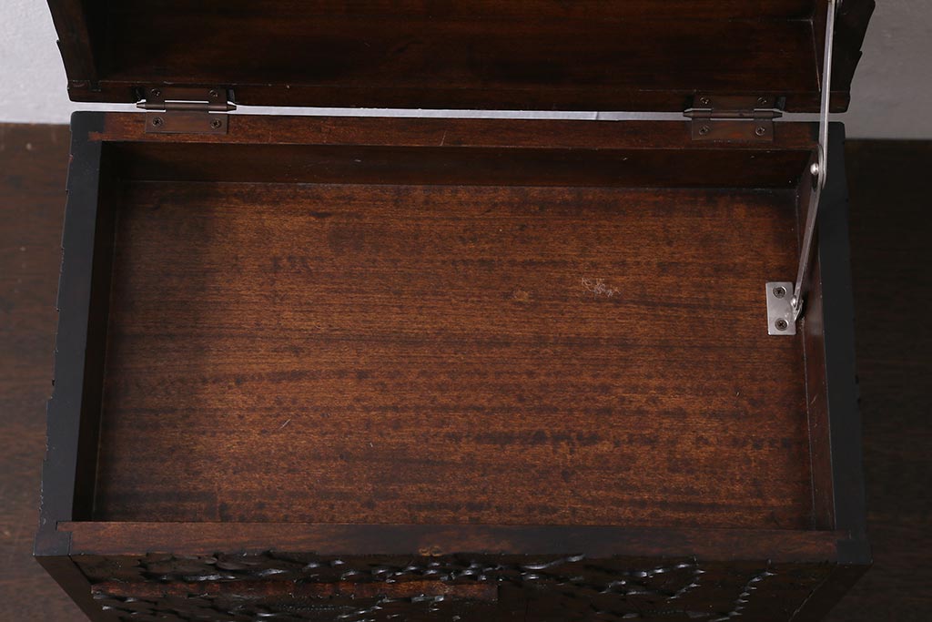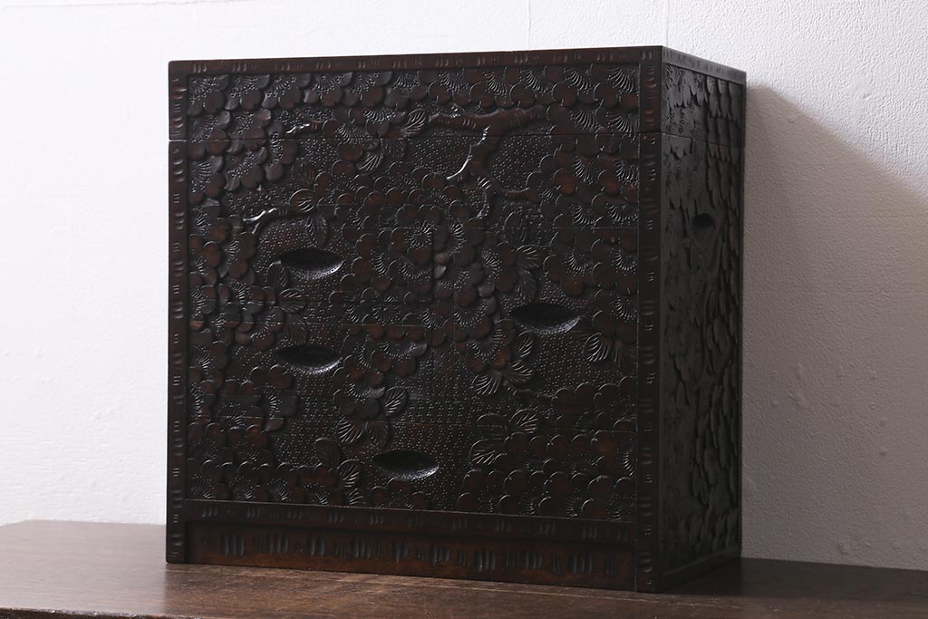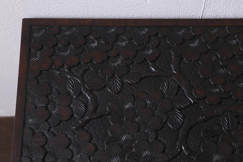 民芸家具 > 中古 伝統工芸 軽井沢彫り 満開に咲き誇る桜の彫りが華やかなトレー付き小引き出し(小物収納、引き出し)(R-041061)