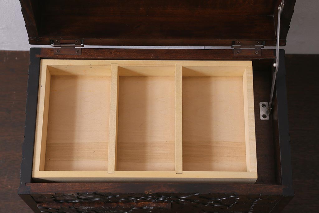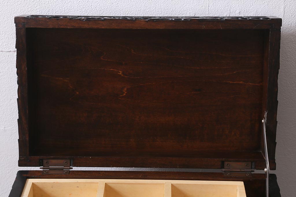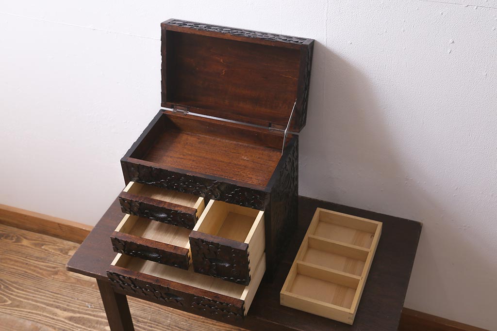 軽井沢彫りのトレー付き小引き出しです。