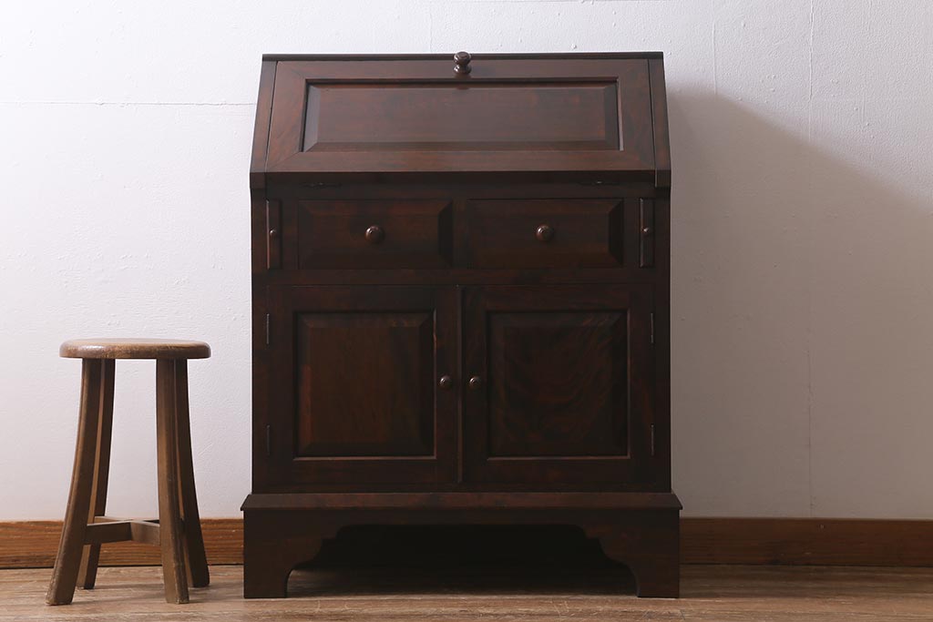 民芸家具 > 中古 松本民芸家具 気品溢れる佇まいが魅力的なライティングビューロー(簿記机、在宅ワーク、在宅用ワークデスク、机、在宅ワーク、在宅用引き出し)(R-041054)