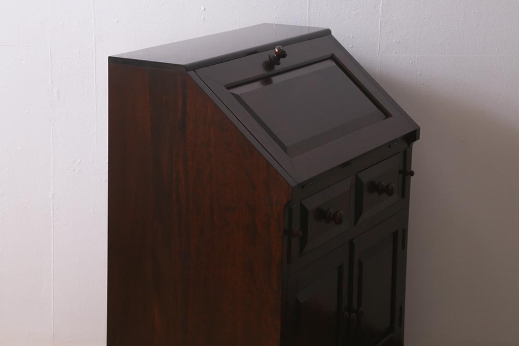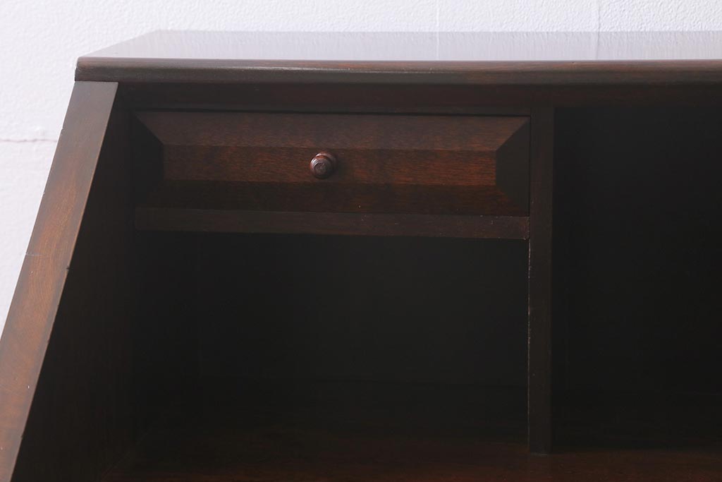 中古 松本民芸家具 気品溢れる佇まいが魅力的なライティングビューロー(簿記机、在宅ワーク、在宅用ワークデスク、机、在宅ワーク、在宅用引き出し)(R-041054)