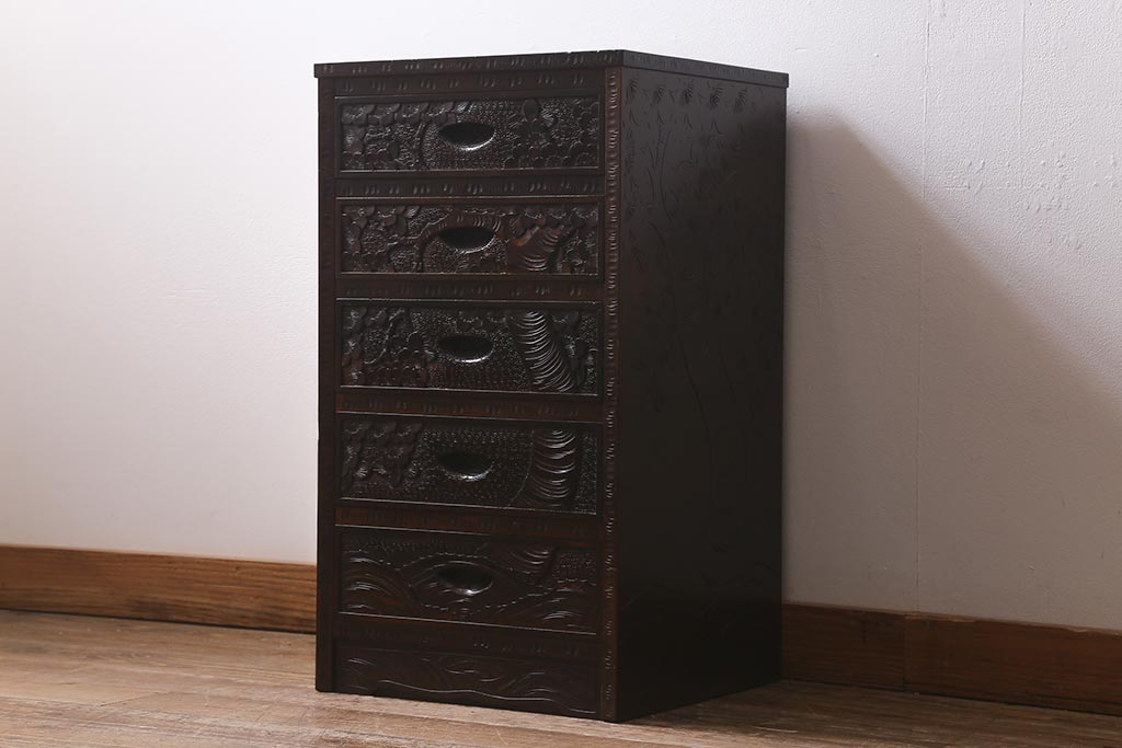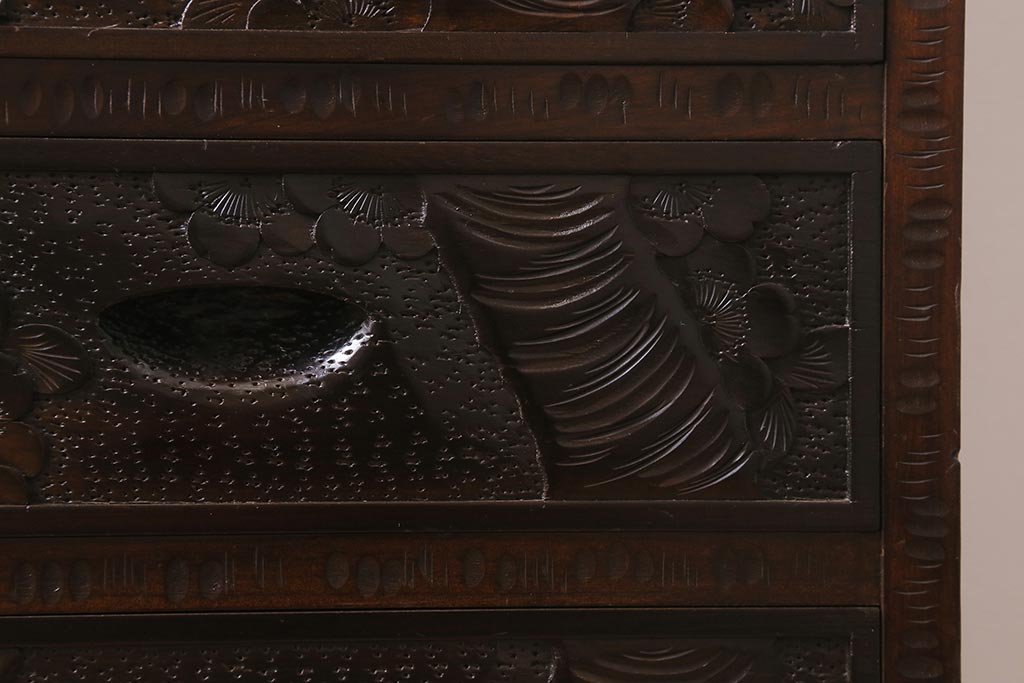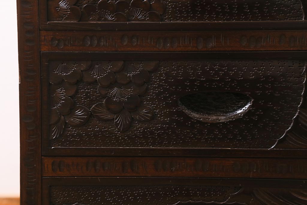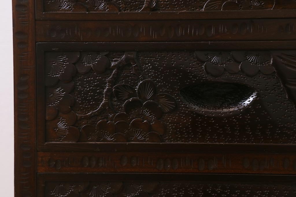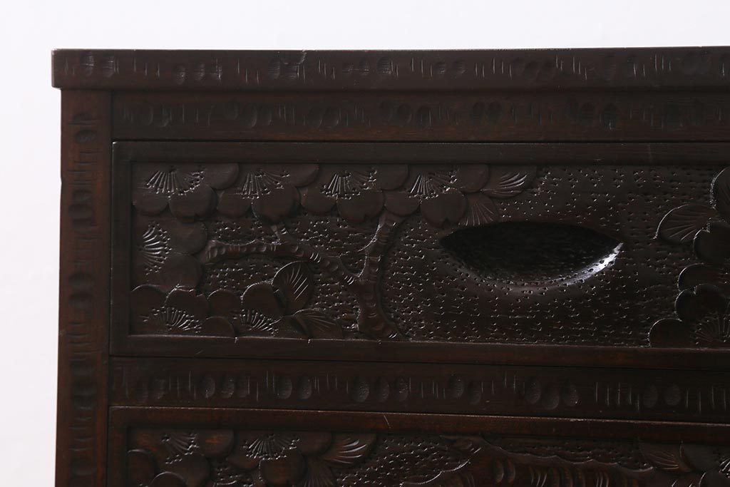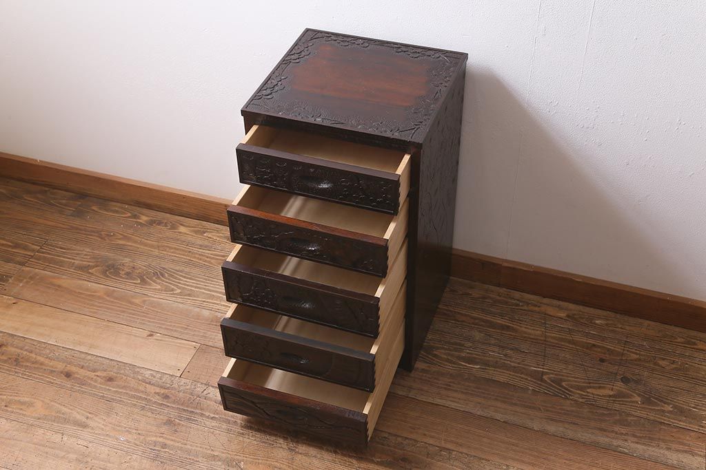 和箪笥 > 中古 伝統工芸 軽井沢彫り 桜の彫りが優美な小振りのチェスト(小物収納、小箪笥、引き出し)(R-041059)