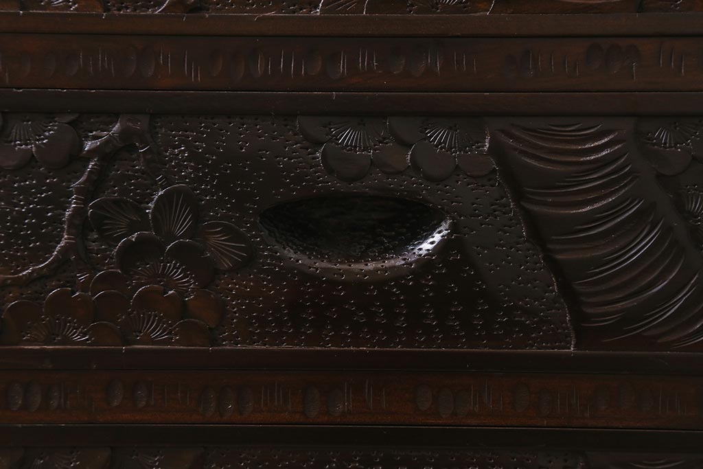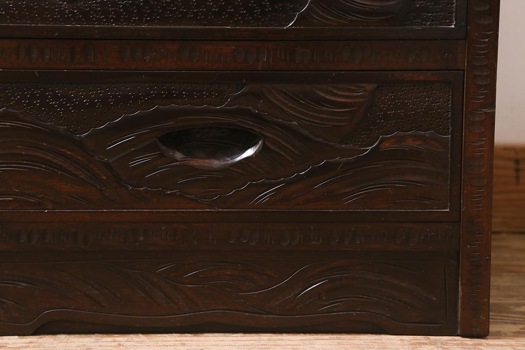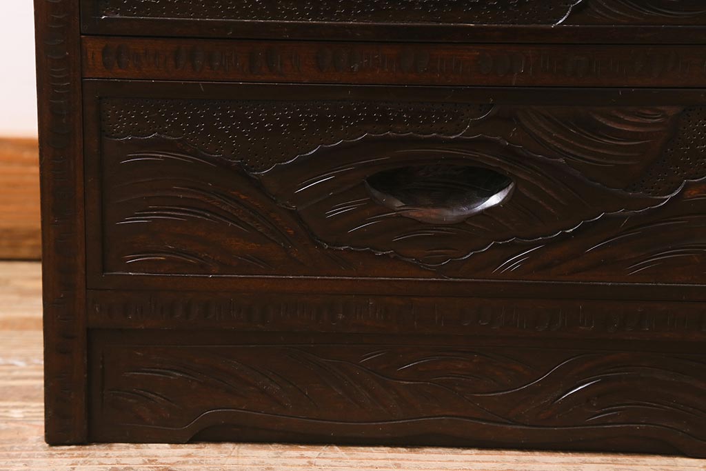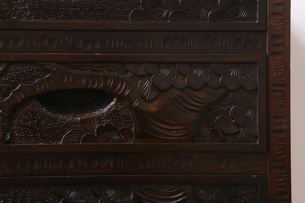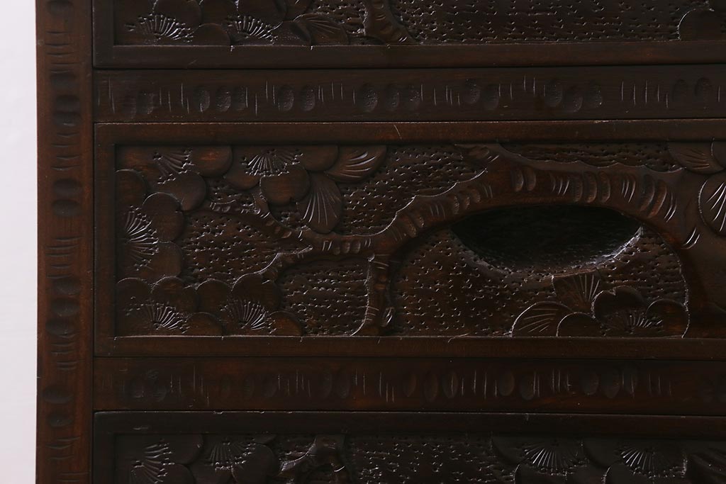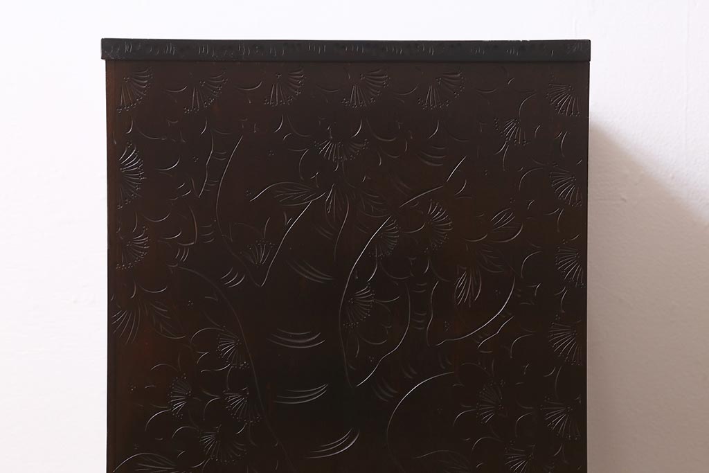 和箪笥 > 中古 伝統工芸 軽井沢彫り 桜の彫りが優美な小振りのチェスト(小物収納、小箪笥、引き出し)(R-041059)