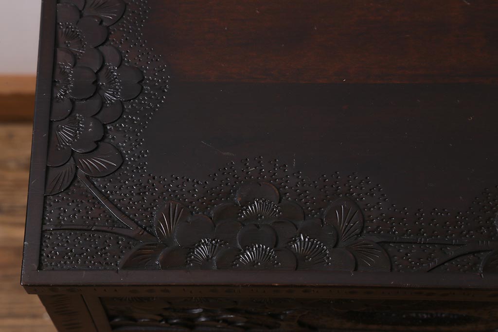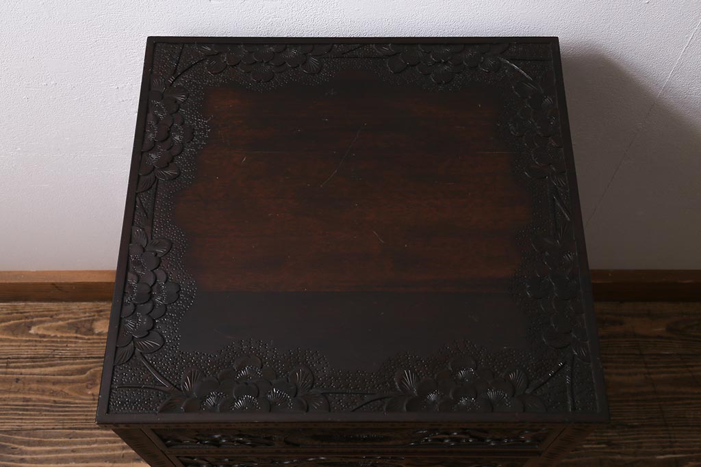 和箪笥> 小箪笥 > 中古 伝統工芸 軽井沢彫り 桜の彫りが優美な小振りのチェスト(小物収納、小箪笥、引き出し)(R-041059)