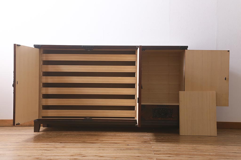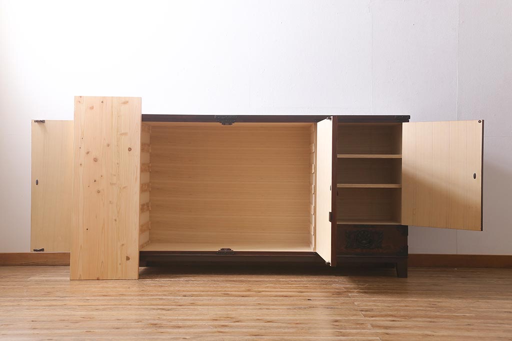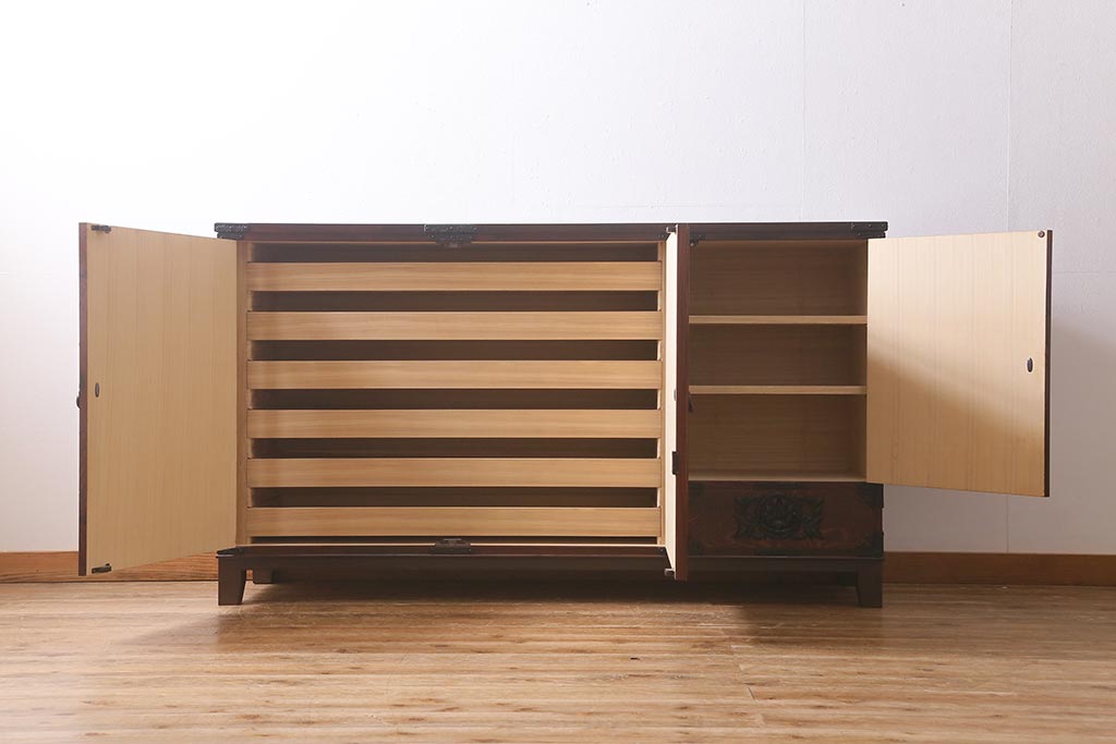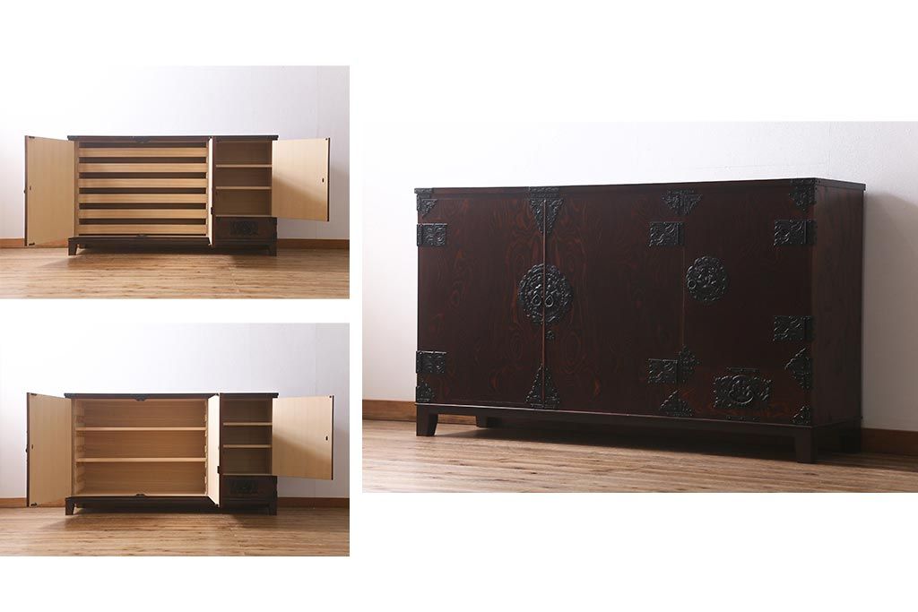 和箪笥 > 当店リメイク家具 伝統民芸 岩谷堂箪笥 衣装盆・収納棚2way 脚付サイドボード(衣装箪笥、収納棚)(R-041045)