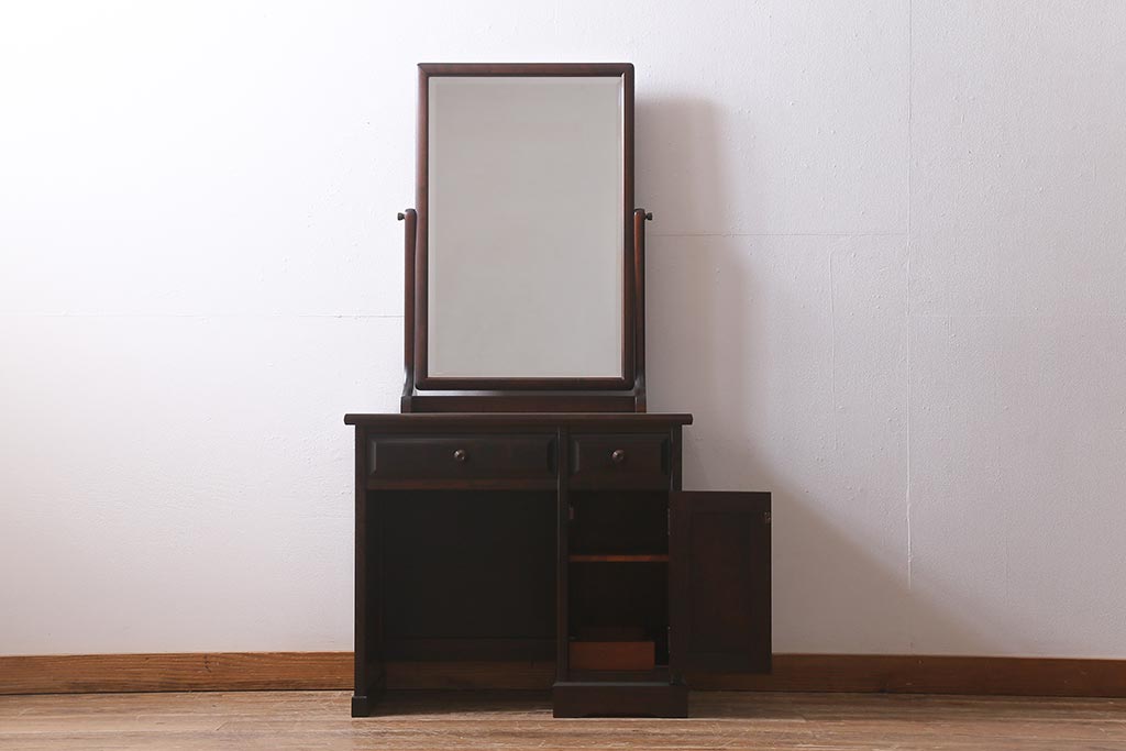 中古 北海道民芸家具 和洋どちらにも合わせやすい深みのある色味が魅力のドレッサー(鏡台)(R-041070)