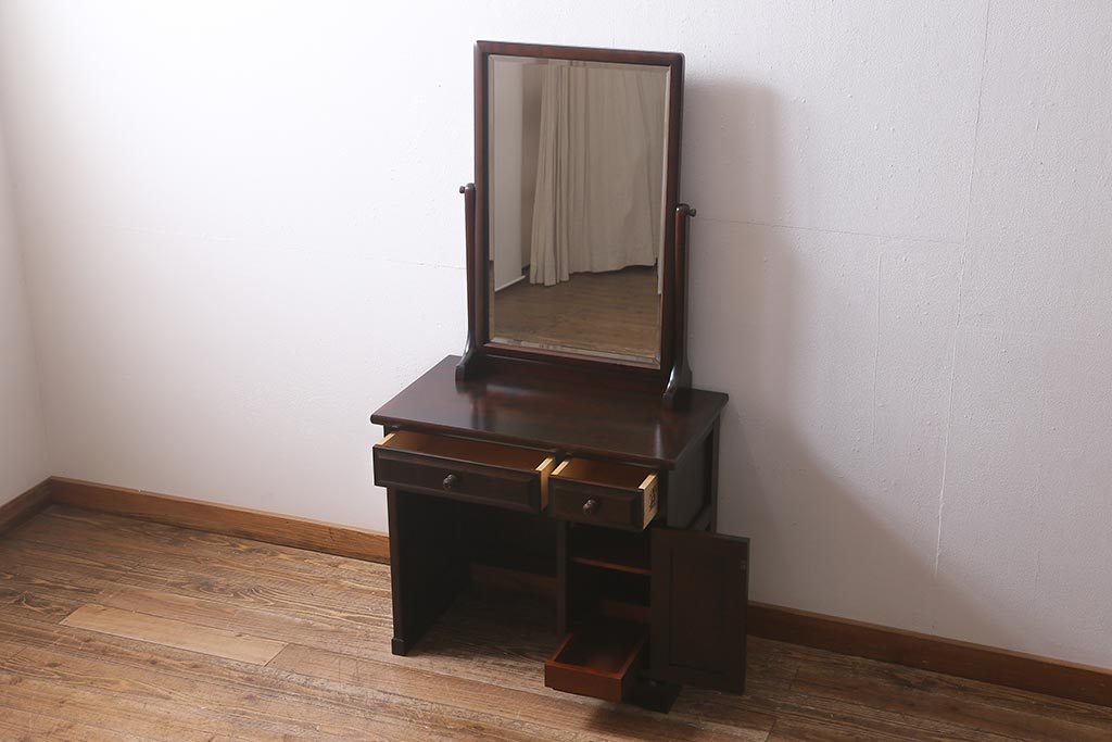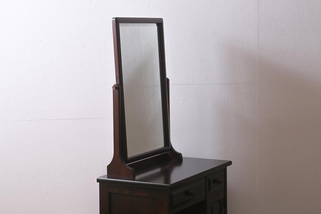 中古 北海道民芸家具 和洋どちらにも合わせやすい深みのある色味が魅力のドレッサー(鏡台)(R-041070)です。