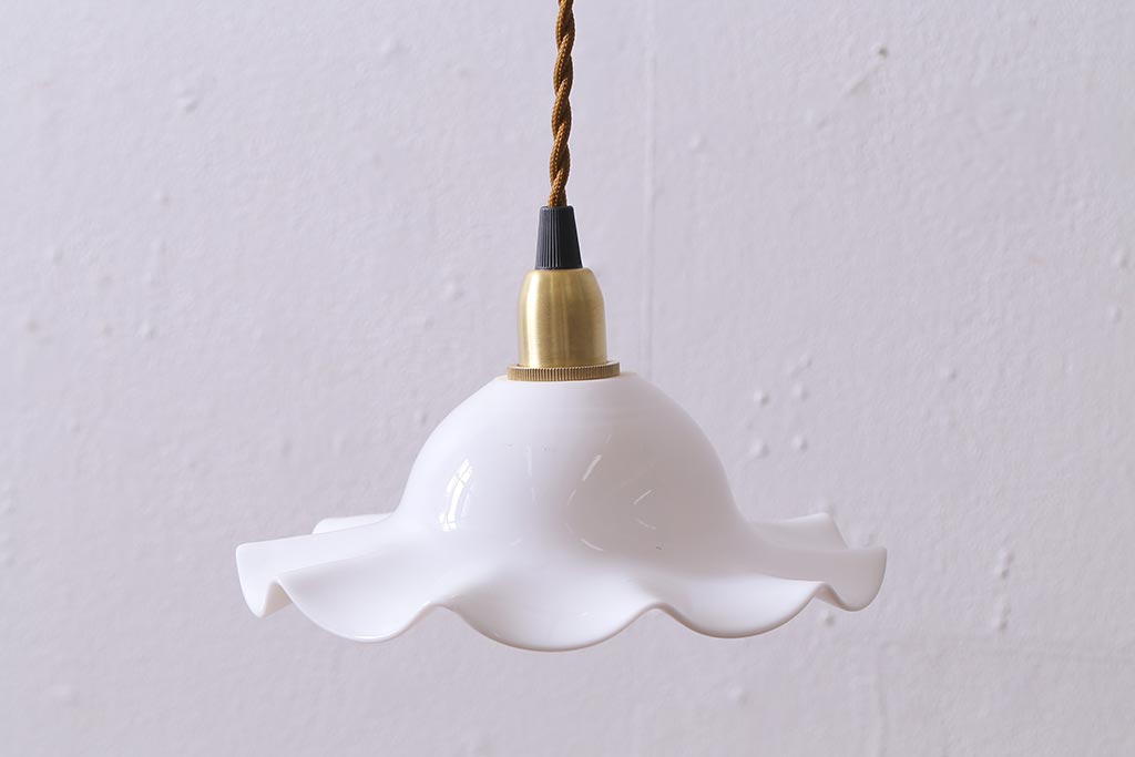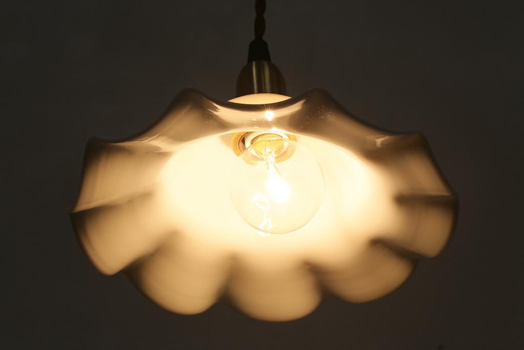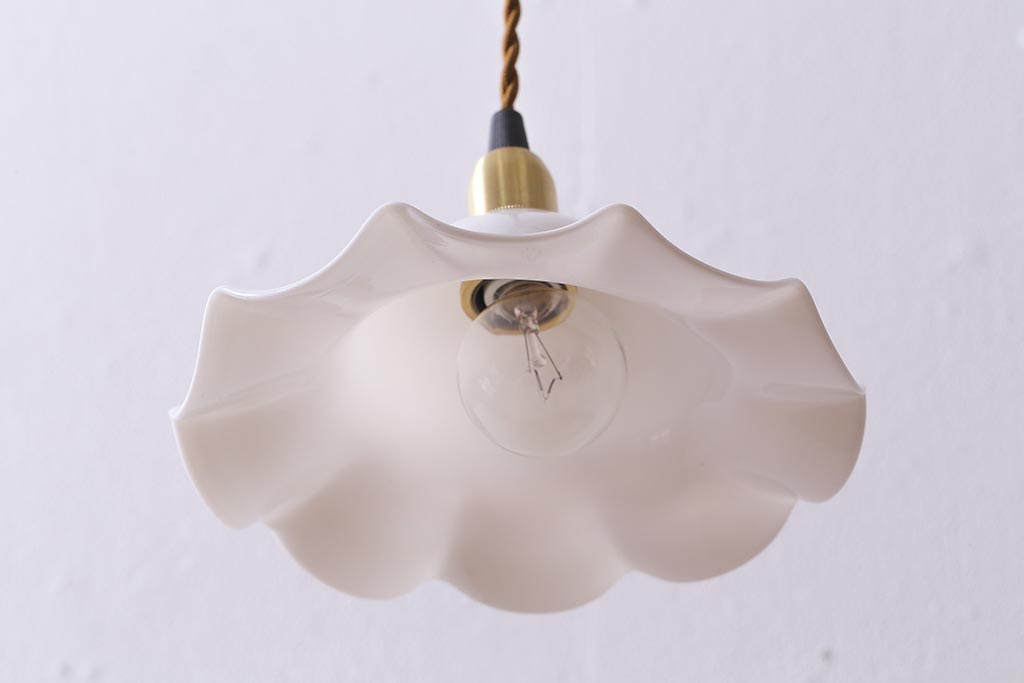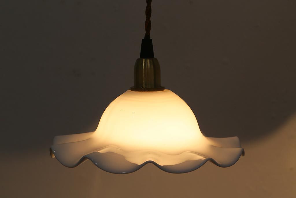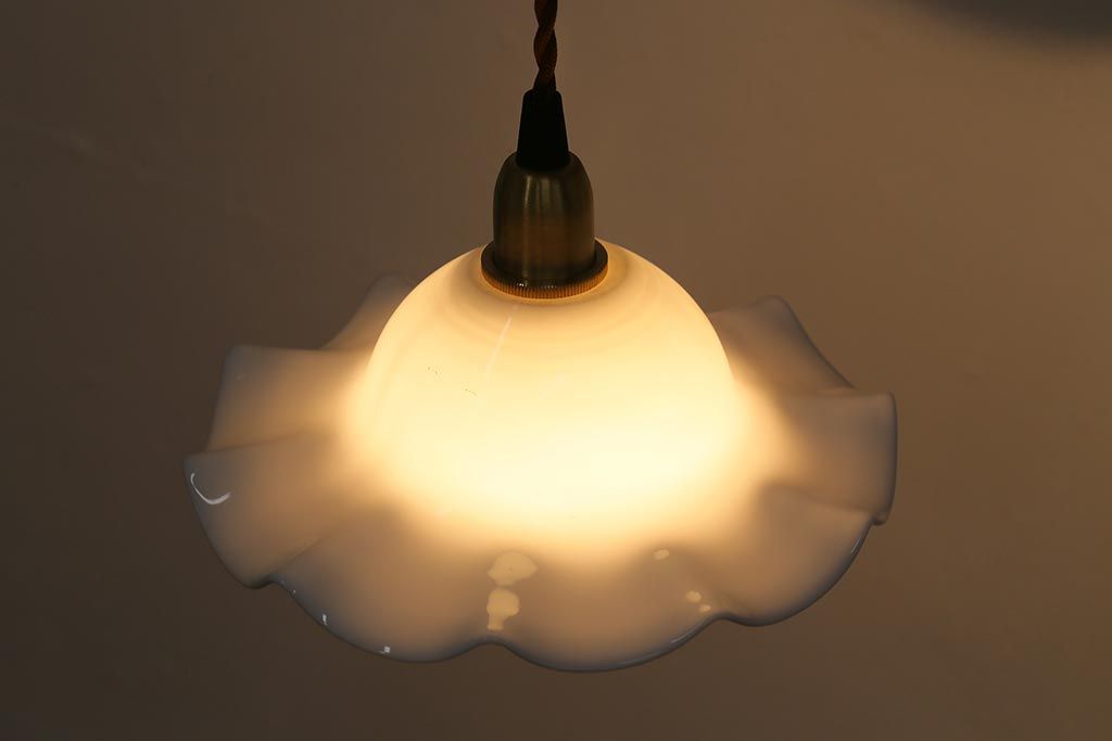 イギリスヴィンテージ照明 可愛らしいフリルシェードのペンダントライト(ランプシェード、天井照明)(R-041022)です。