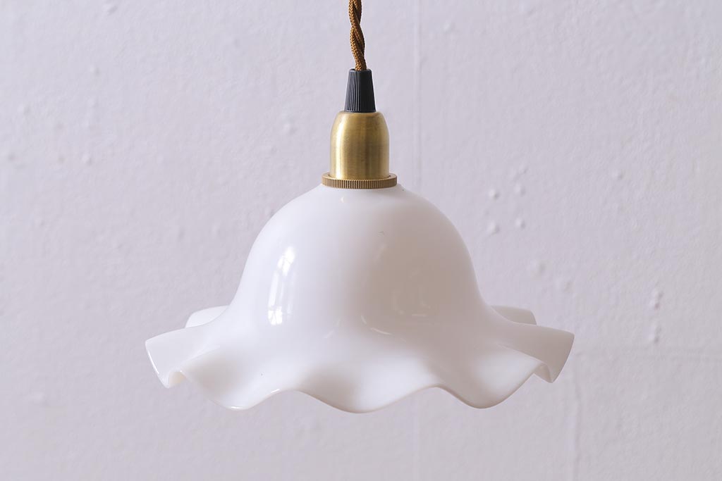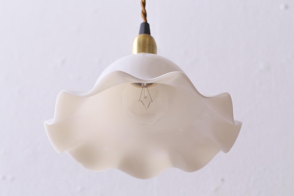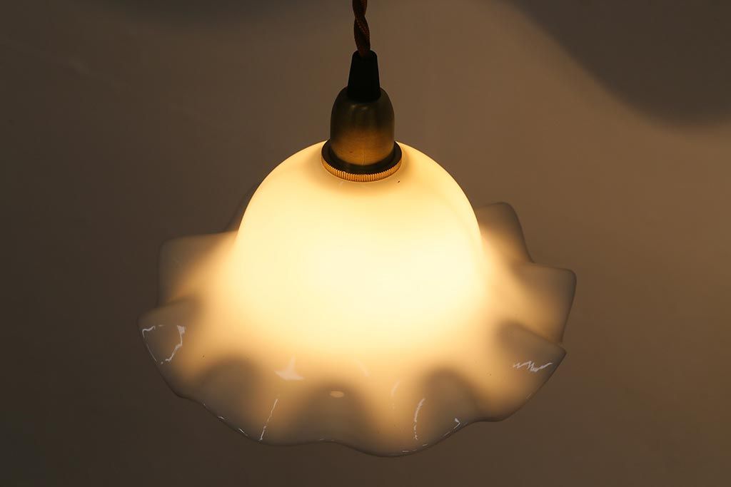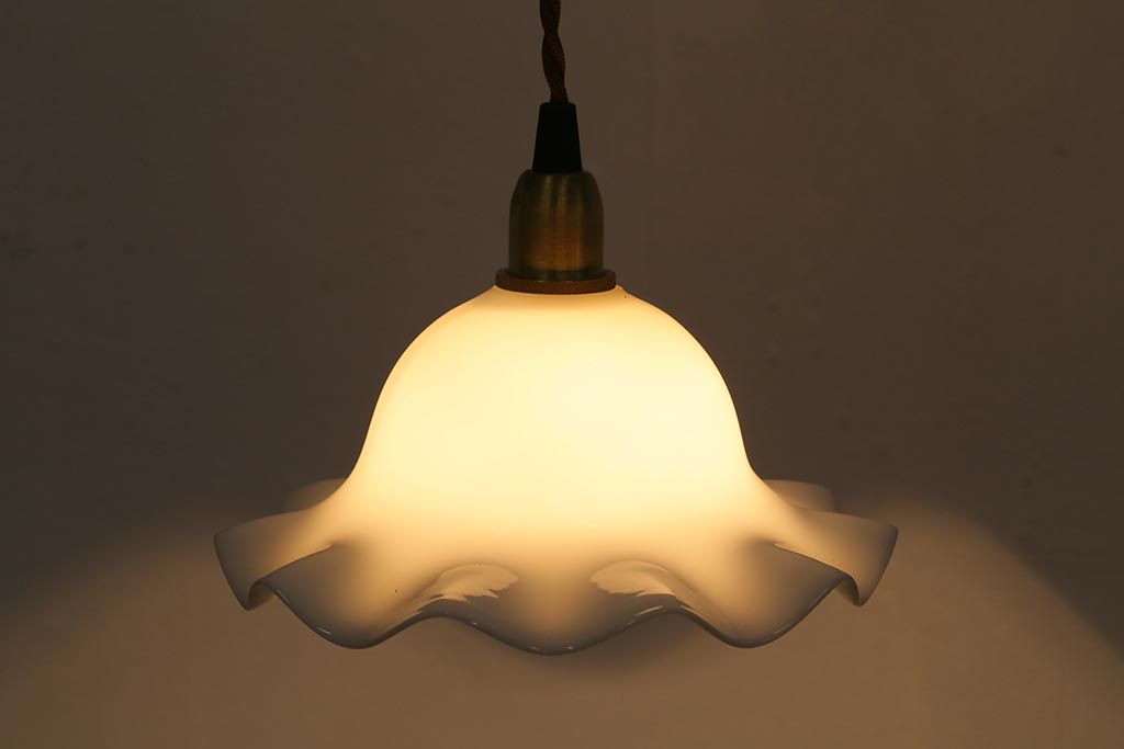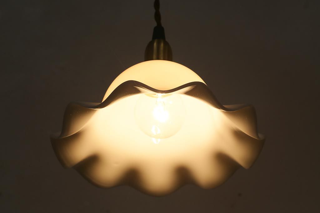 イギリスヴィンテージ照明 可愛らしいフリルシェードのペンダントライト(ランプシェード、天井照明)(R-041023)です。