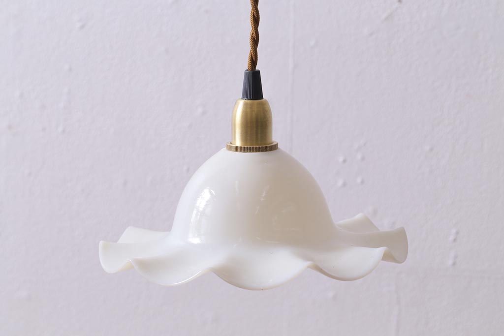イギリスヴィンテージ照明 フリルシェードが可愛らしいペンダントライト(ランプシェード、天井照明)(R-041024)です。