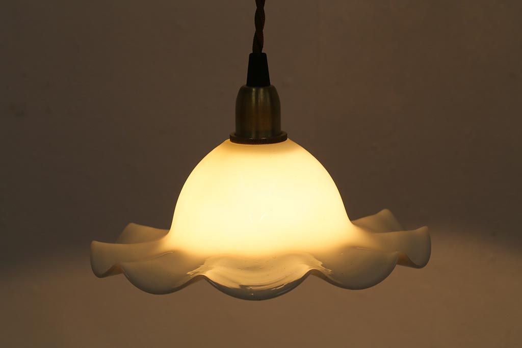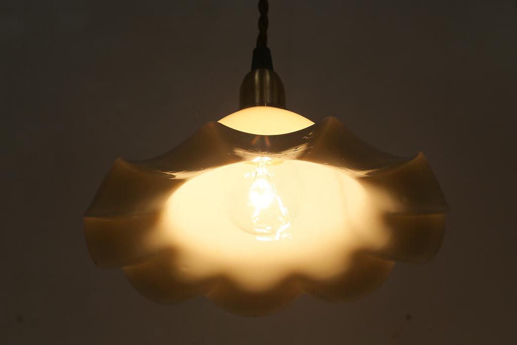 イギリスヴィンテージ照明 フリルシェードが可愛らしいペンダントライト(ランプシェード、天井照明、ビンテージ)(R-041024)