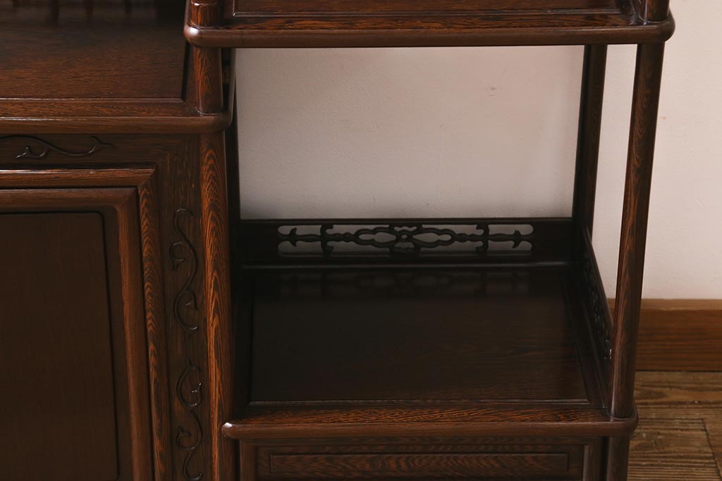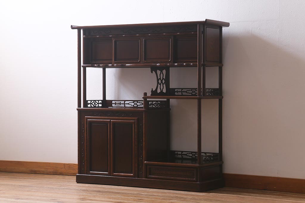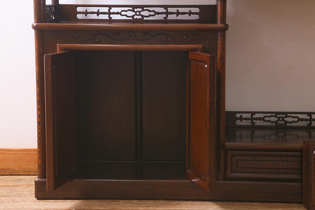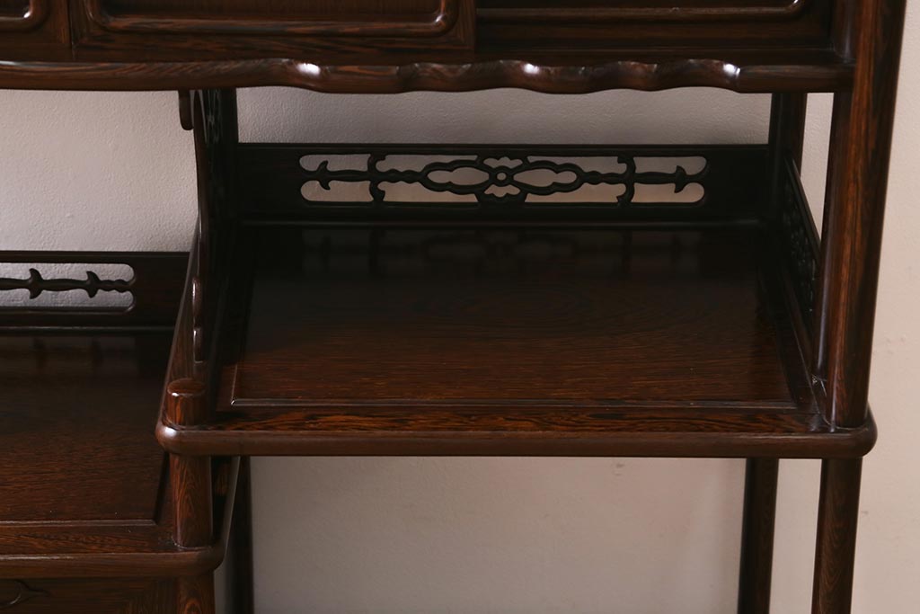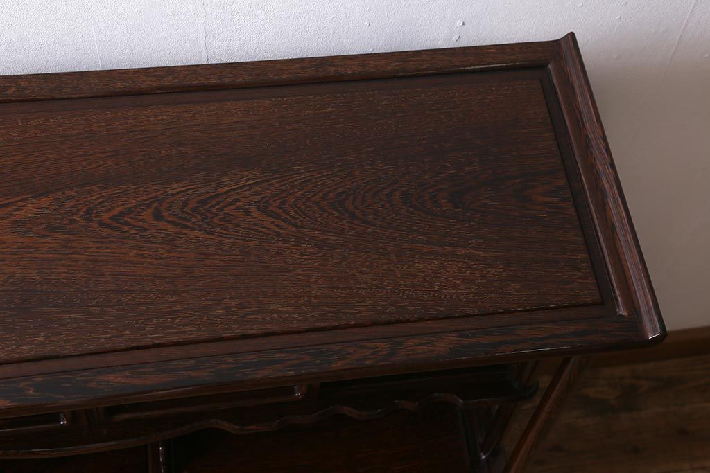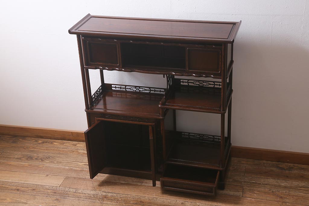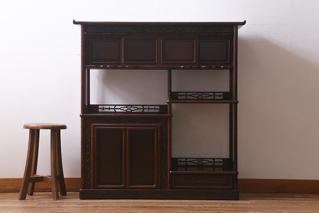 和箪笥> 茶箪笥・茶棚 > 中古 民芸家具 鉄刀木(タガヤサン) アジアンテイストにもおすすめな上品な意匠の茶棚(飾り棚、収納棚)(R-041075)