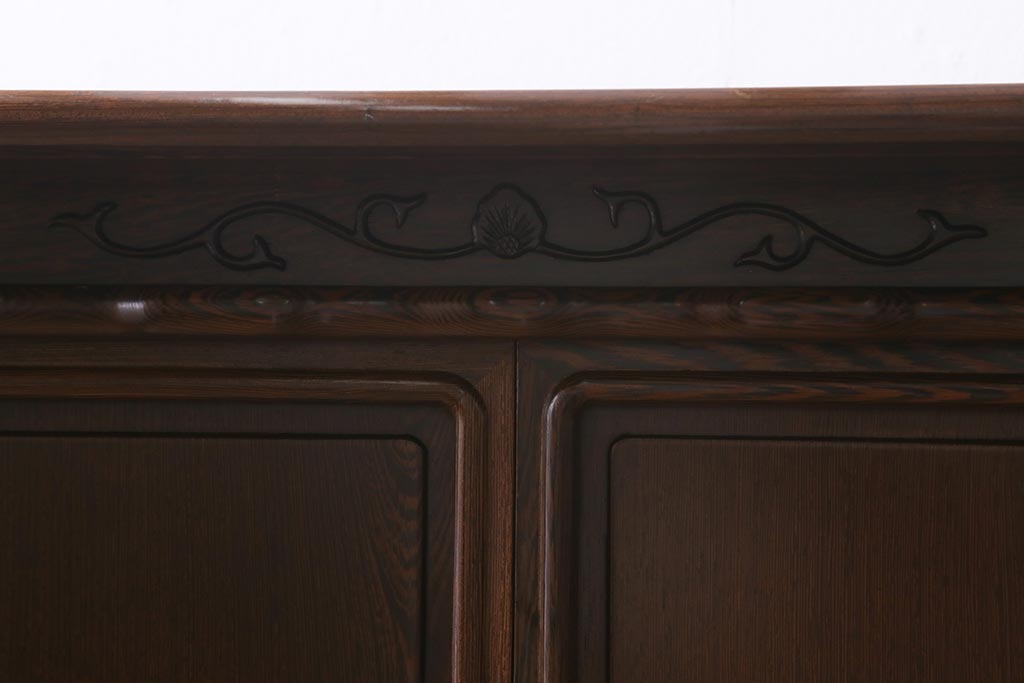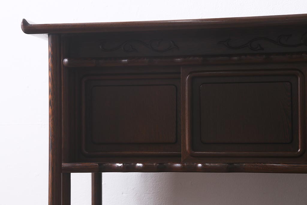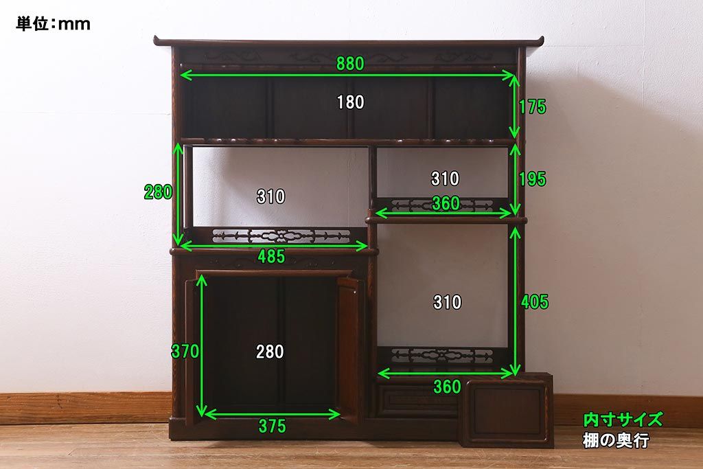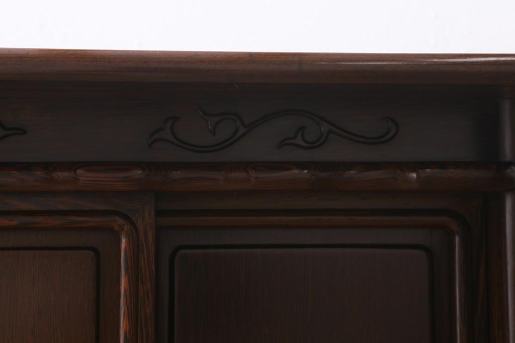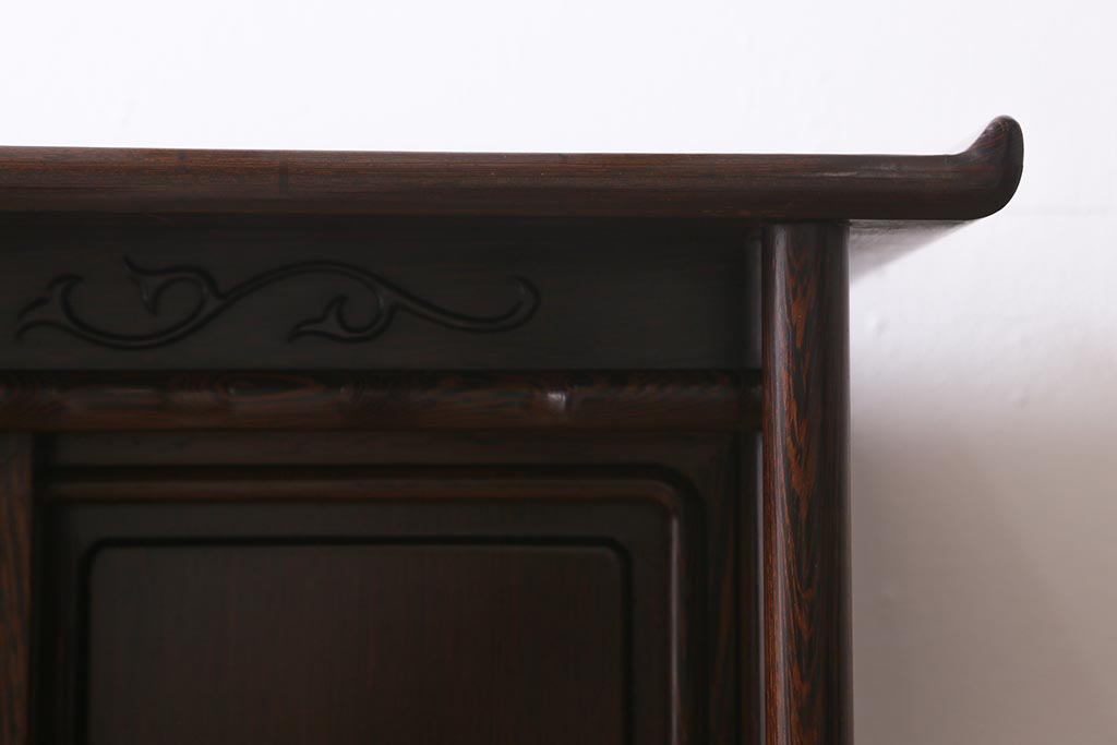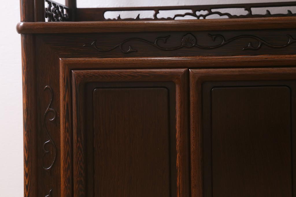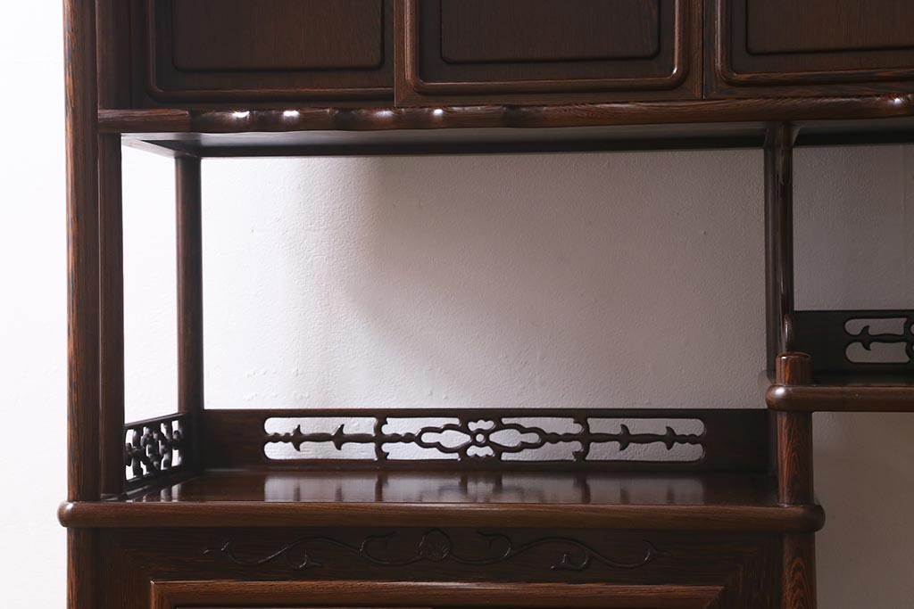 和箪笥> 茶箪笥・茶棚 > 中古 民芸家具 鉄刀木(タガヤサン) アジアンテイストにもおすすめな上品な意匠の茶棚(飾り棚、収納棚)(R-041075)