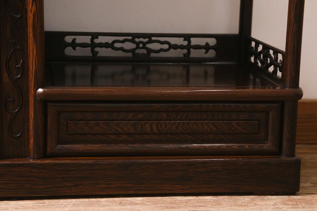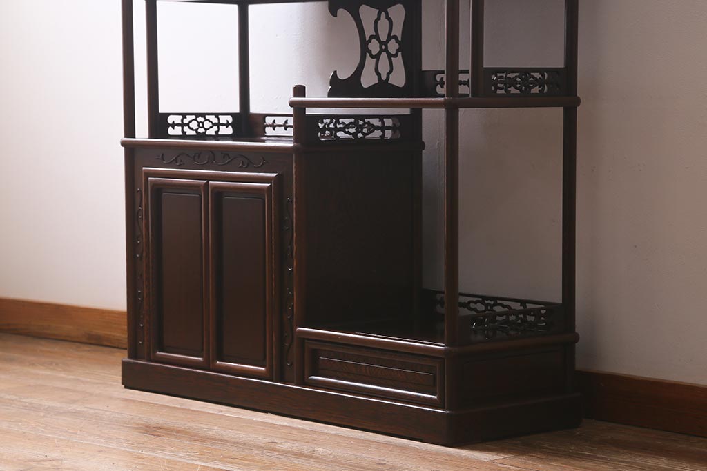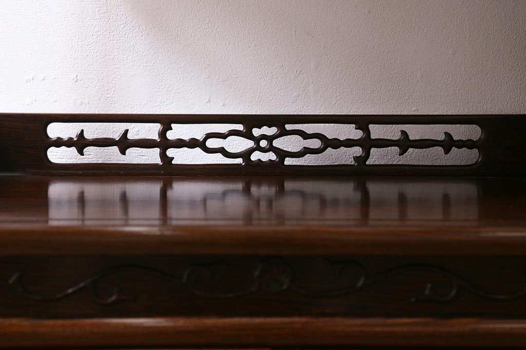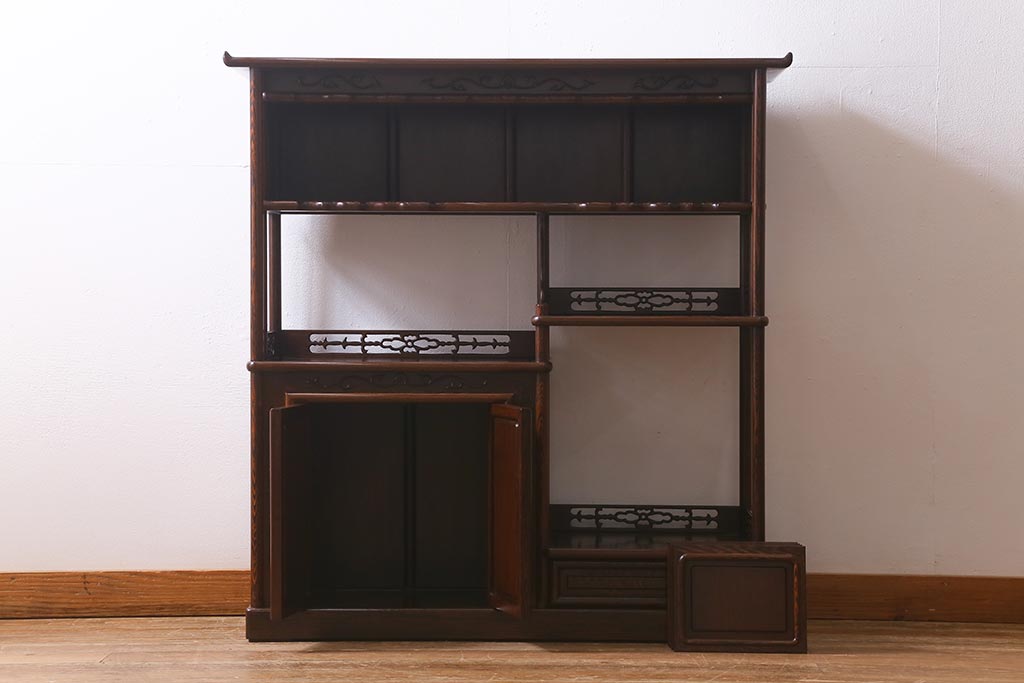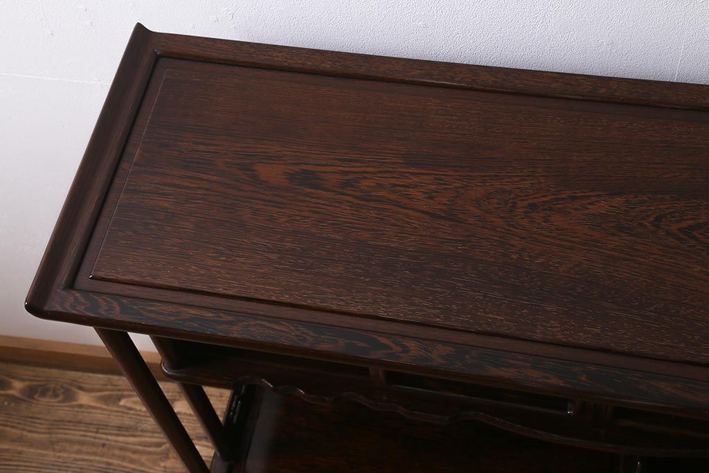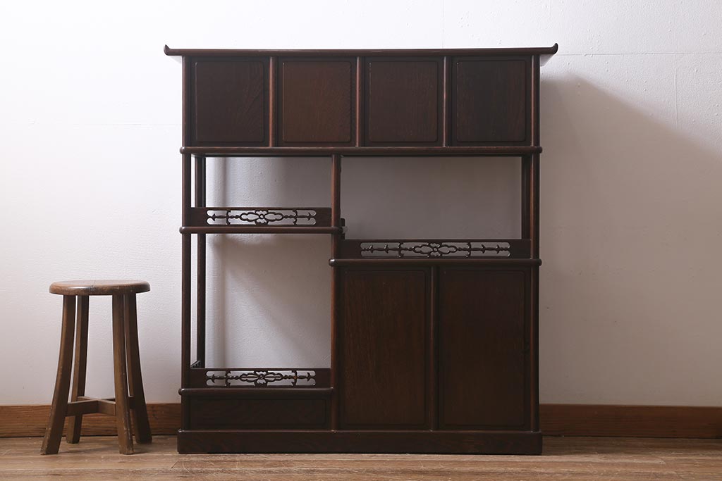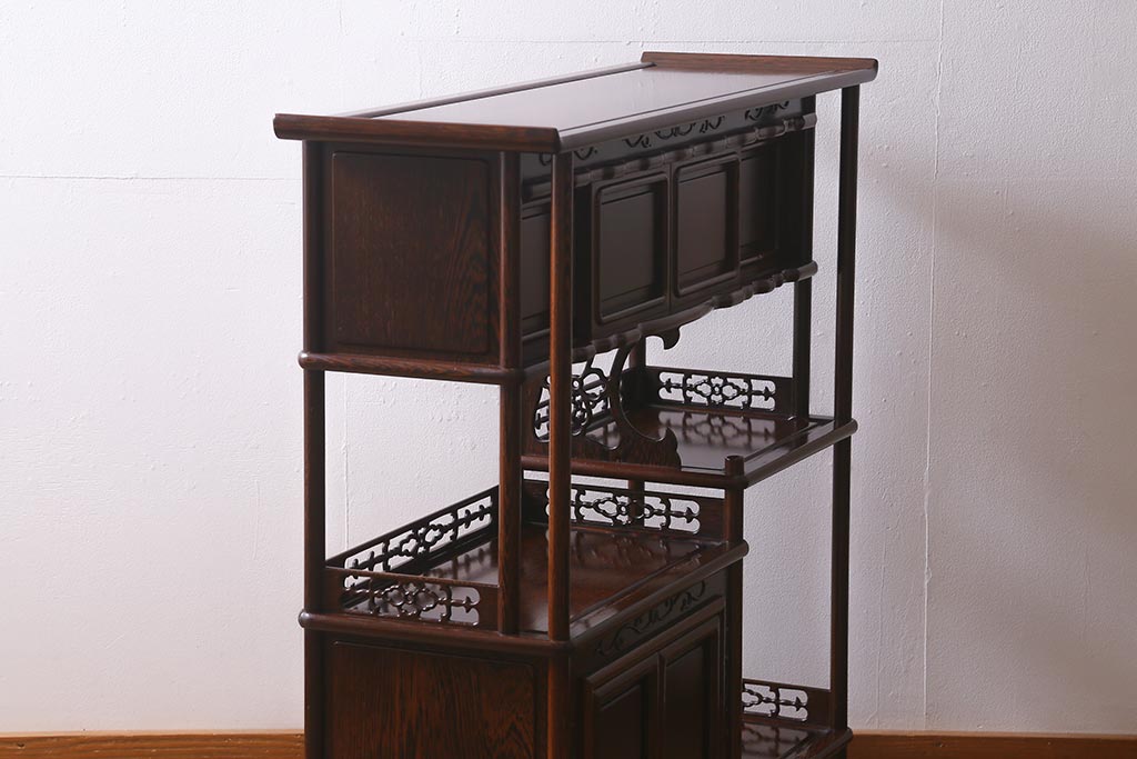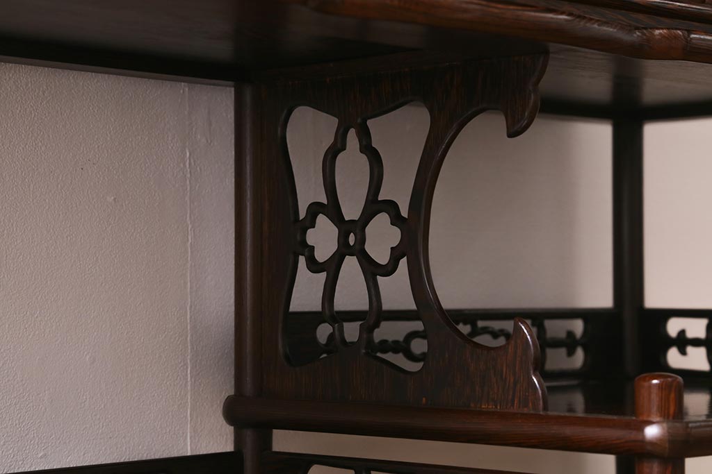 オープンラック・シェルフ> ディスプレイラック > 中古 民芸家具 鉄刀木(タガヤサン) アジアンテイストにもおすすめな上品な意匠の茶棚(飾り棚、収納棚)(R-041075)
