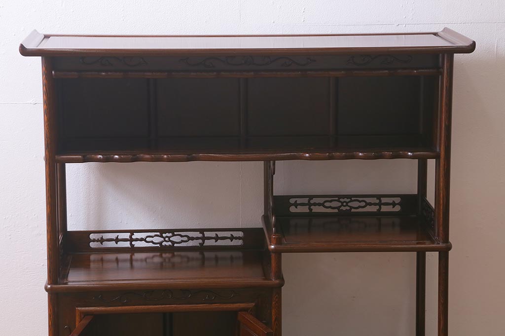 和箪笥 > 中古 民芸家具 鉄刀木(タガヤサン) アジアンテイストにもおすすめな上品な意匠の茶棚(飾り棚、収納棚)(R-041075)