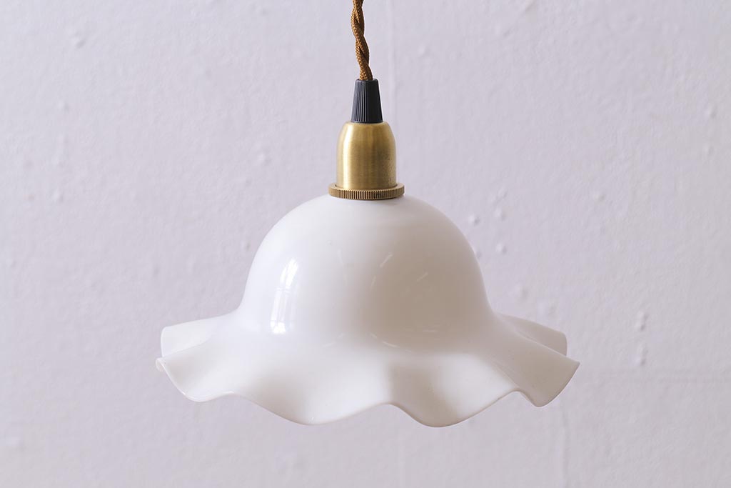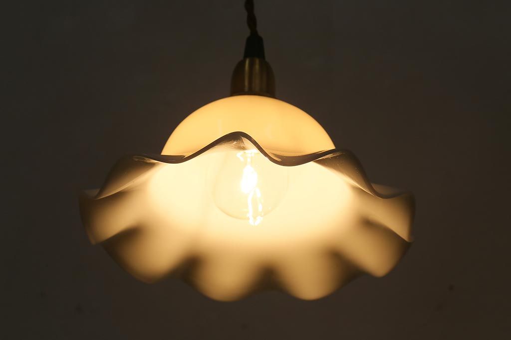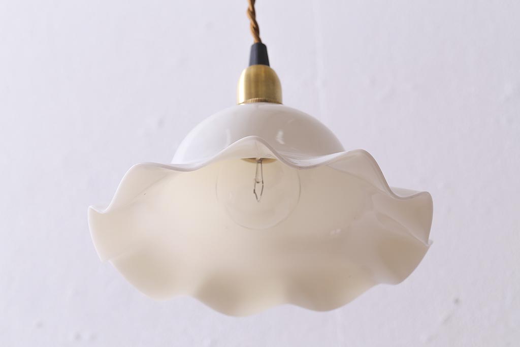イギリスヴィンテージ照明 可愛らしいフリルシェードのペンダントライト(ランプシェード、天井照明)(R-041025)です。