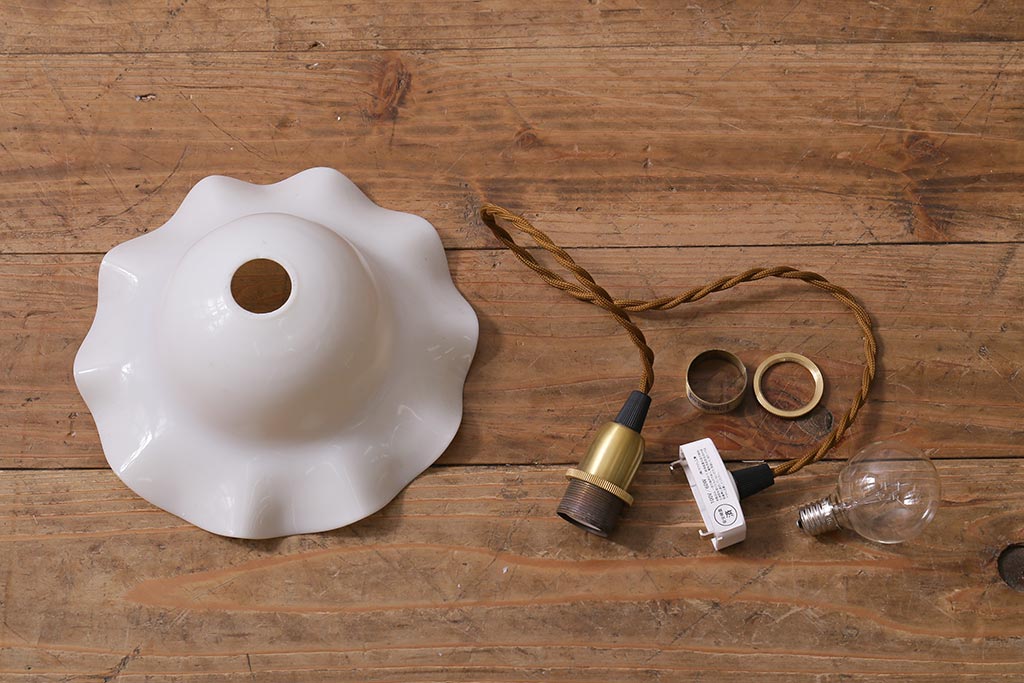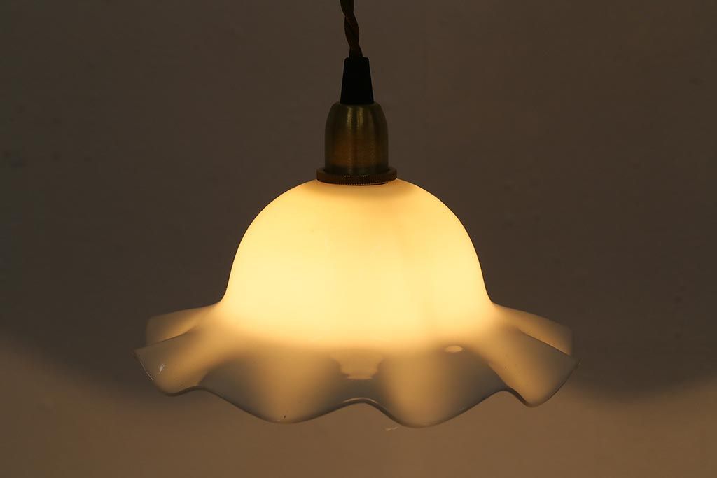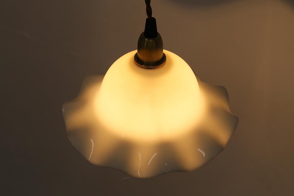 イギリスヴィンテージ照明 可愛らしいフリルシェードのペンダントライト(ランプシェード、天井照明、ビンテージ)(R-041025)