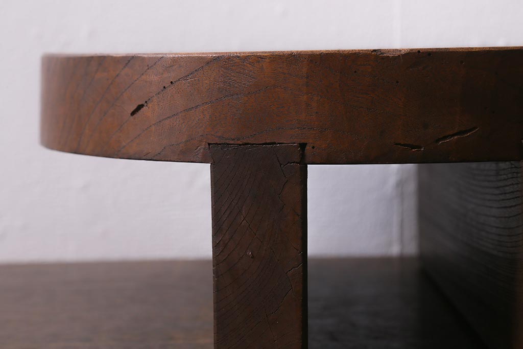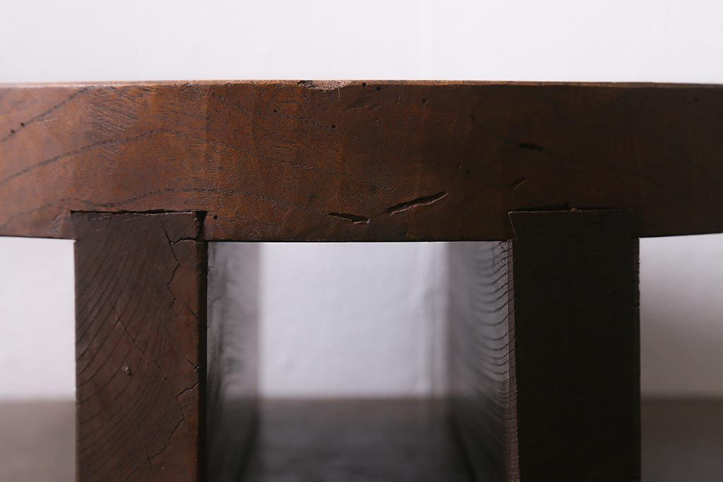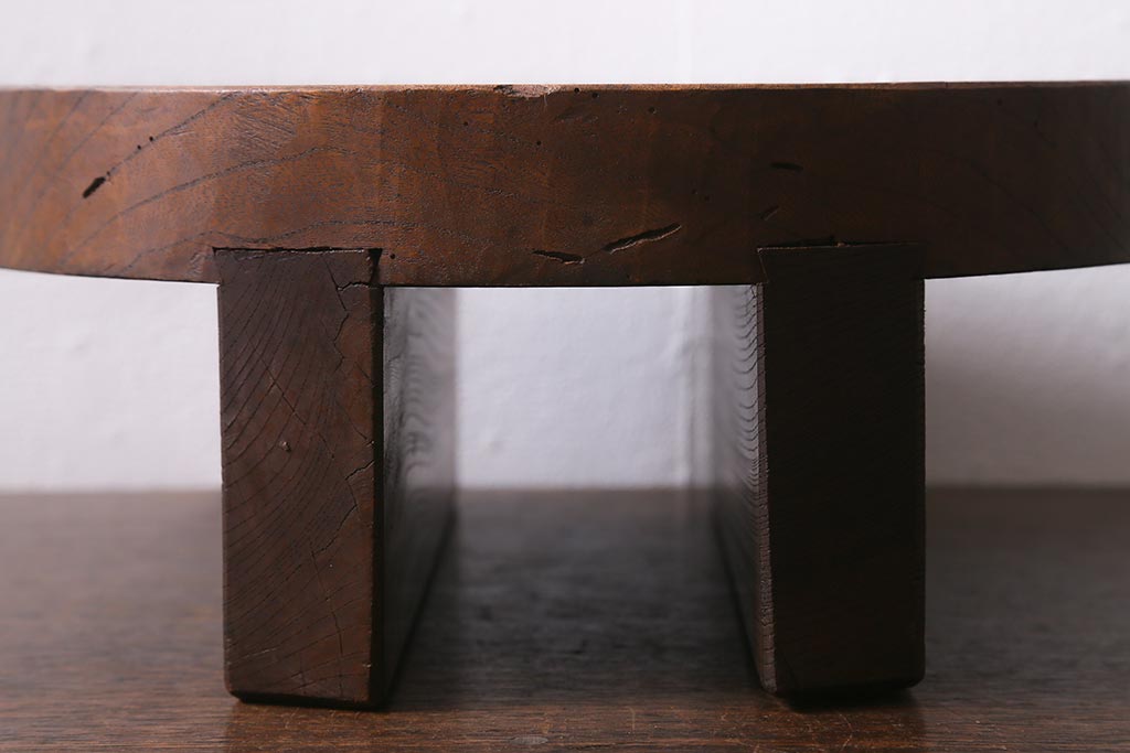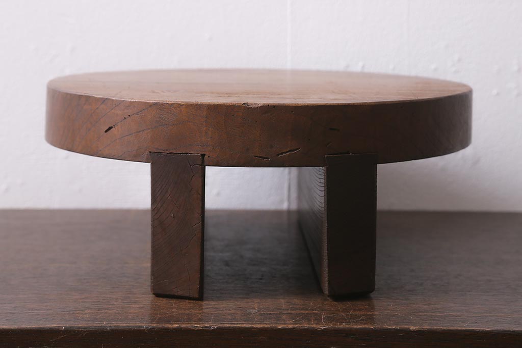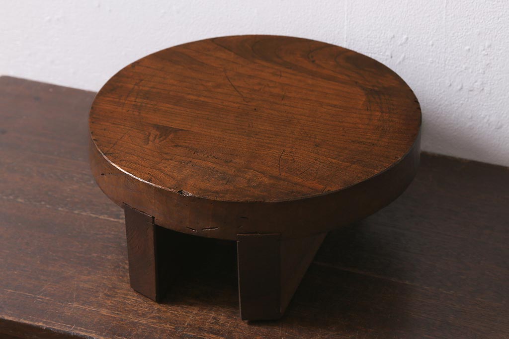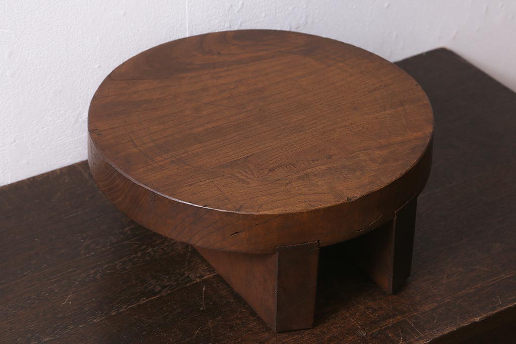 アンティーク雑貨 総ケヤキ材 味わいのある古い花台(飾り台、DIY)(R-041084)