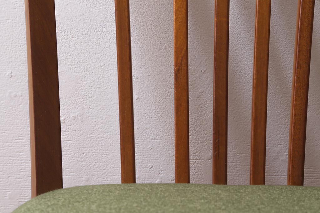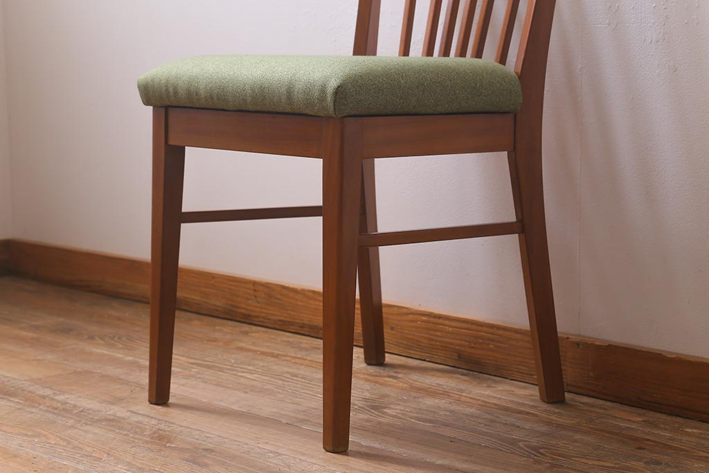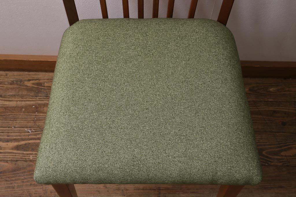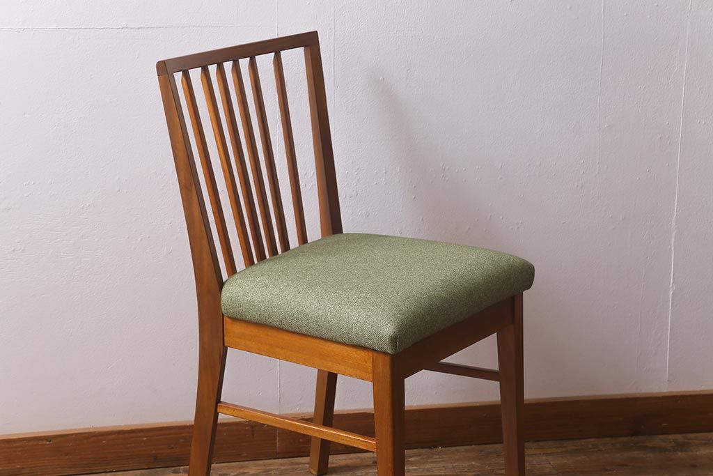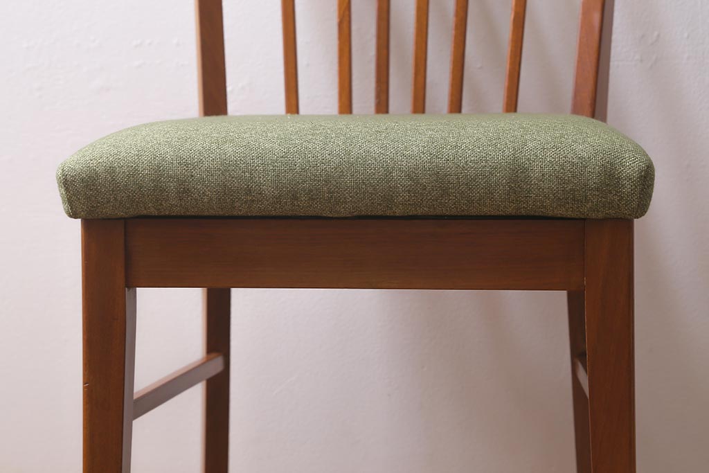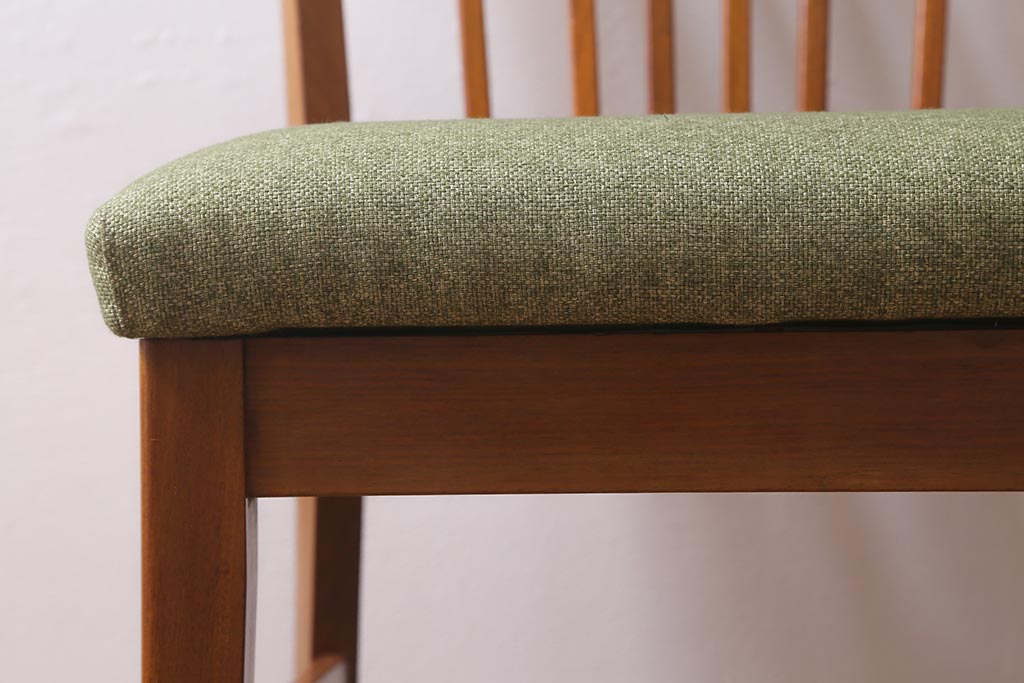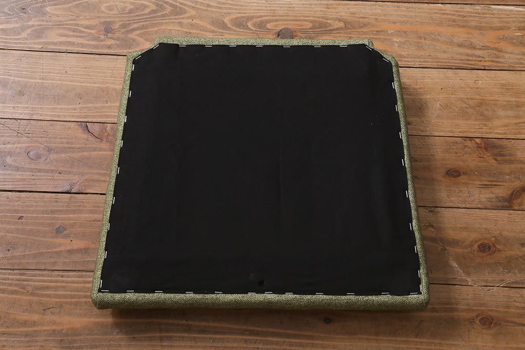 座面生地とクッション(座面内スポンジ)は当店にて張り替えておりますので、しっかりとしております。