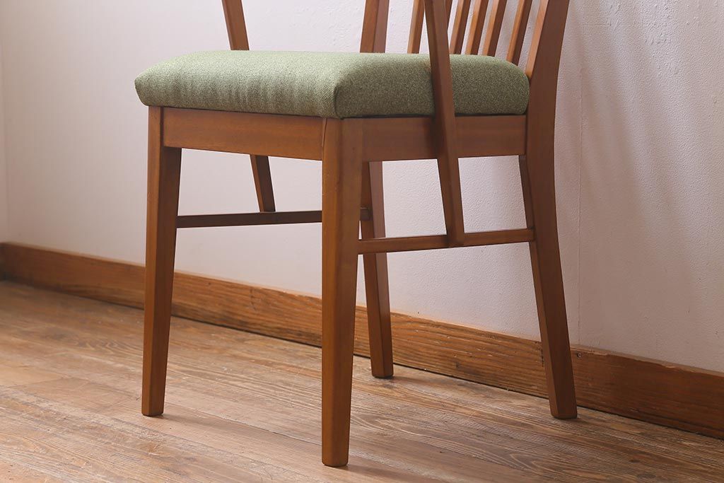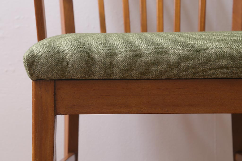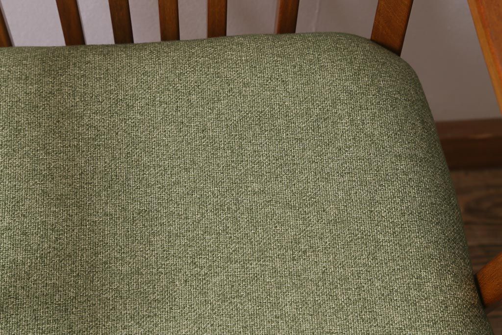 座面生地とクッション(座面内スポンジ)は当店にて張り替えておりますので、しっかりとしております。