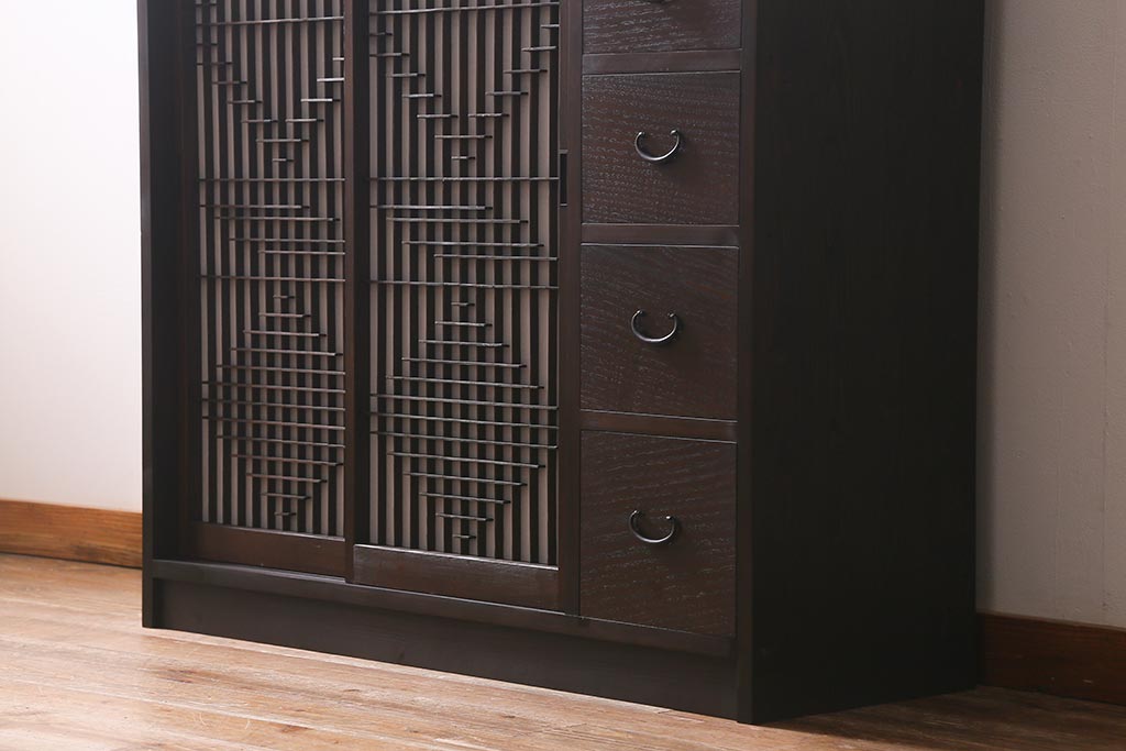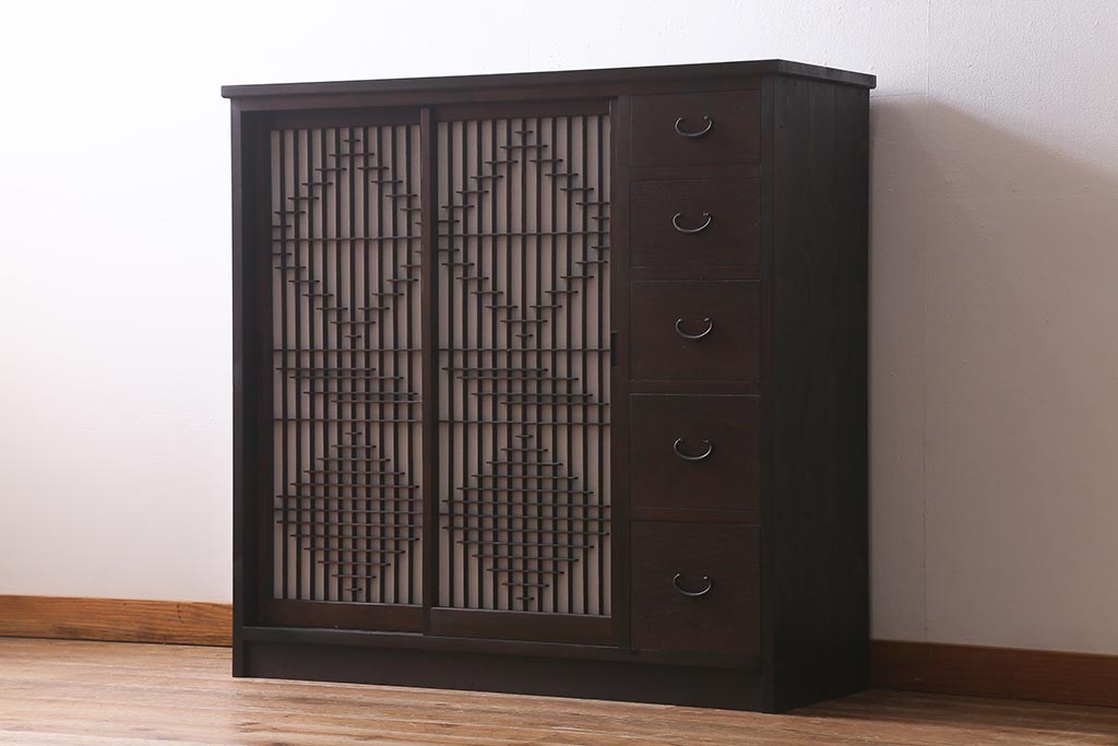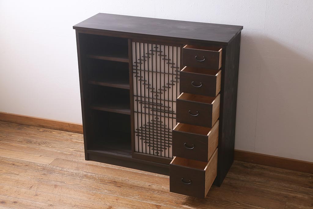 ラフジュ工房オリジナル 古建具リメイク 引き出し付き 風情漂う組子書院戸のキャビネット(戸棚、リビングボード)(R-041079)です。