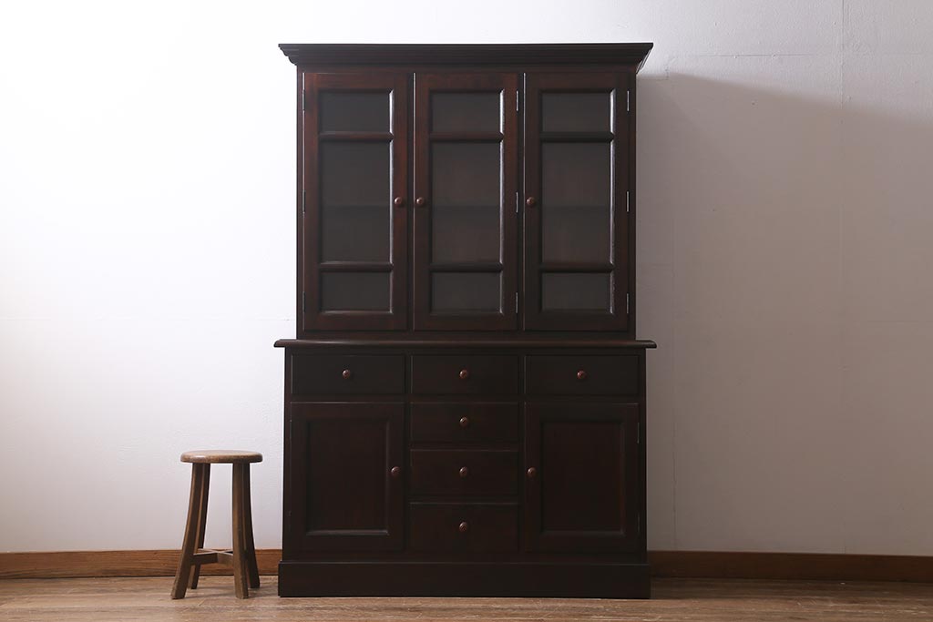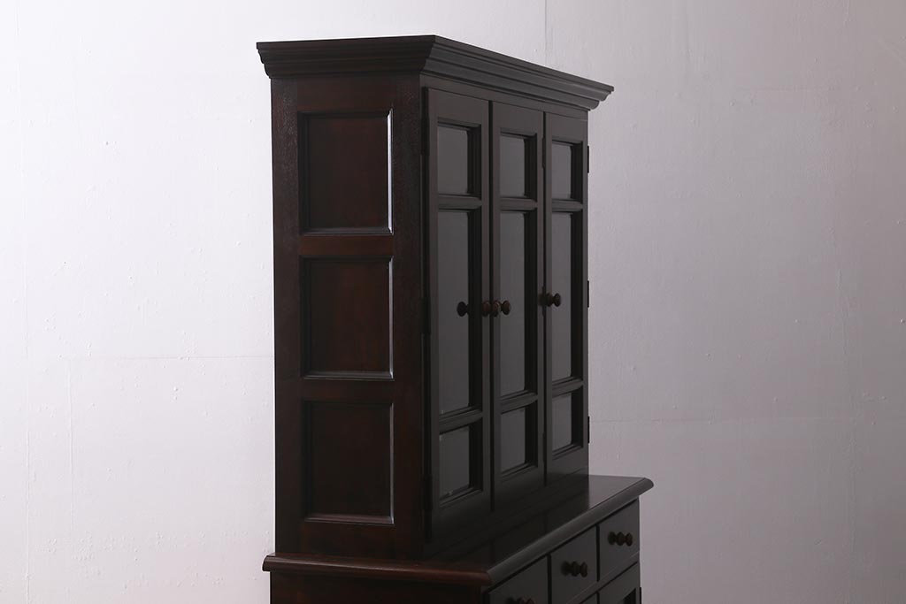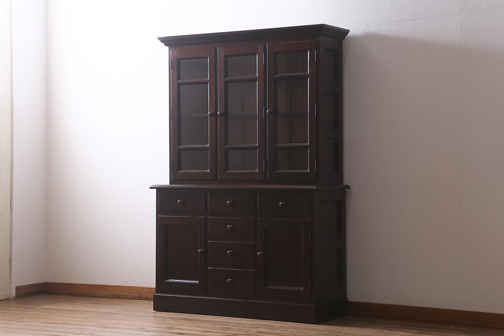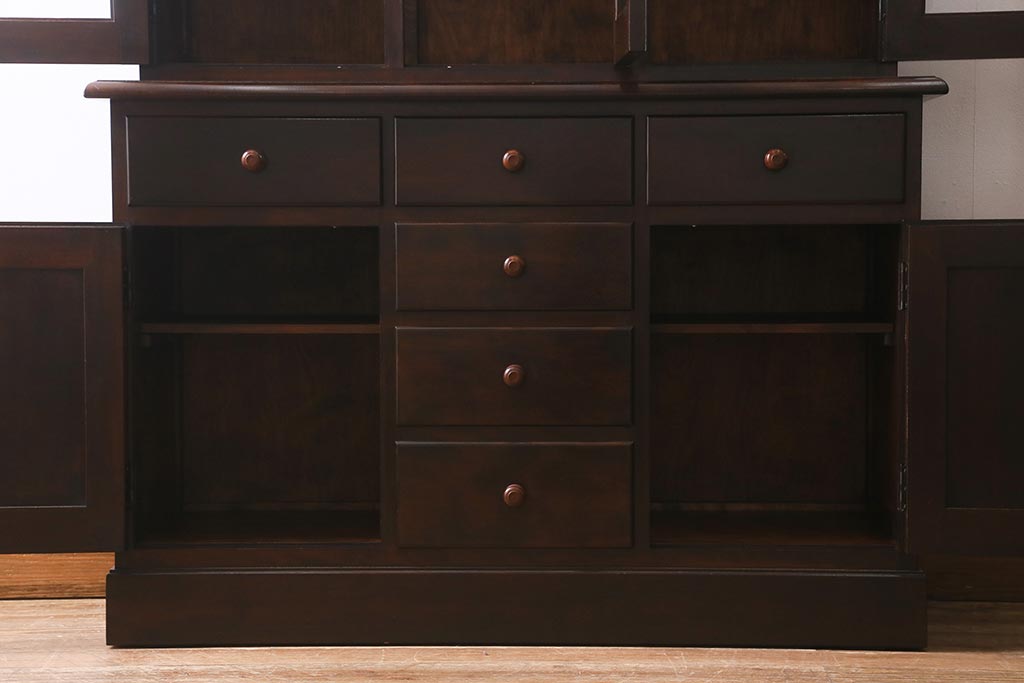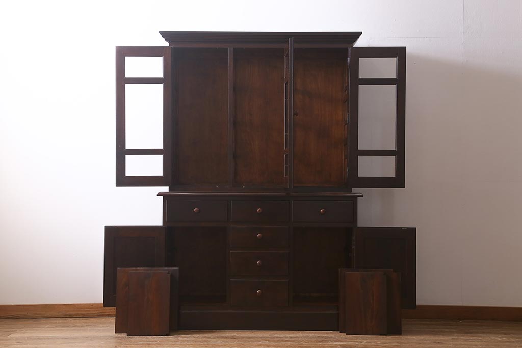 ラフジュ工房> キャビネット・戸棚> 食器棚・カップボード > ヴィンテージ家具 松本民芸家具 収納力たっぷりの高級感漂うD型食器棚(カップボード、飾り棚、収納棚、本箱、ビンテージ)(R-041068)