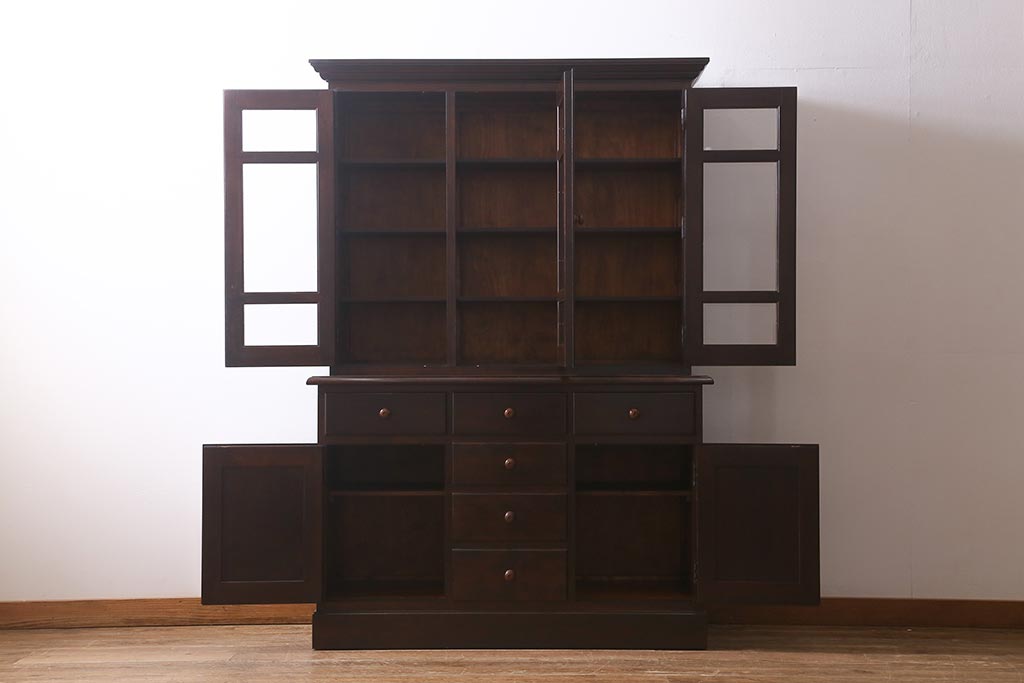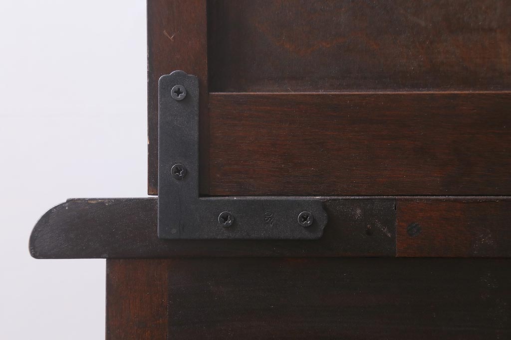 ラフジュ工房> 民芸家具 > ヴィンテージ家具 松本民芸家具 収納力たっぷりの高級感漂うD型食器棚(カップボード、飾り棚、収納棚、本箱、ビンテージ)(R-041068)