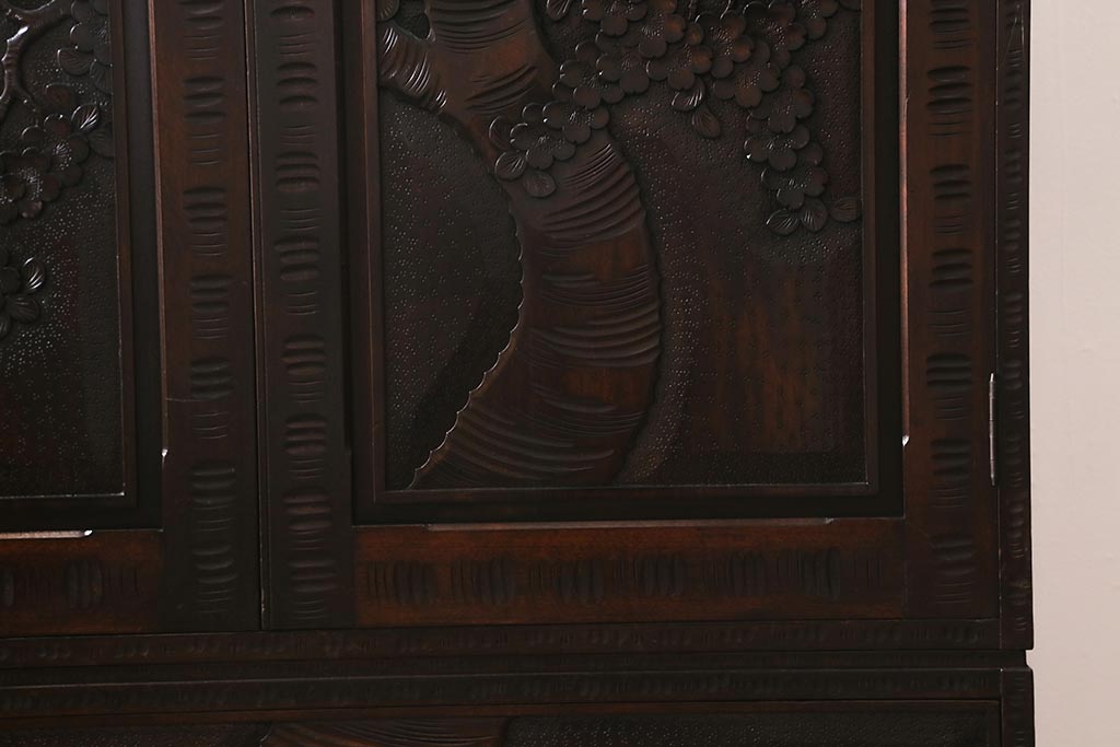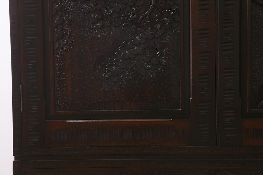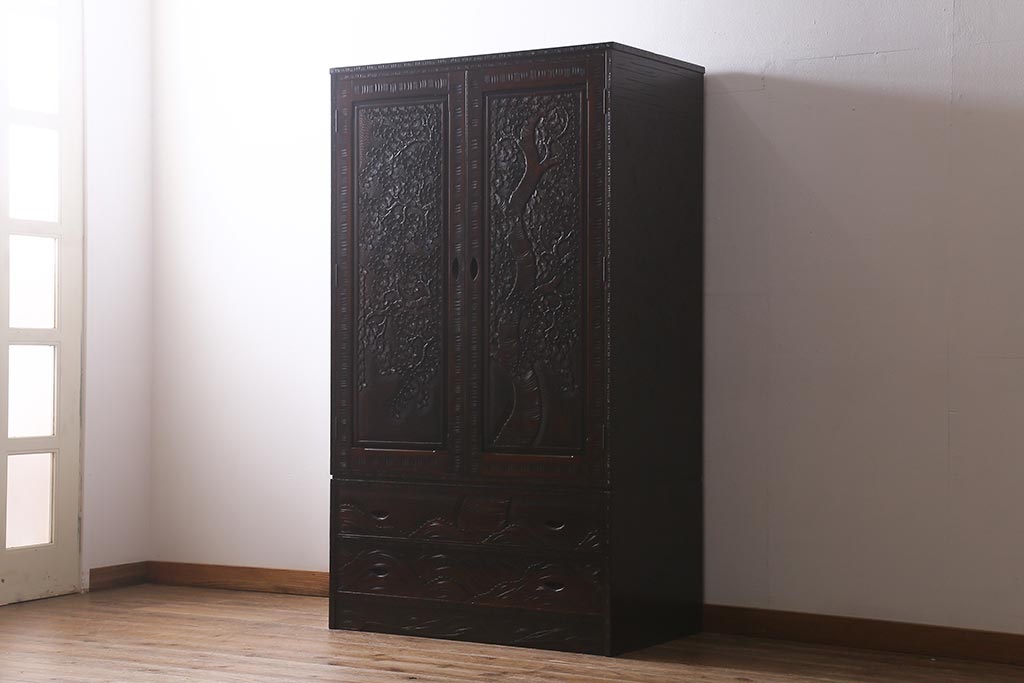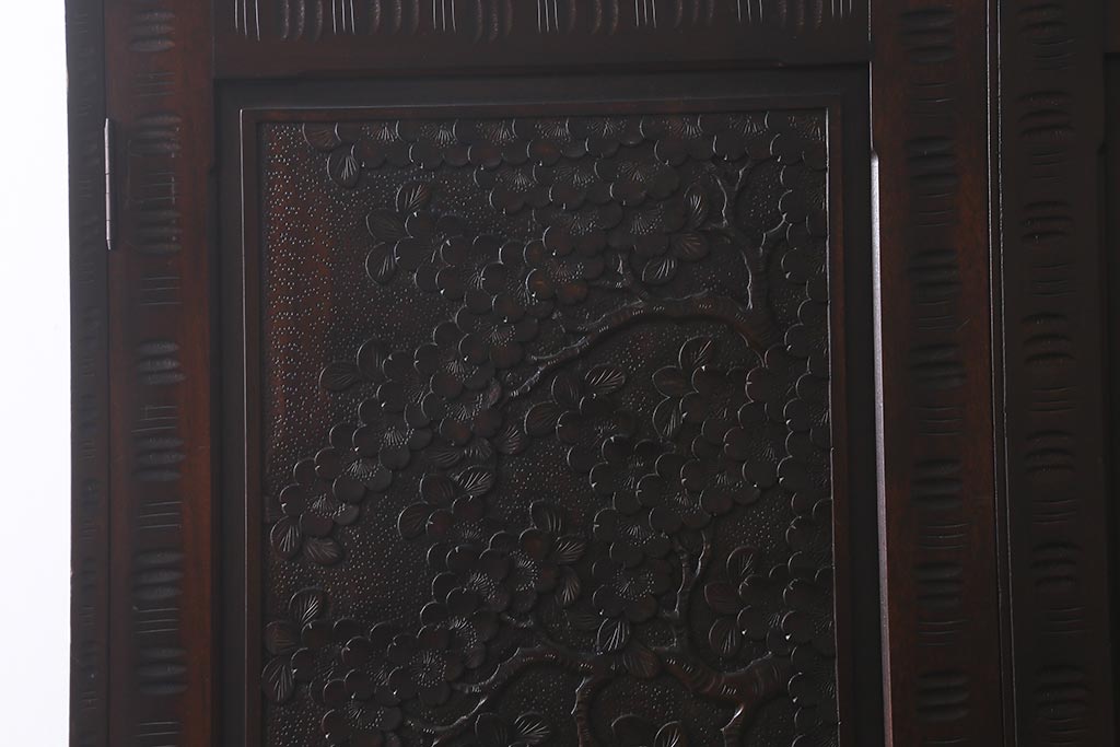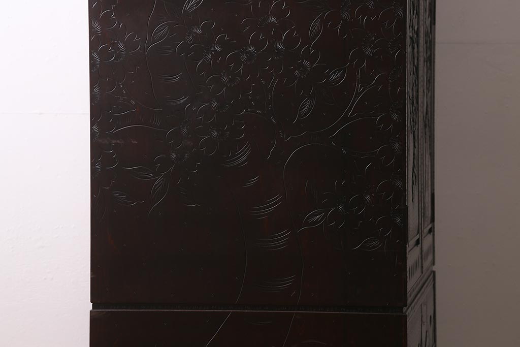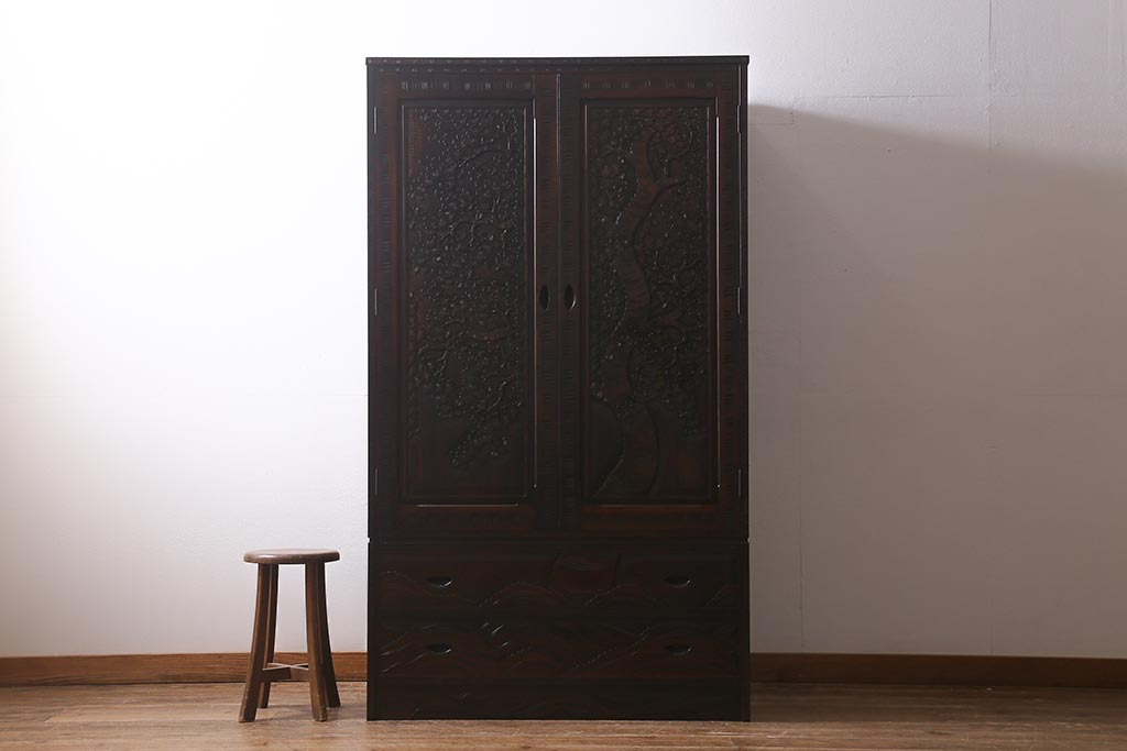 中古 美品 伝統工芸 軽井沢彫り 繊細な桜の図が見事なワードローブ(洋服タンス、チェスト)(R-041071)