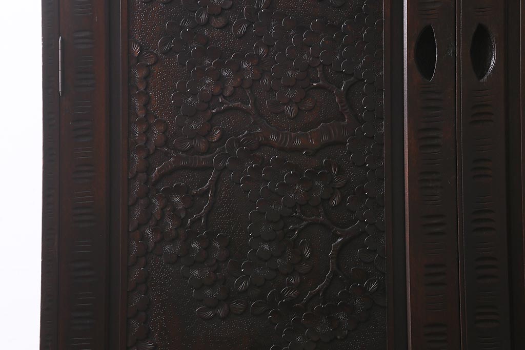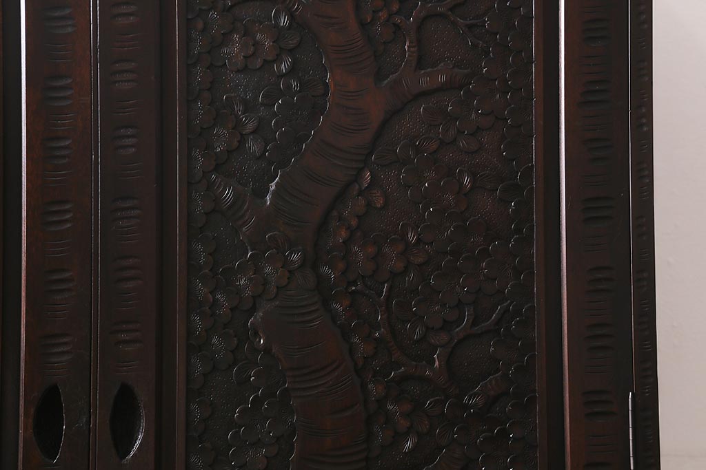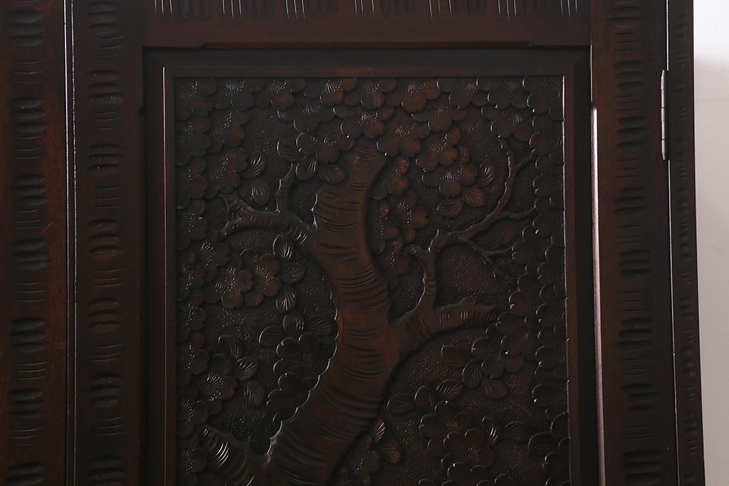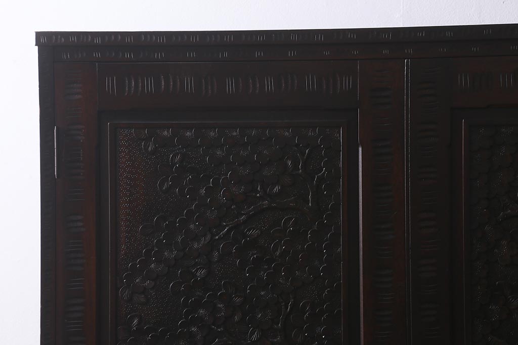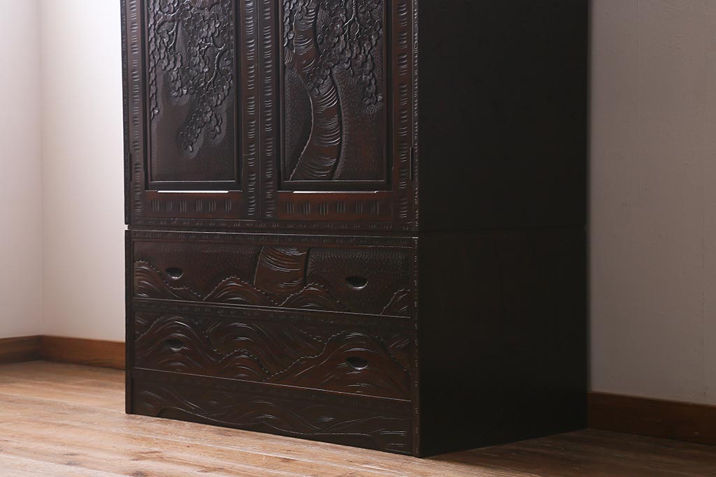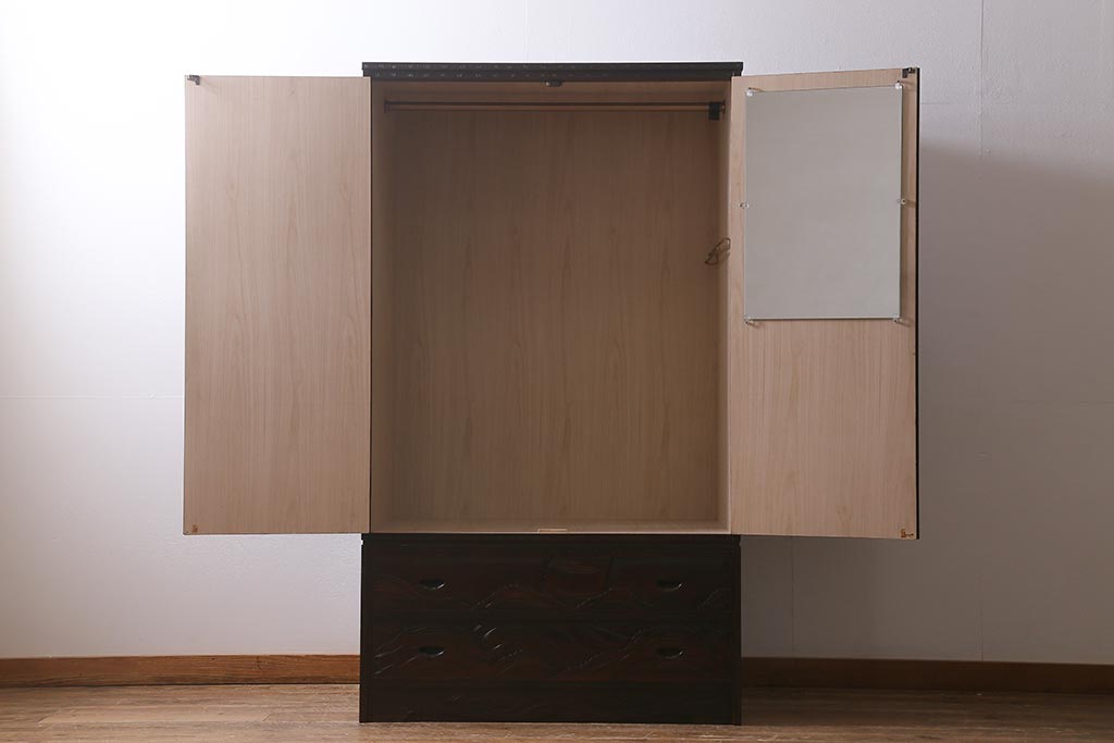 中古 美品 伝統工芸 軽井沢彫り 繊細な桜の図が見事なワードローブ(洋服タンス、チェスト)(R-041071)