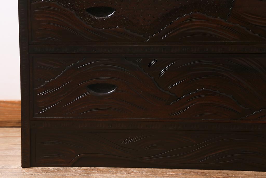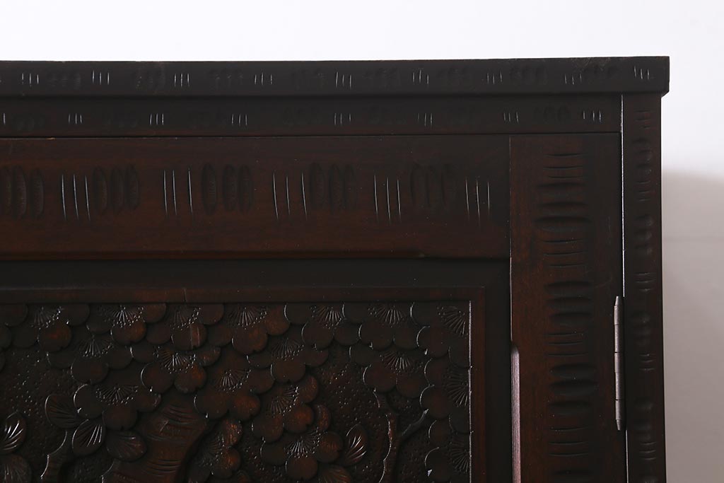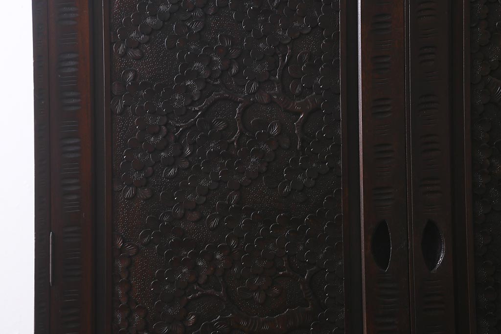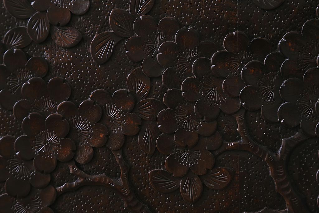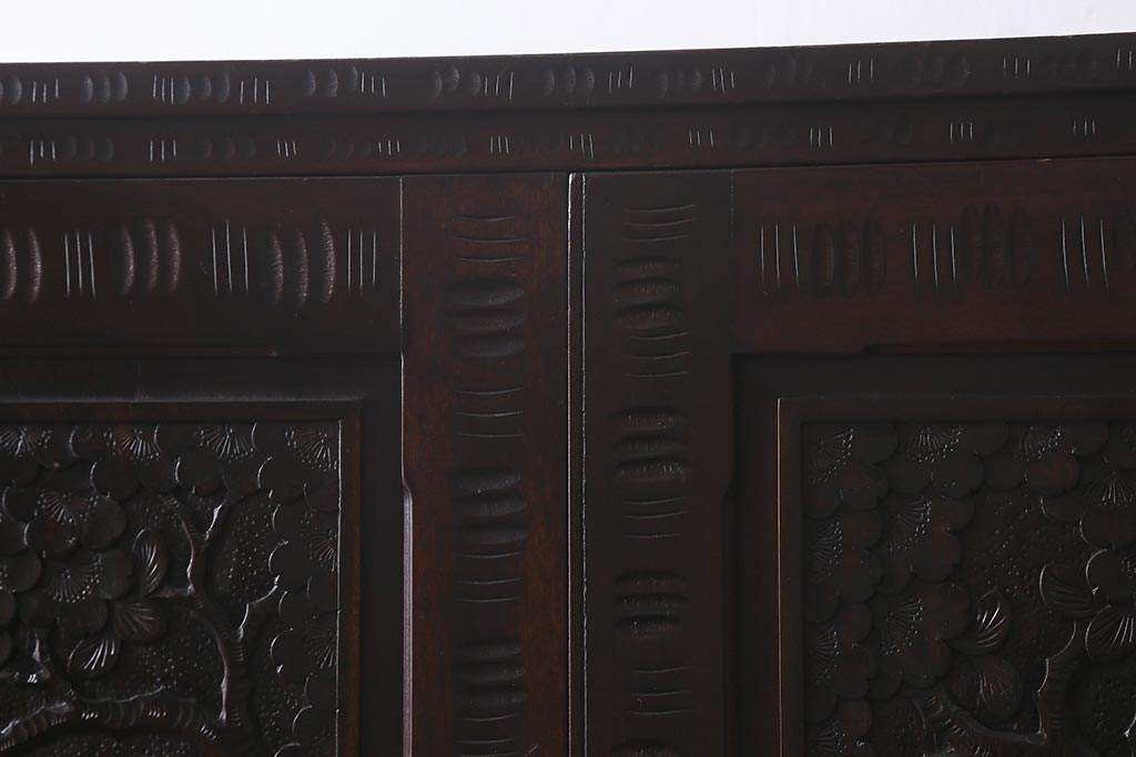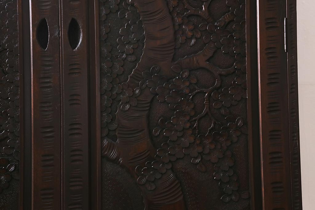 中古 美品 伝統工芸 軽井沢彫り 繊細な桜の図が見事なワードローブ(洋服タンス、チェスト)(R-041071)