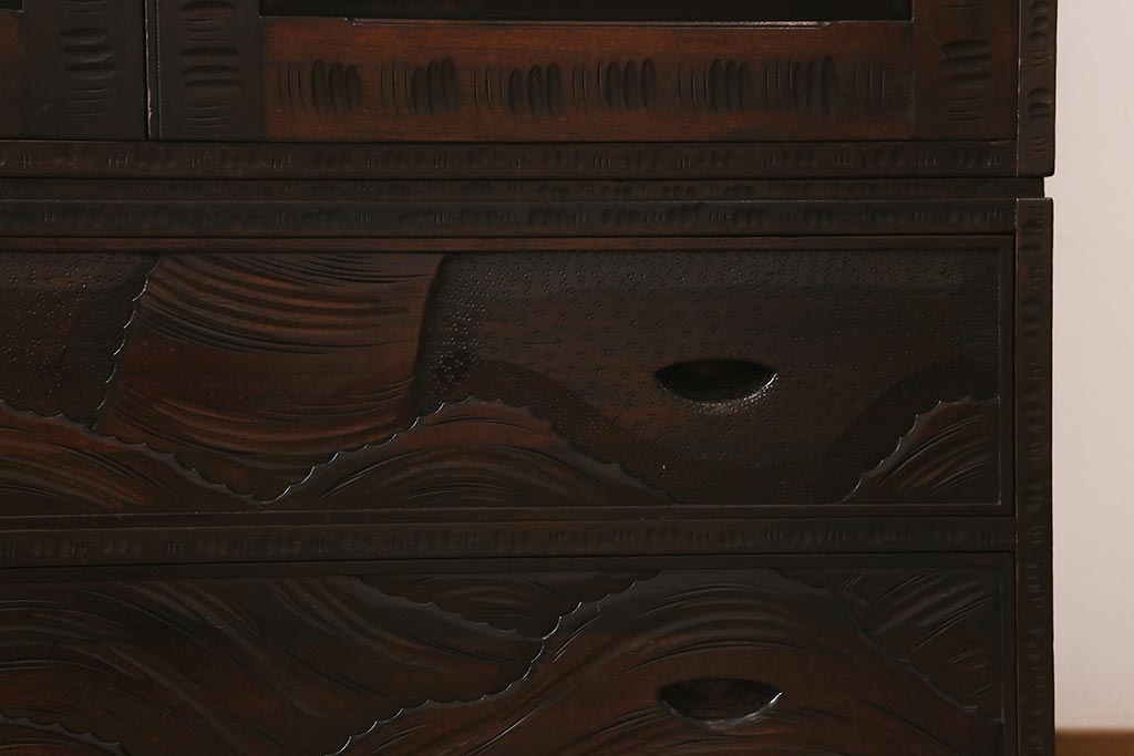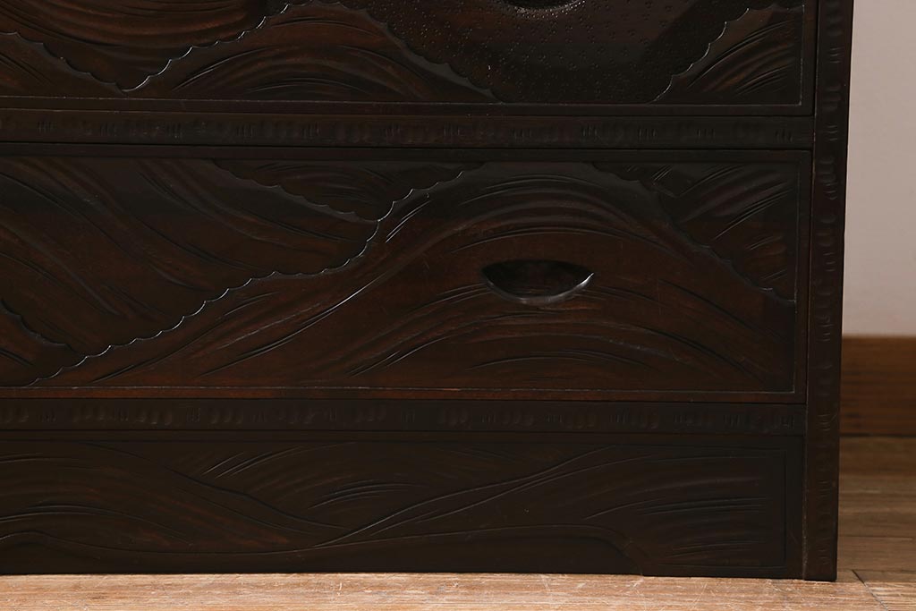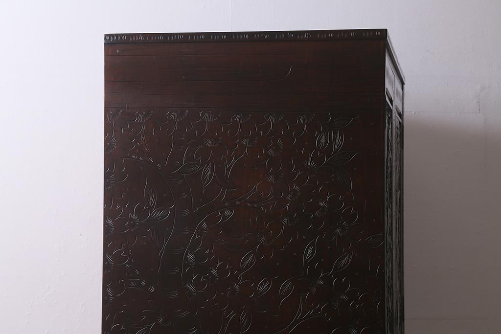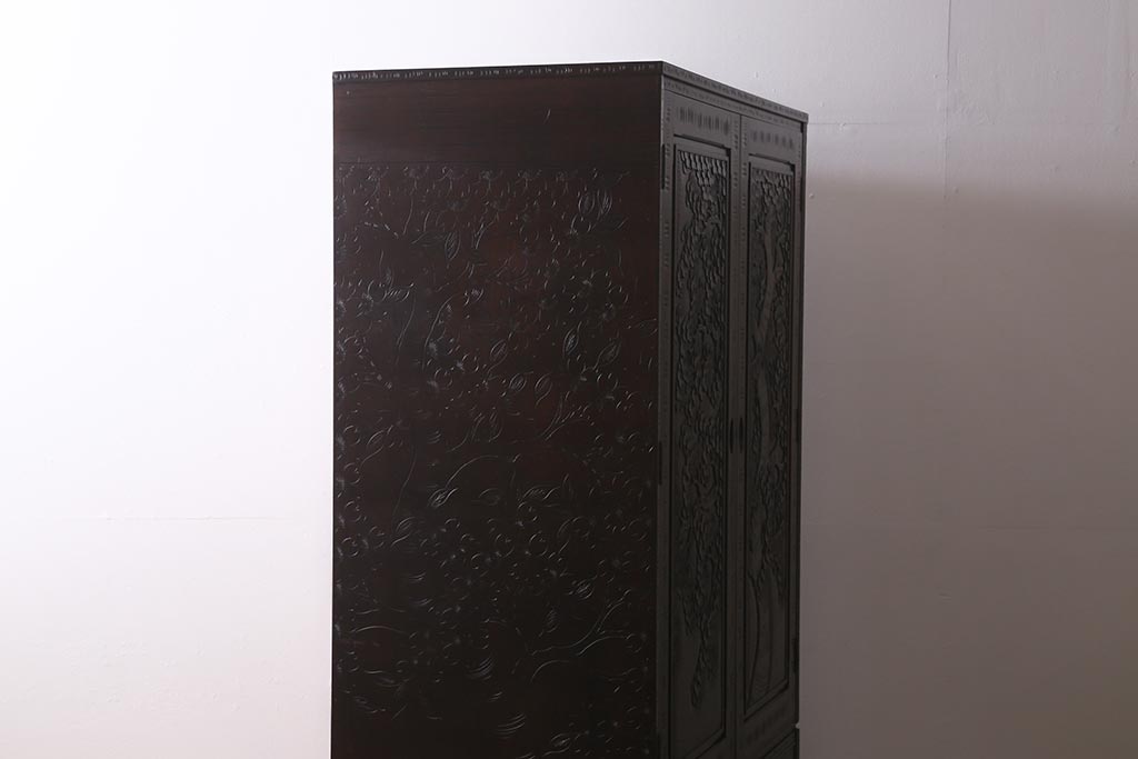 中古 美品 伝統工芸 軽井沢彫り 繊細な桜の図が見事なワードローブ(洋服タンス、チェスト)(R-041071)です。