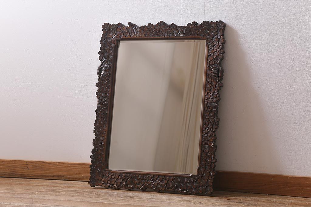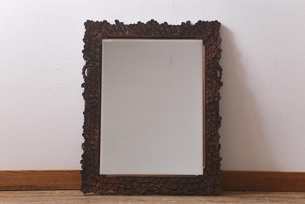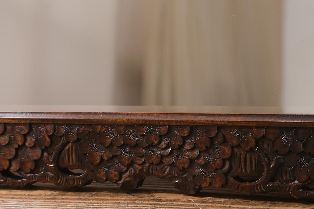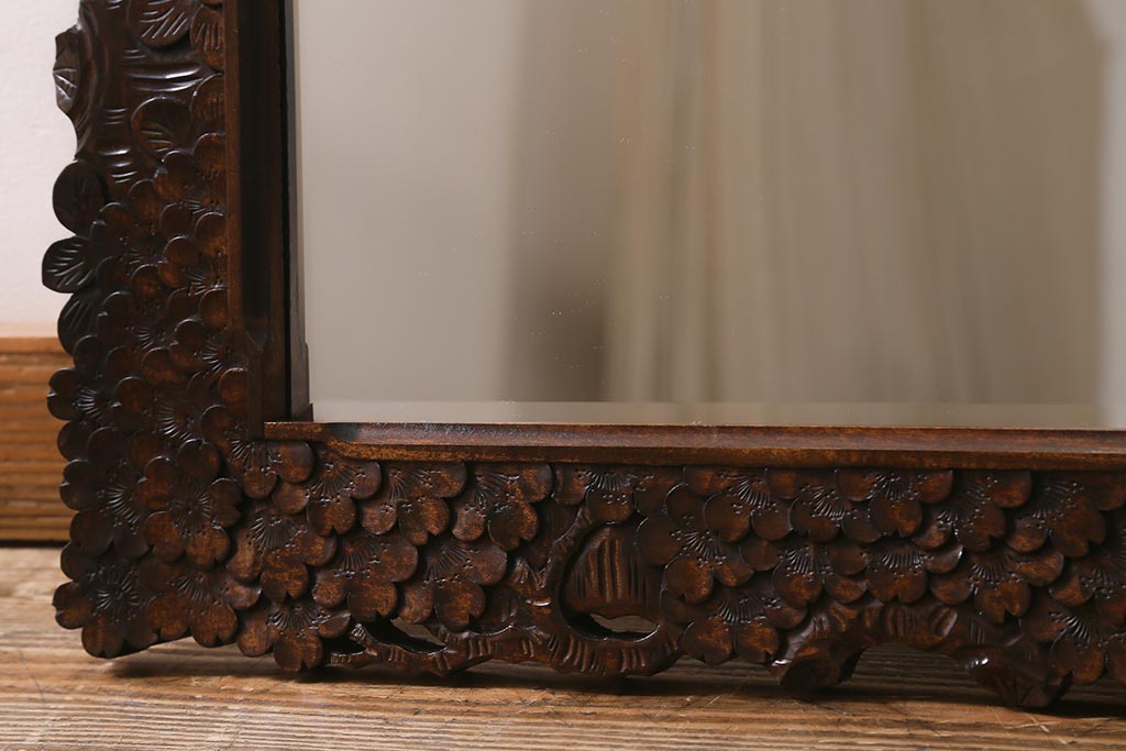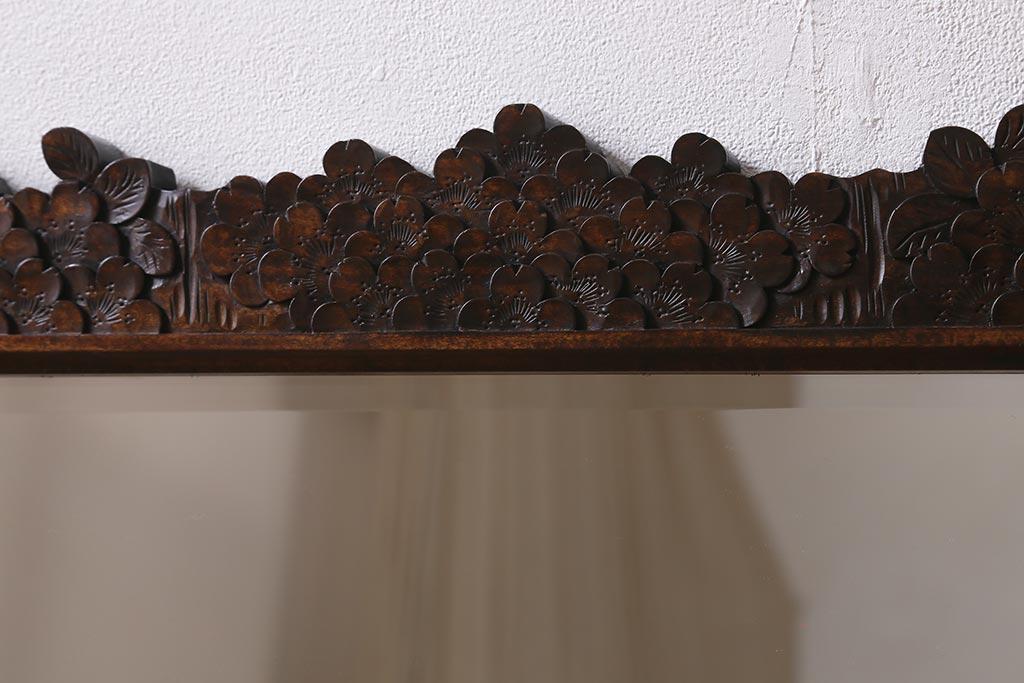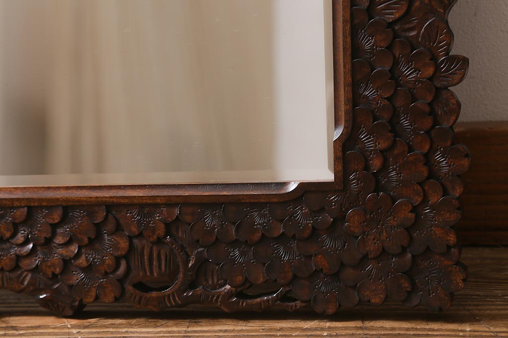 民芸家具 > 中古 伝統工芸 軽井沢彫り 満開の桜が囲むウォールミラー(壁掛け鏡)(R-041101)