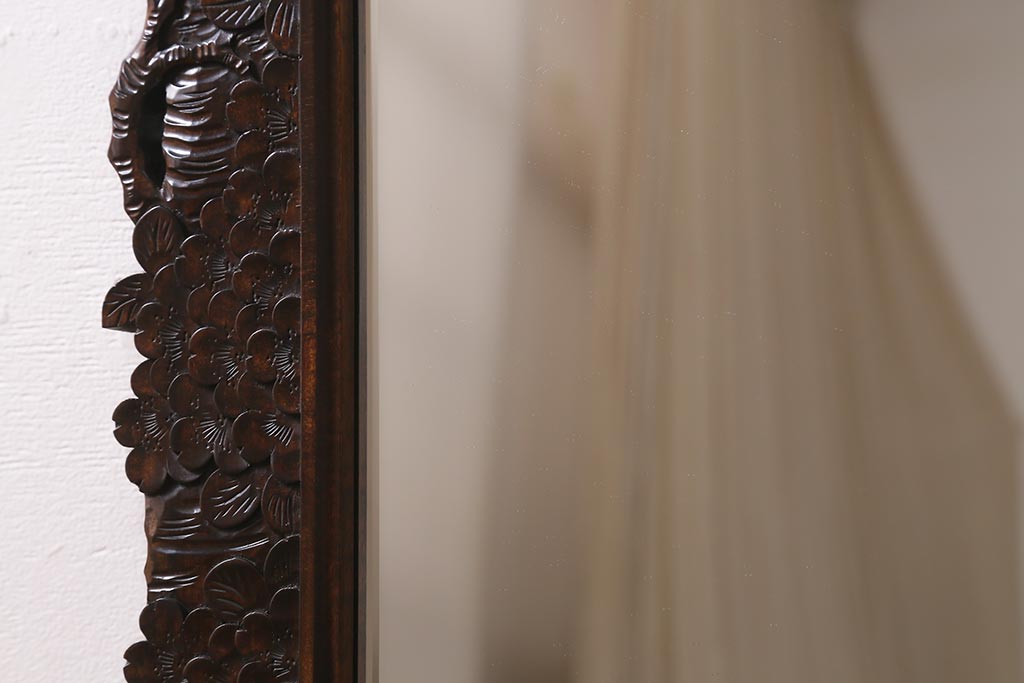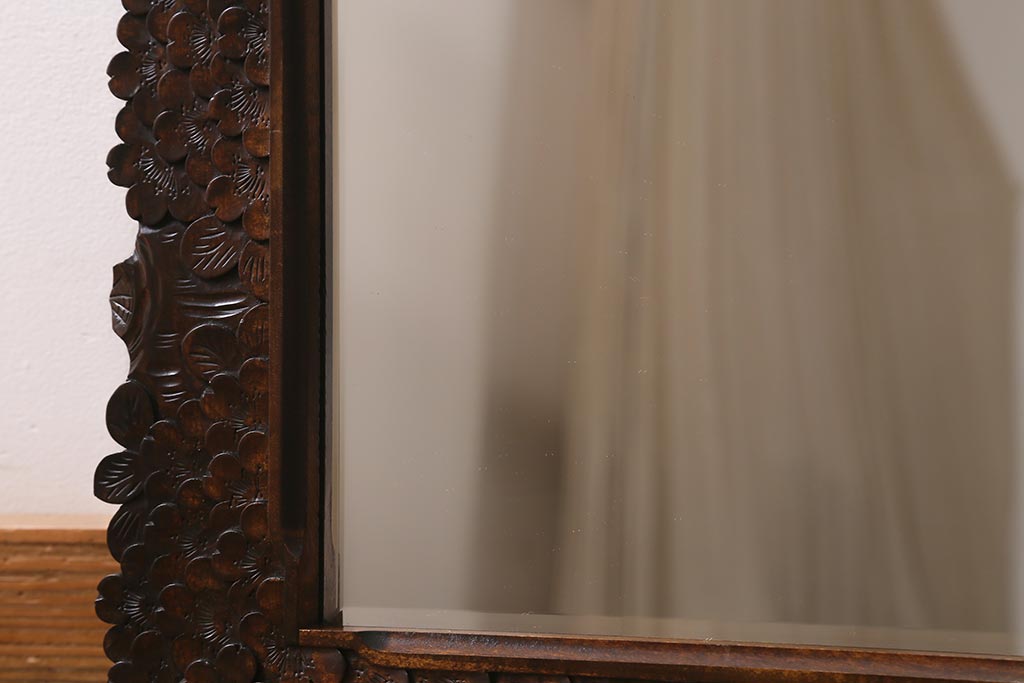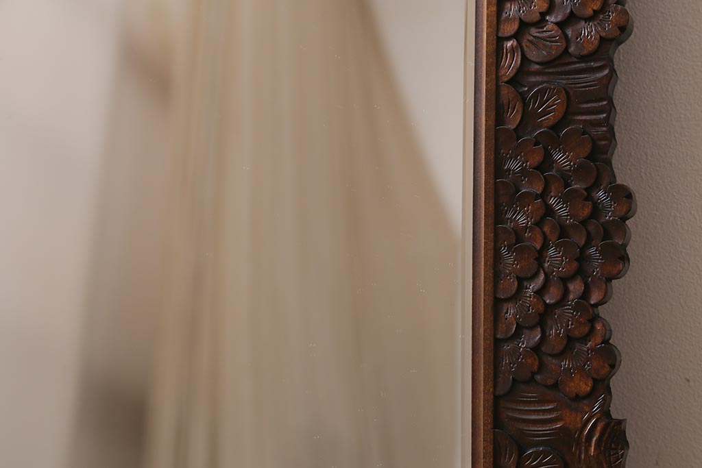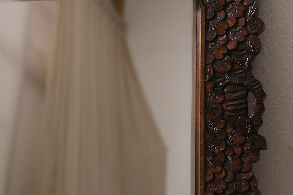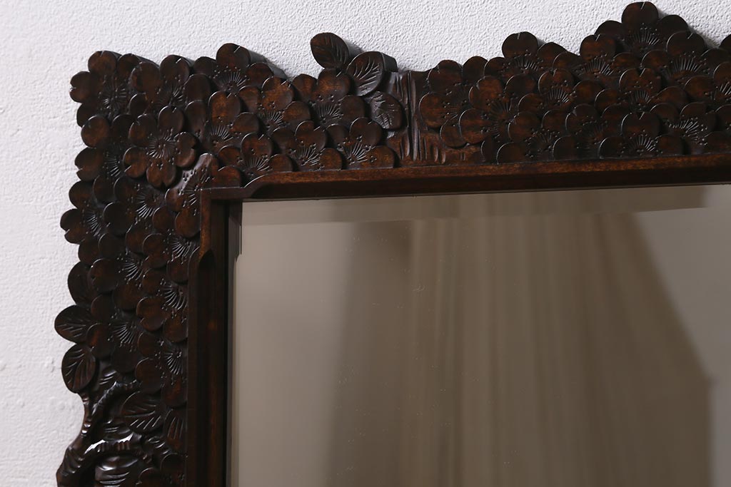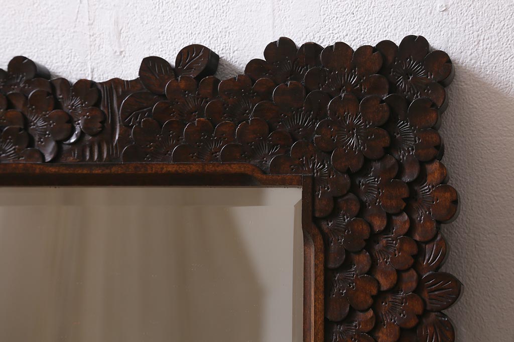鏡 > 中古 伝統工芸 軽井沢彫り 満開の桜が囲むウォールミラー(壁掛け鏡)(R-041101)
