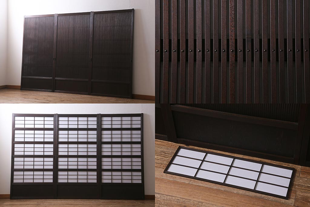 ドア・建具> 障子戸 > アンティーク建具 和製アンティーク 大正昭和初期 裏障子付き 和モダンな空間におすすめな万本格子戸3枚セット(引き戸、建具)(R-041093)