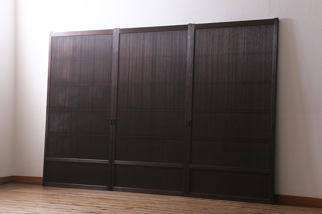ドア・建具> 引き戸 > アンティーク建具 和製アンティーク 大正昭和初期 裏障子付き 和モダンな空間におすすめな万本格子戸3枚セット(引き戸、建具)(R-041093)