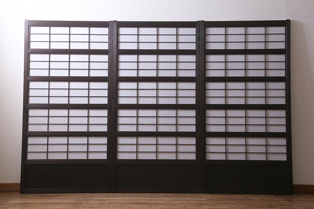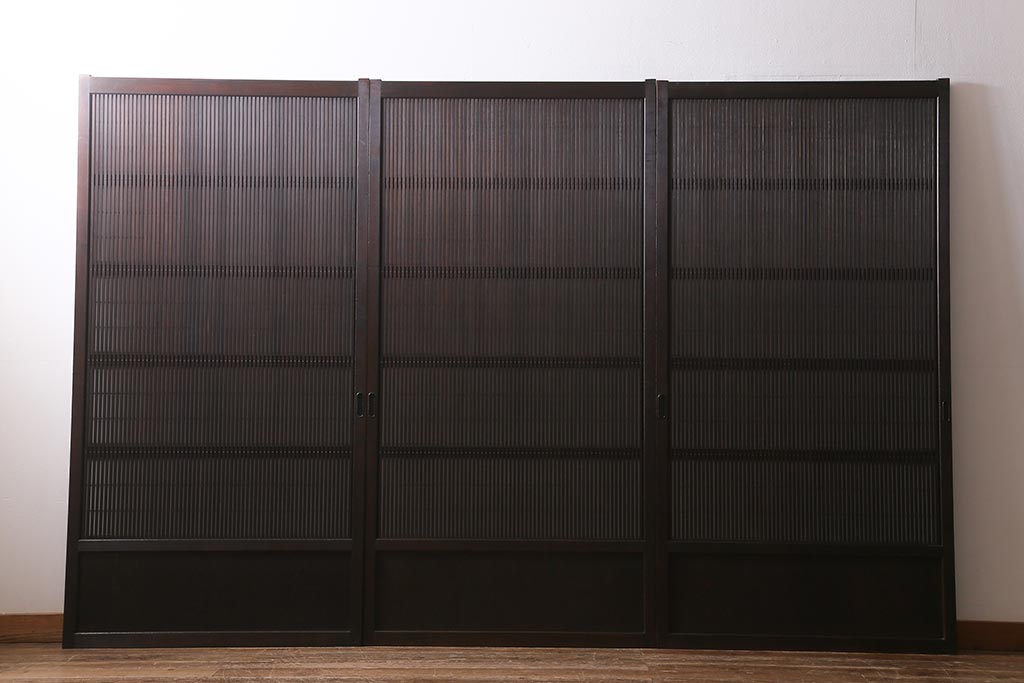 アンティーク建具 和製アンティーク 大正昭和初期 裏障子付き 和モダンな空間におすすめな万本格子戸3枚セット(引き戸、建具)(R-041093)