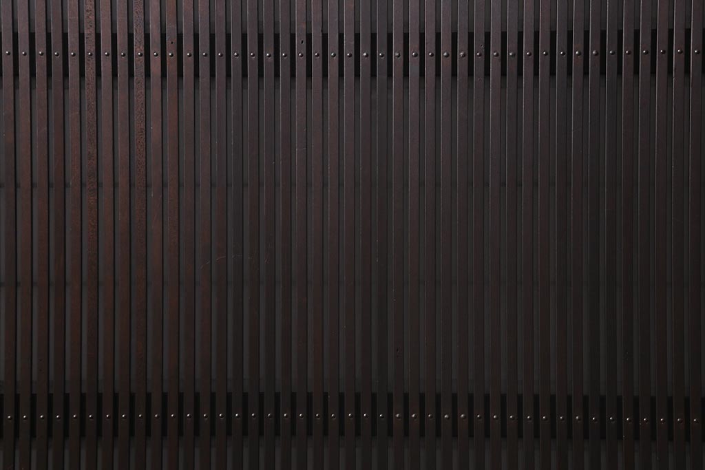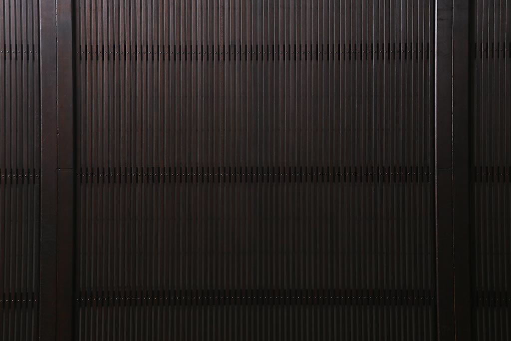 細かな縦桟がびっしりと並ぶ様子が印象で