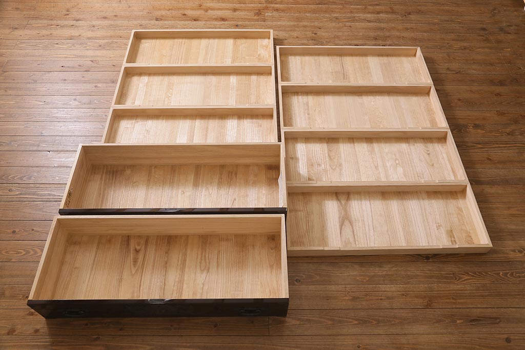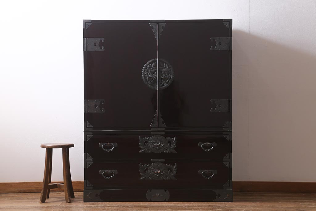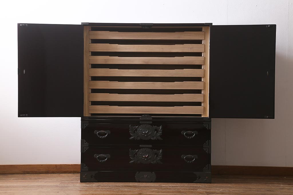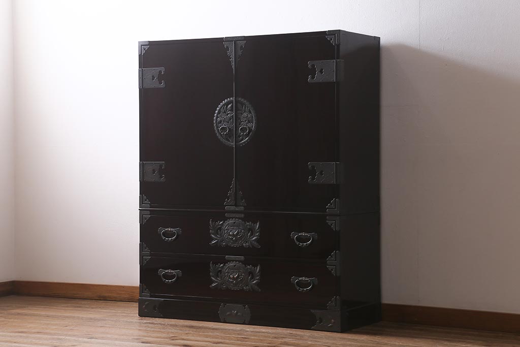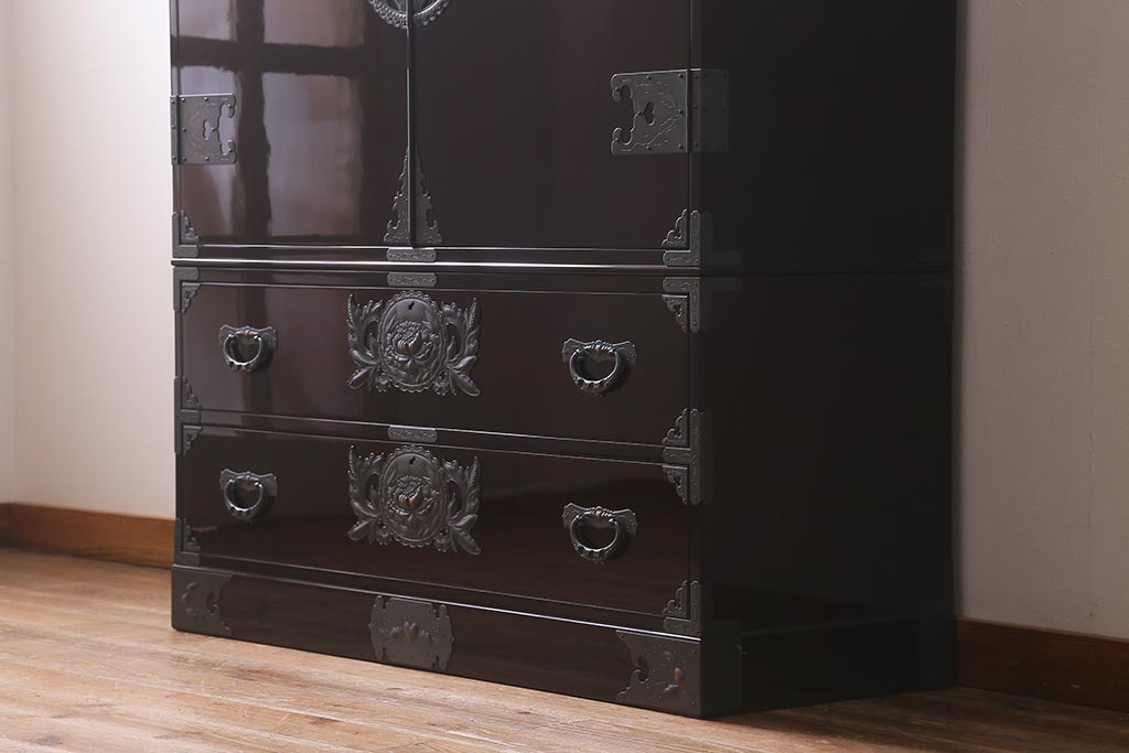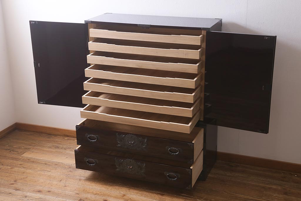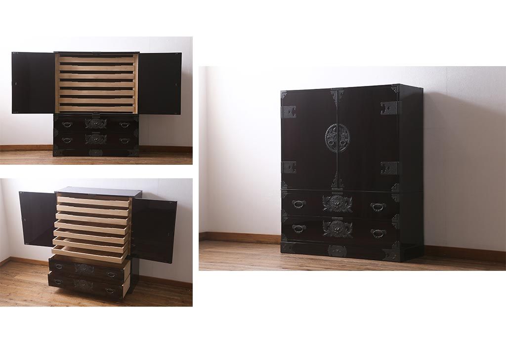 民芸家具 > 中古 欅産業 手打ち金具 KB-33D 木地呂塗り 高級感が漂う佇まいが魅力的な仙台箪笥(衣装箪笥、和タンス、引き出し)(定価約112万円)(R-041072)