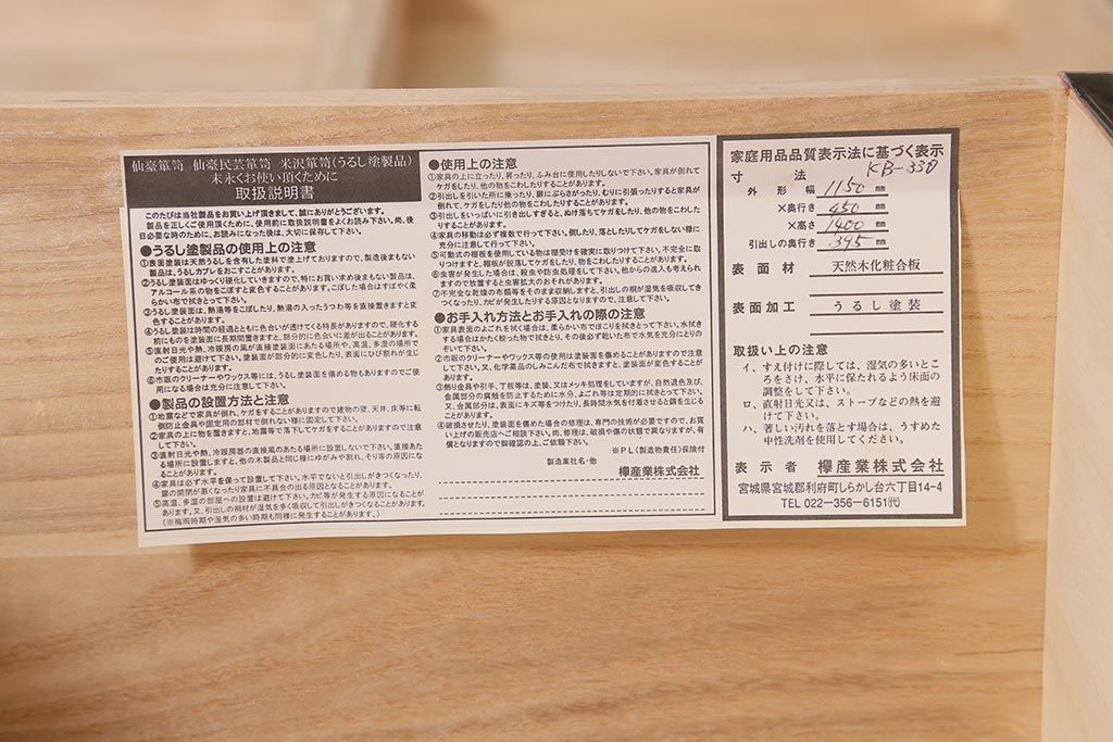 中古 欅産業 手打ち金具 KB-33D 木地呂塗り 高級感が漂う佇まいが魅力的な仙台箪笥(衣装箪笥、和タンス、引き出し)(定価約112万円)(R-041072)です。