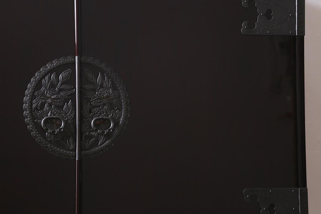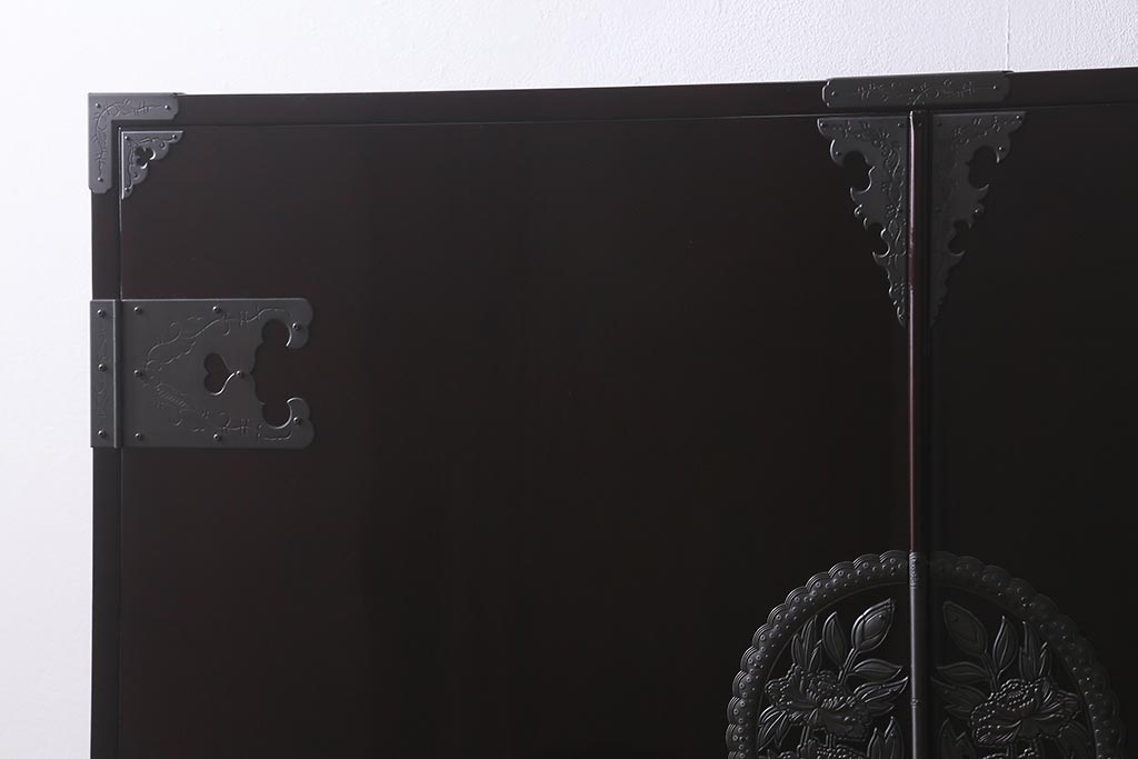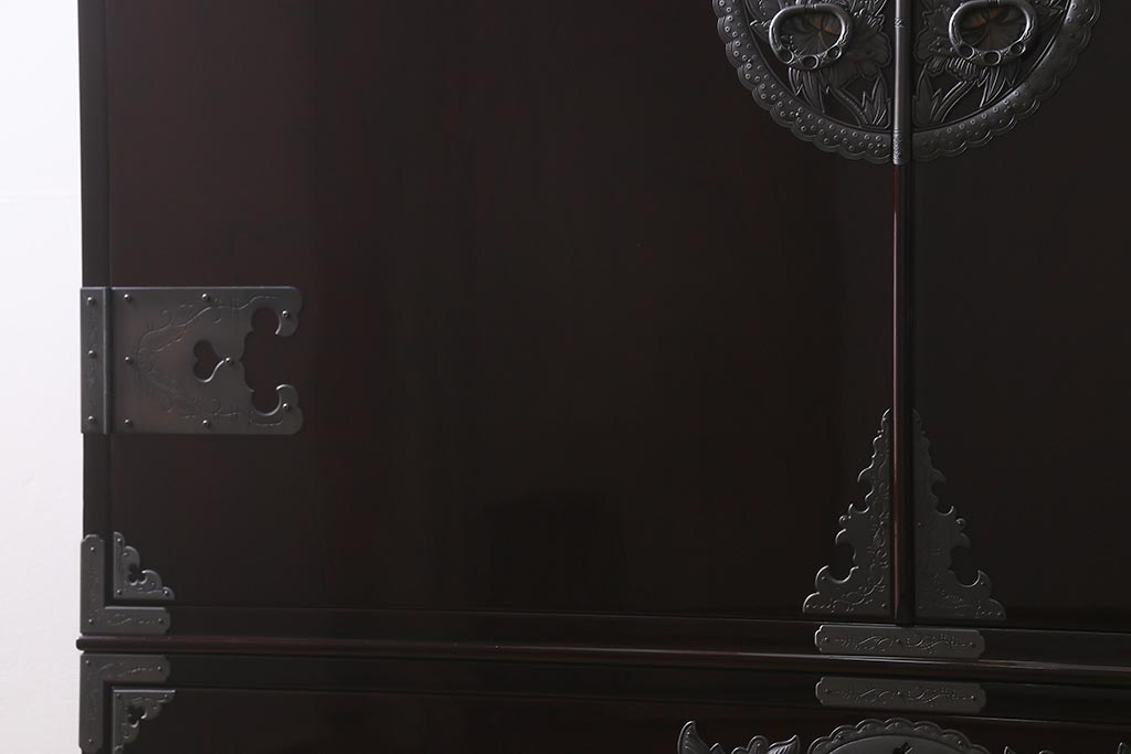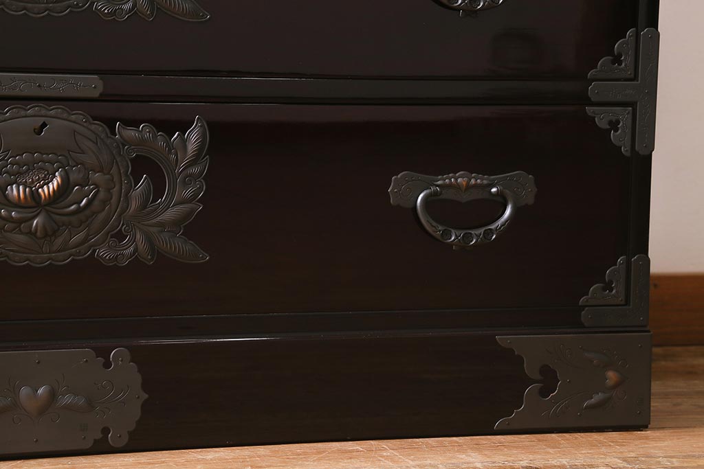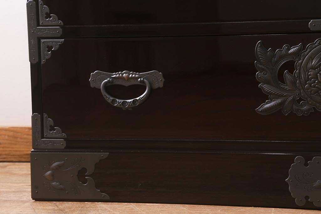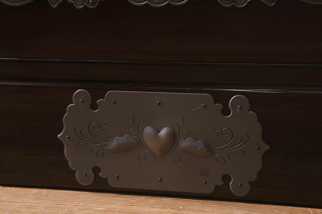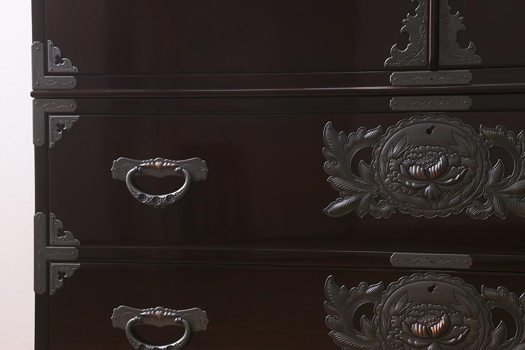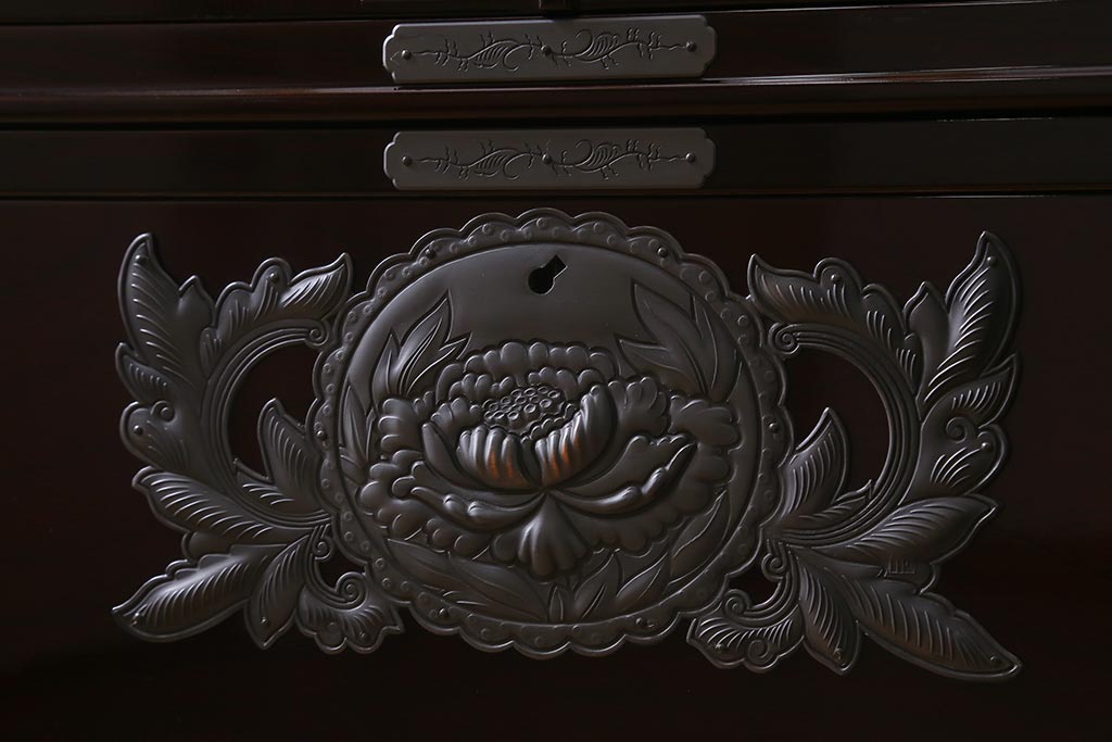 牡丹の紋様金具や隅金具は繊細なつくりで、