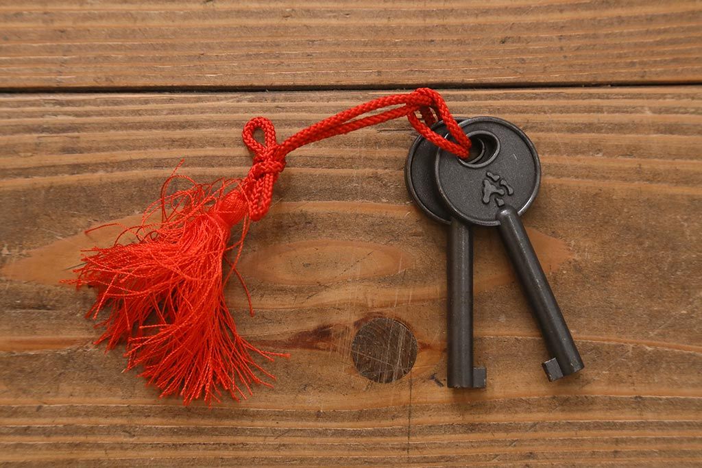 鍵は付属します。画像にありますように、袋に入れお付けします。スムーズに動くように調整していますが、あくまでも古いものや中古品ですので、長期の使用保証は出来かねます。ご購入後不具合が発生した場合は、当店でサポートさせていただきますので、お気軽にご相談くださいませ。