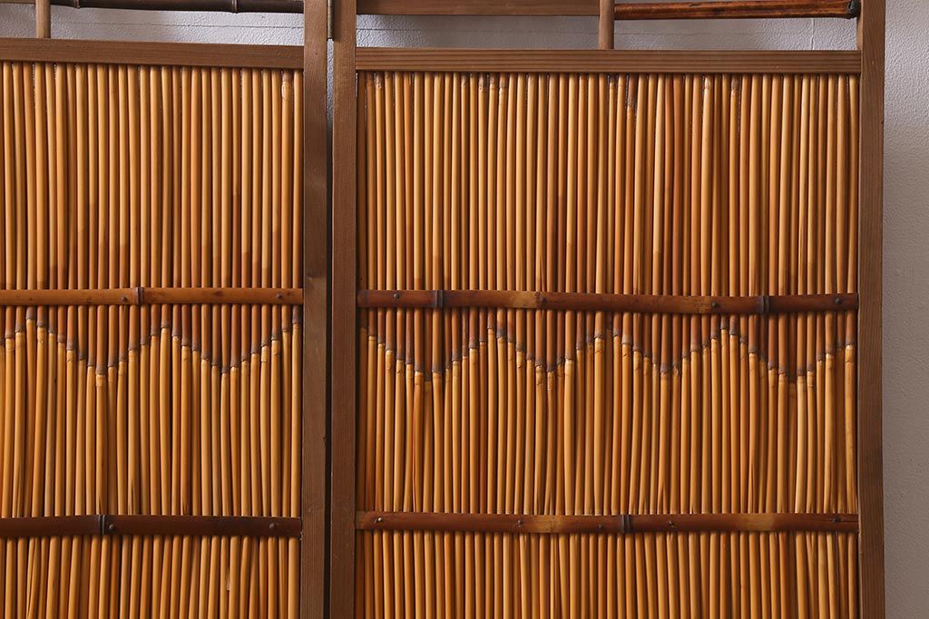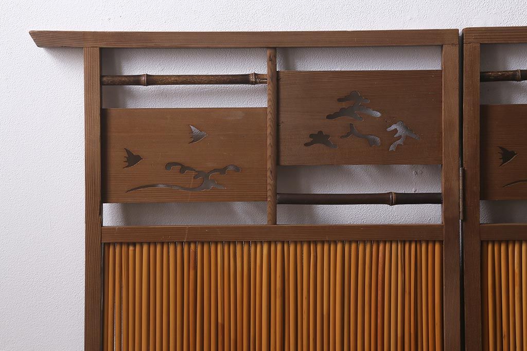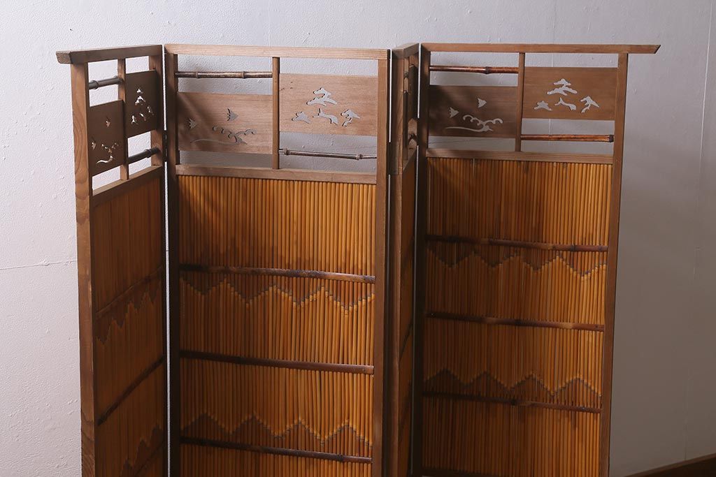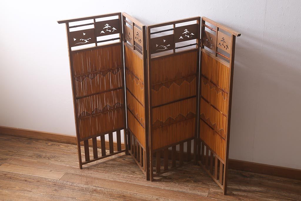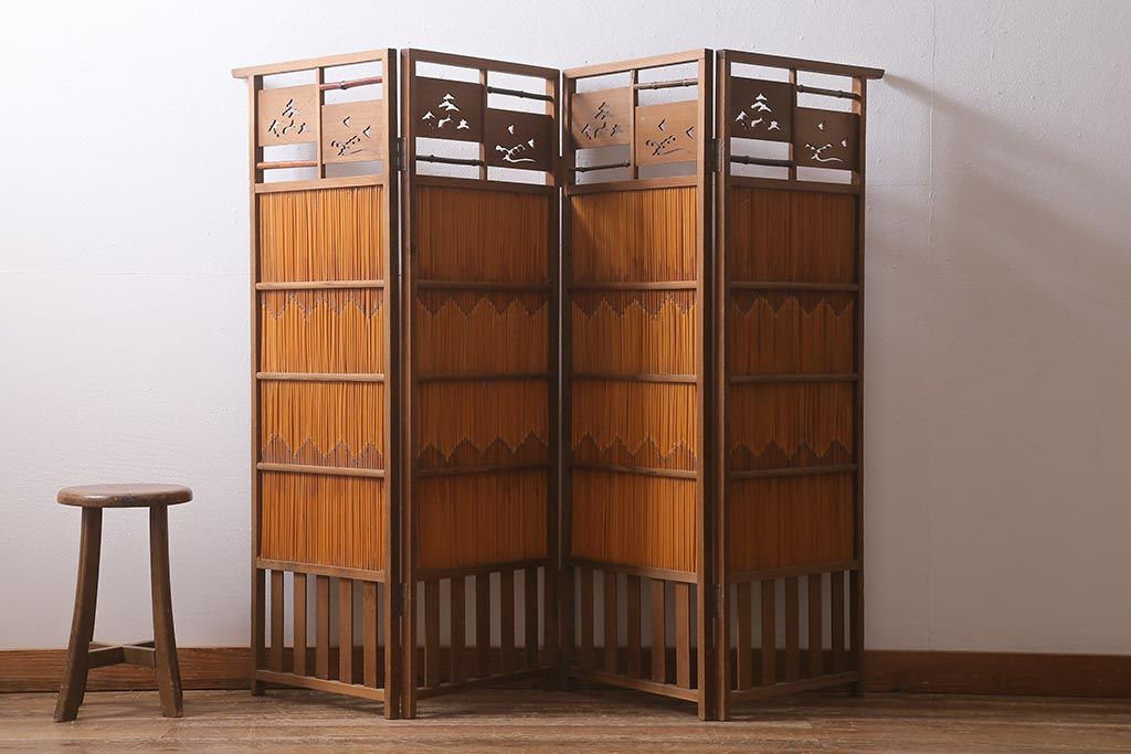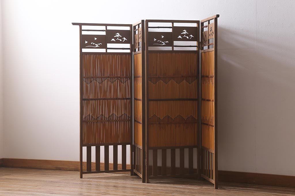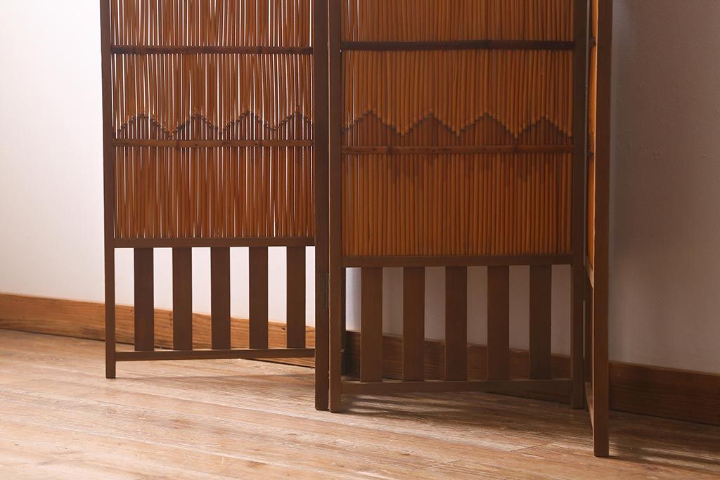 ビンテージ家具 昭和後期 凝ったデザインが魅力的な四連折り畳み式パーテーション(つい立て、衝立、仕切り)(R-041080)