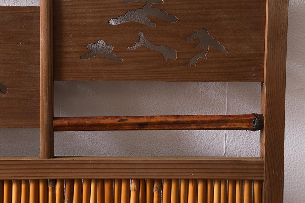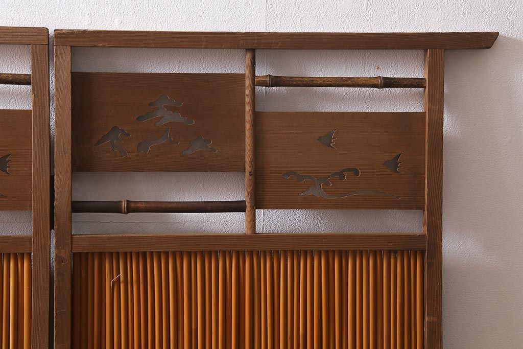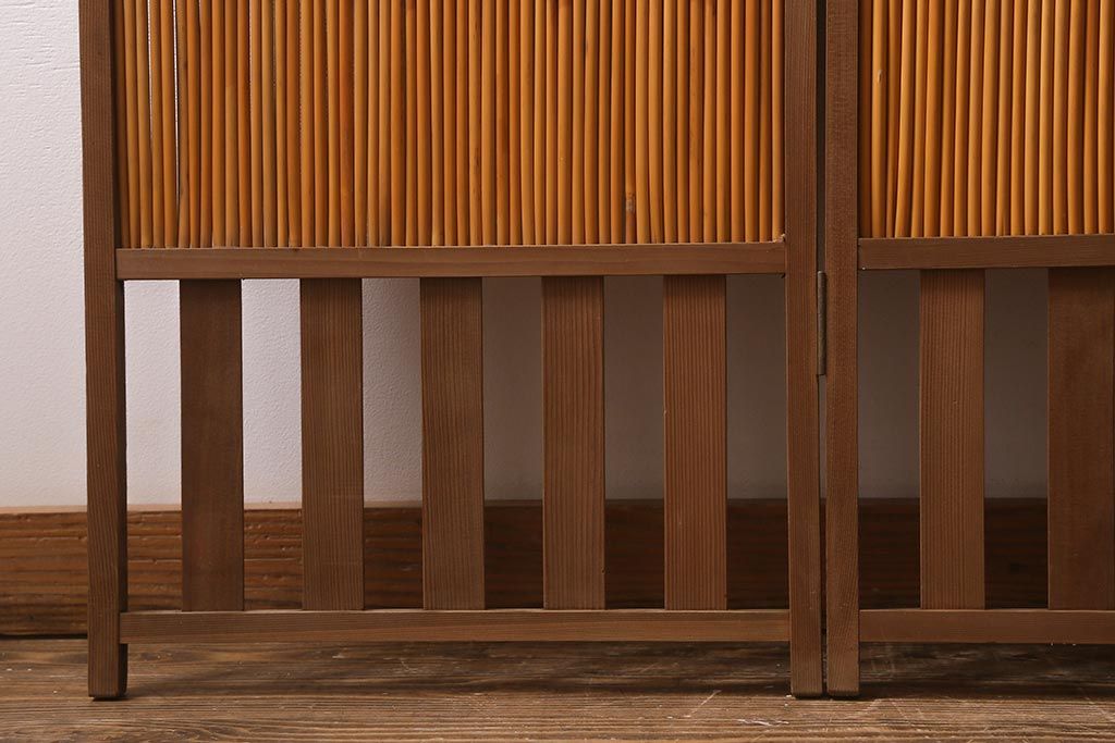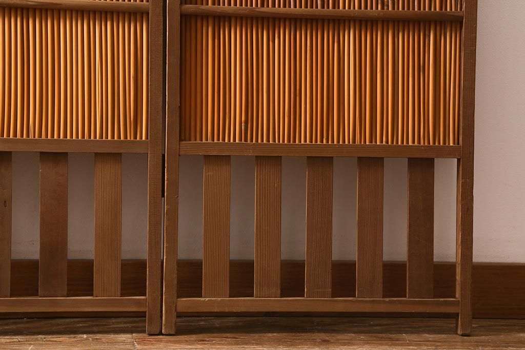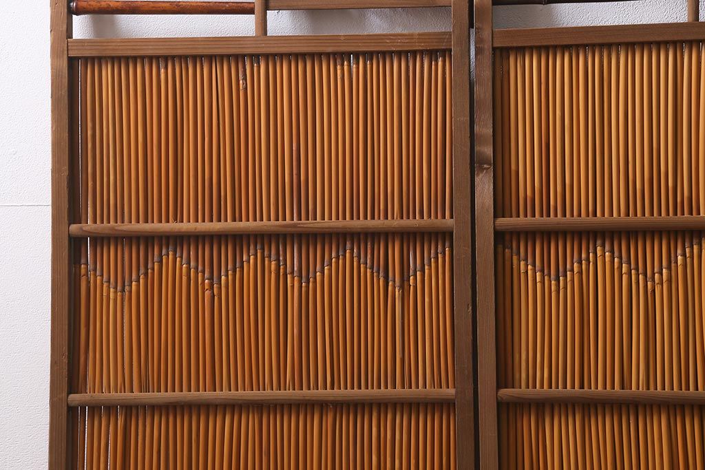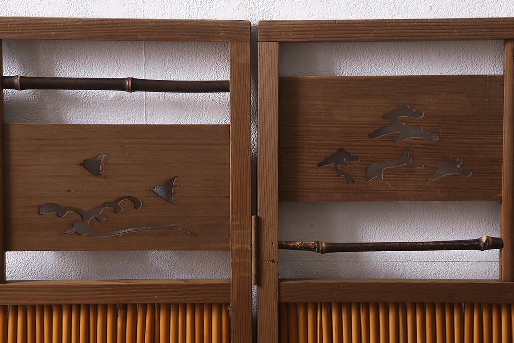 ビンテージ家具 昭和後期 凝ったデザインが魅力的な四連折り畳み式パーテーション(つい立て、衝立、仕切り)(R-041080)
