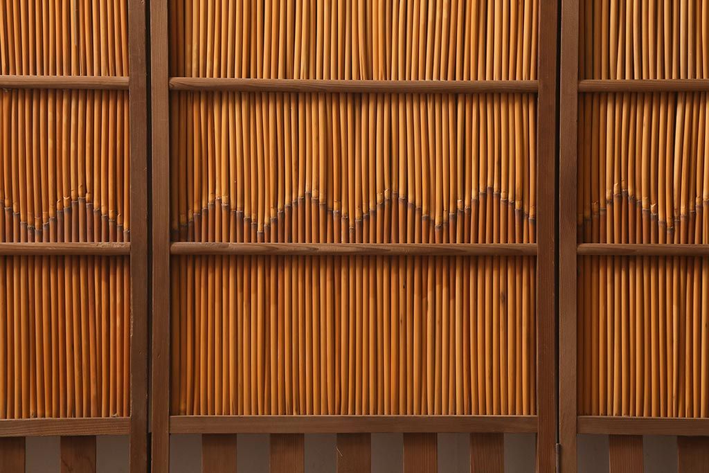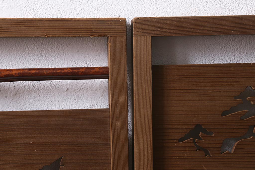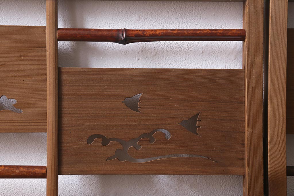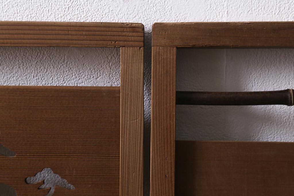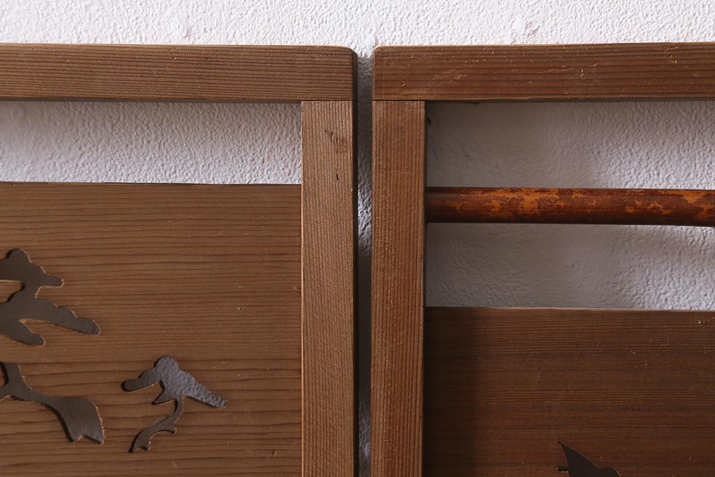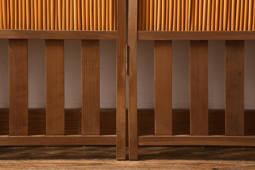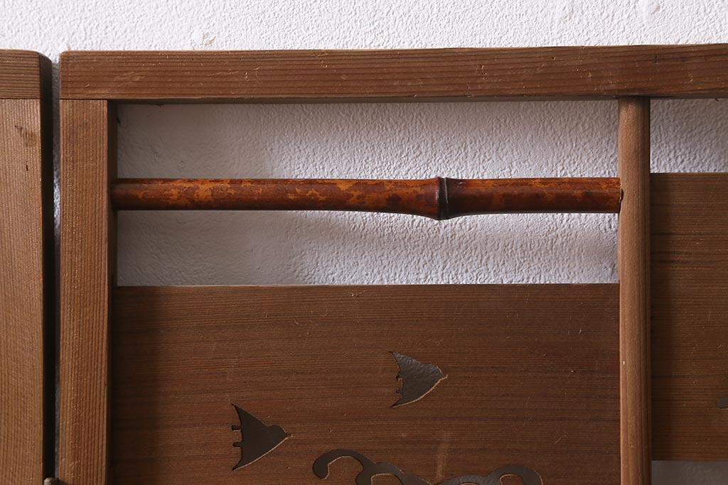 ビンテージ家具 昭和後期 凝ったデザインが魅力的な四連折り畳み式パーテーション(つい立て、衝立、仕切り)(R-041080)