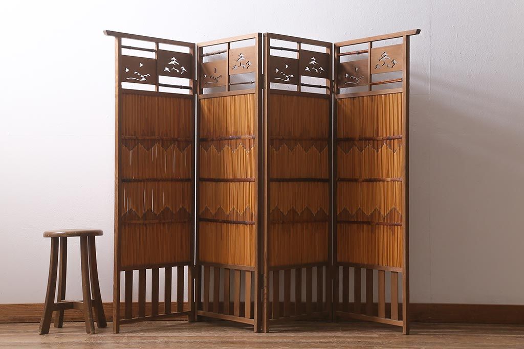ビンテージ家具 昭和後期 凝ったデザインが魅力的な四連折り畳み式パーテーション(つい立て、衝立、仕切り)(R-041080)です。