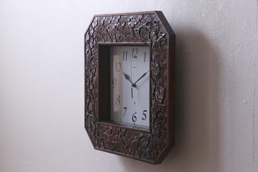 民芸家具 > 中古 伝統工芸 軽井沢彫り レア物!桜の彫りが優美な壁掛け時計(掛時計、柱時計)(R-041099)