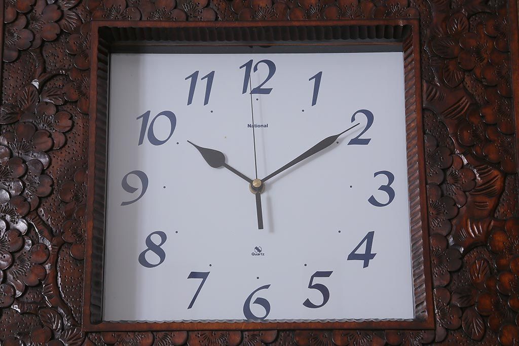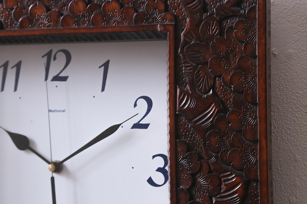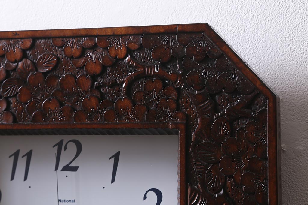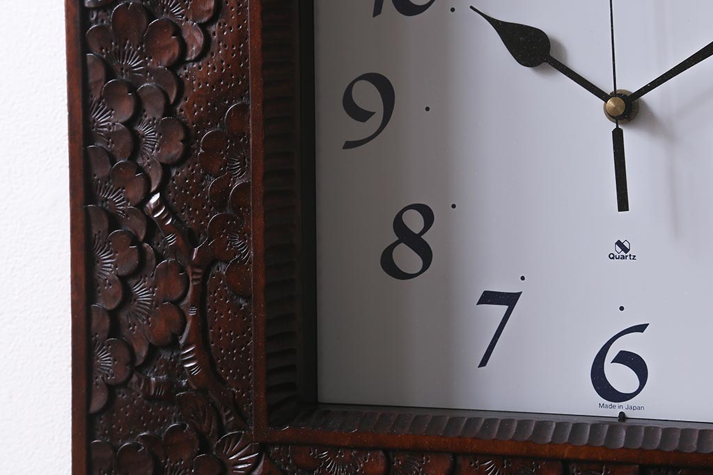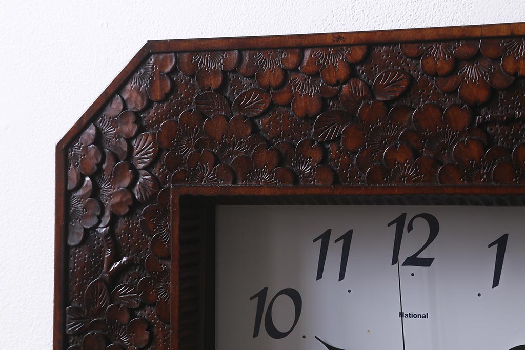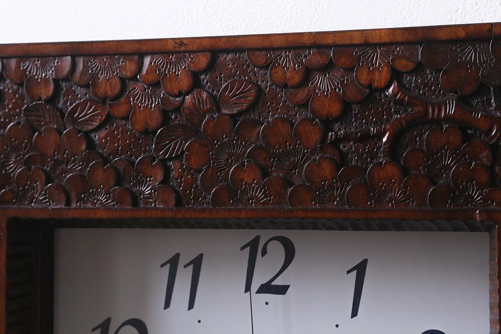 時計> 掛け時計 > 中古 伝統工芸 軽井沢彫り レア物!桜の彫りが優美な壁掛け時計(掛時計、柱時計)(R-041099)