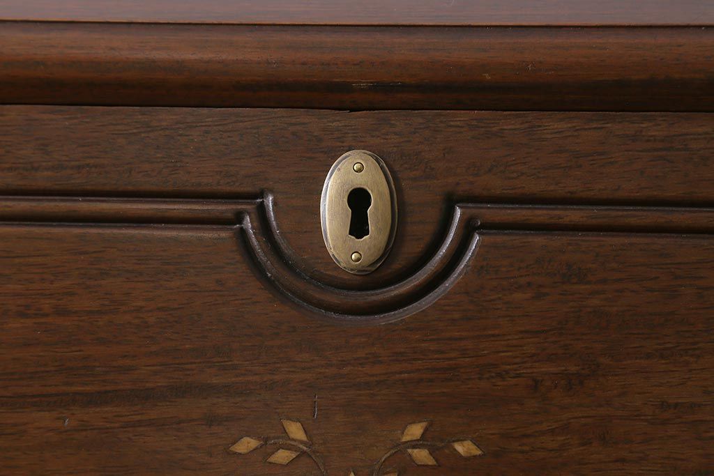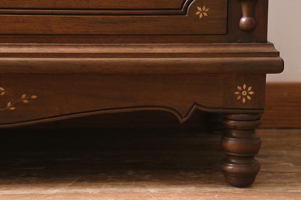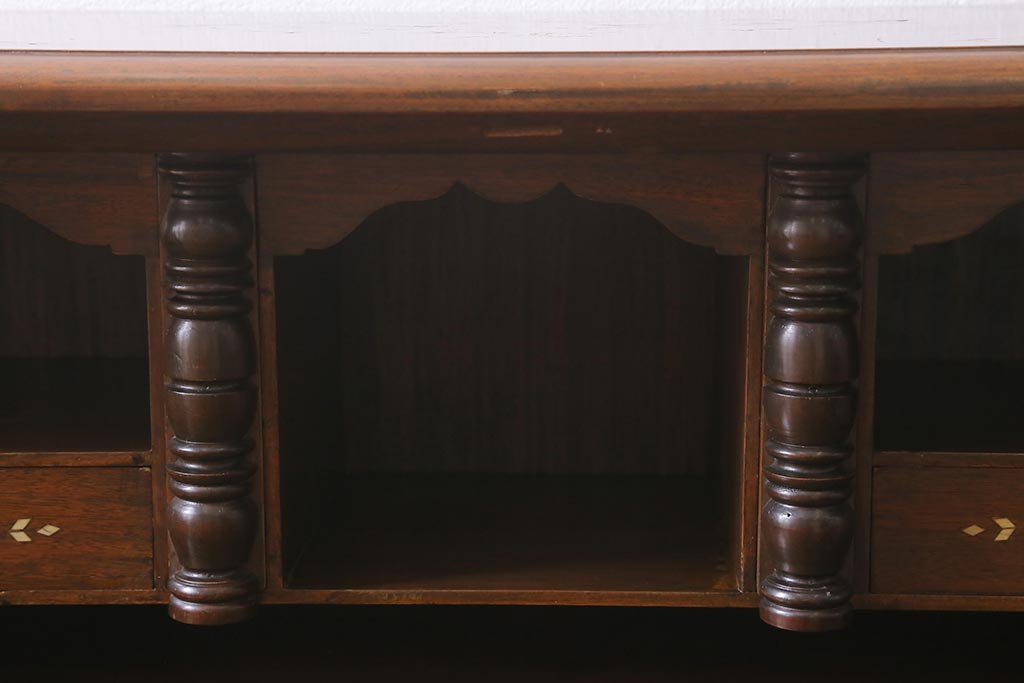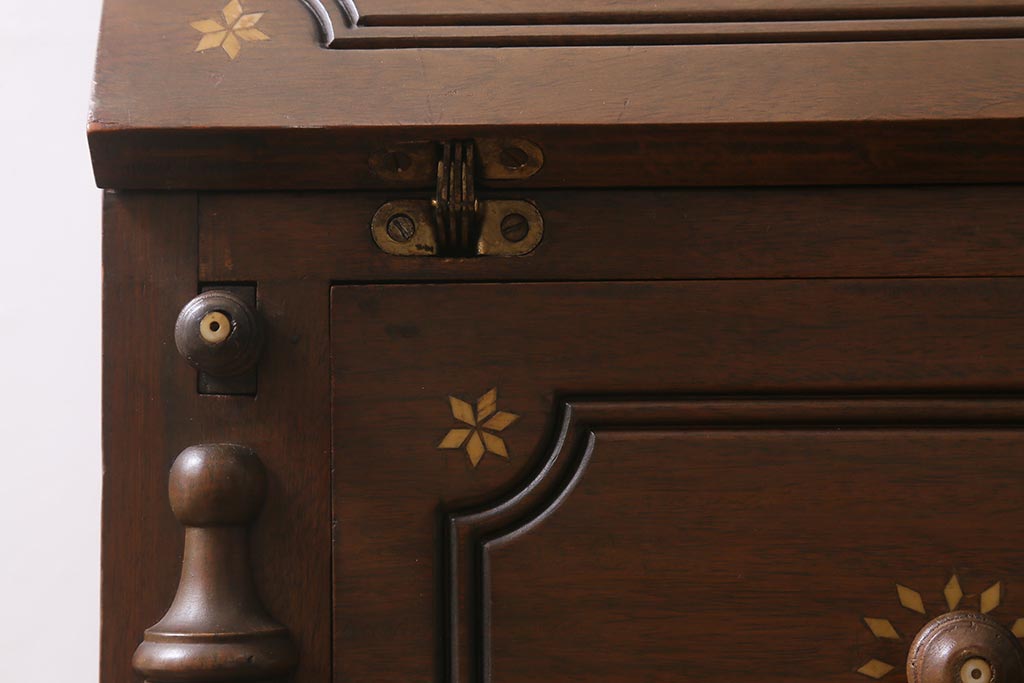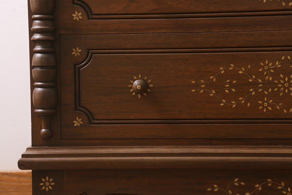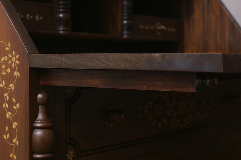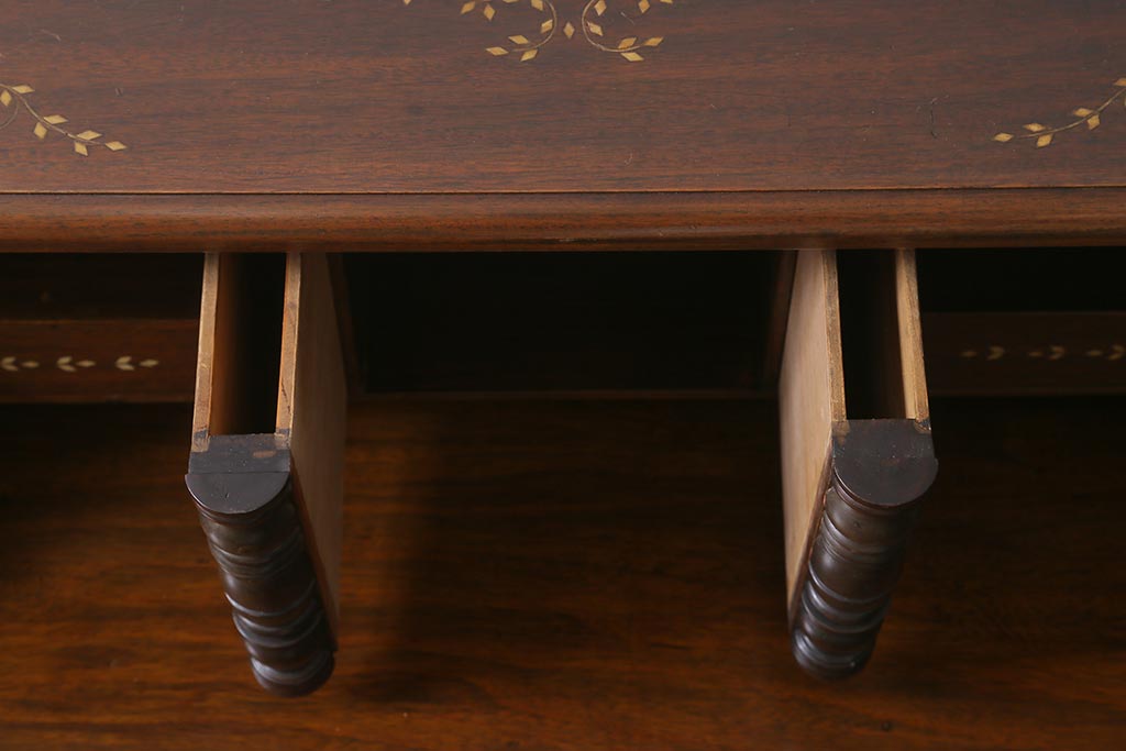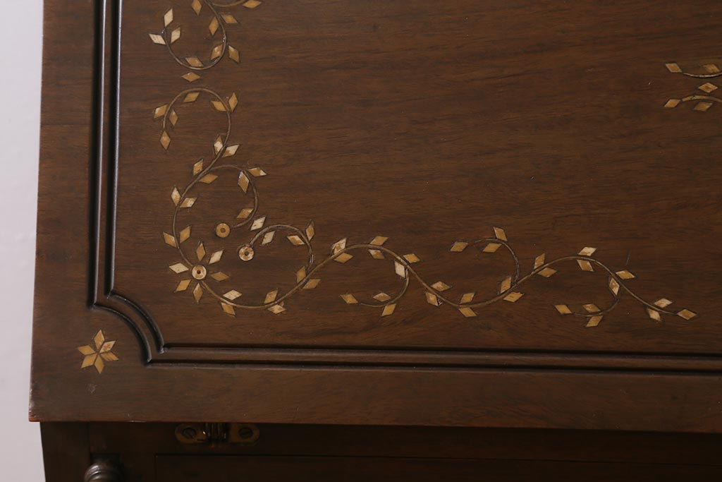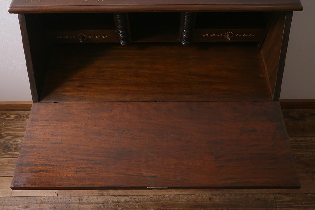 ヴィンテージ家具 ヨーロッパビンテージ 輸入家具 象嵌と挽き物細工が目を引くライティングビューロー(簿記机、在宅ワーク、在宅用ワークデスク、机、在宅ワーク、在宅用引き出し)(R-041133)