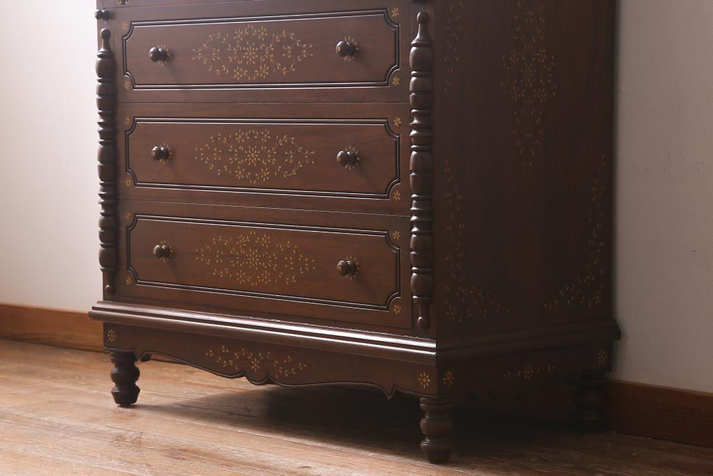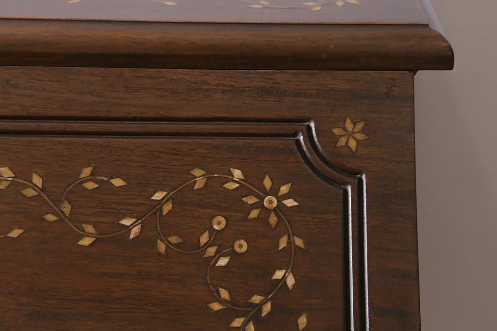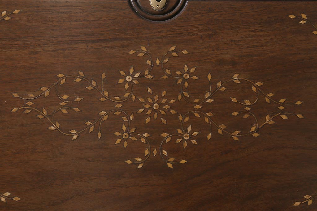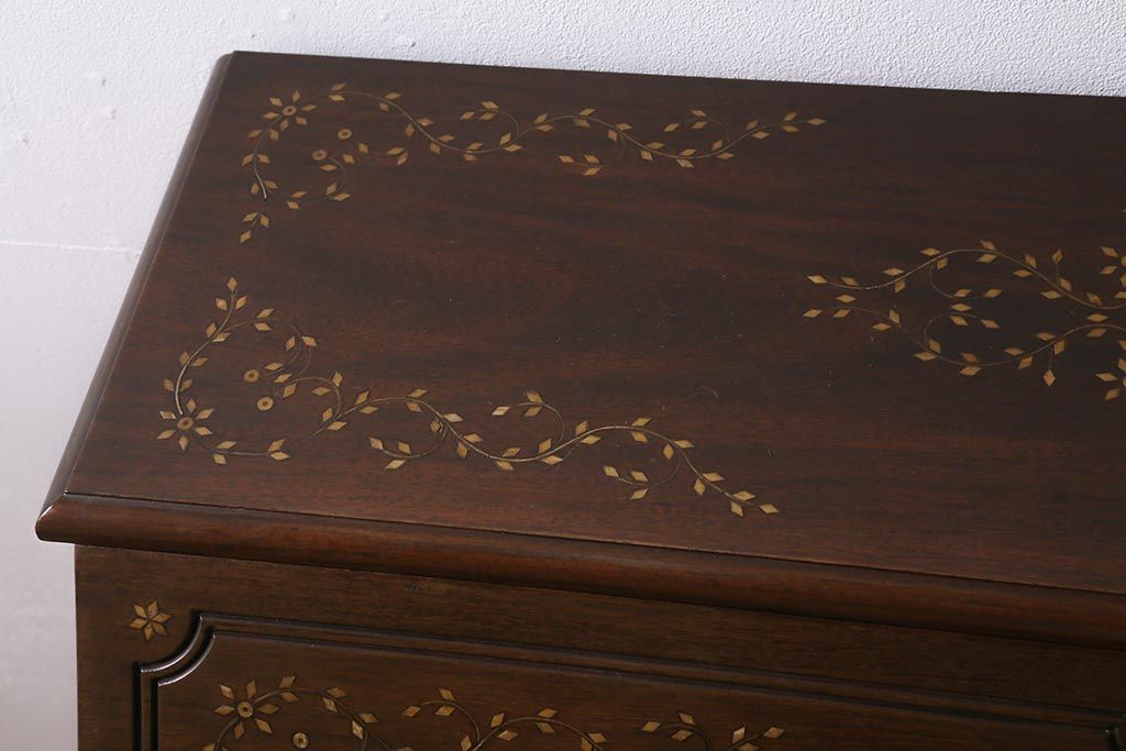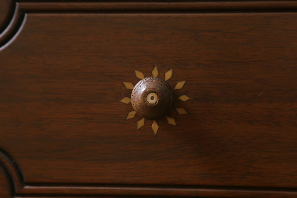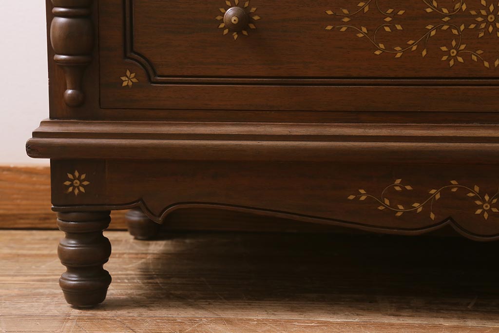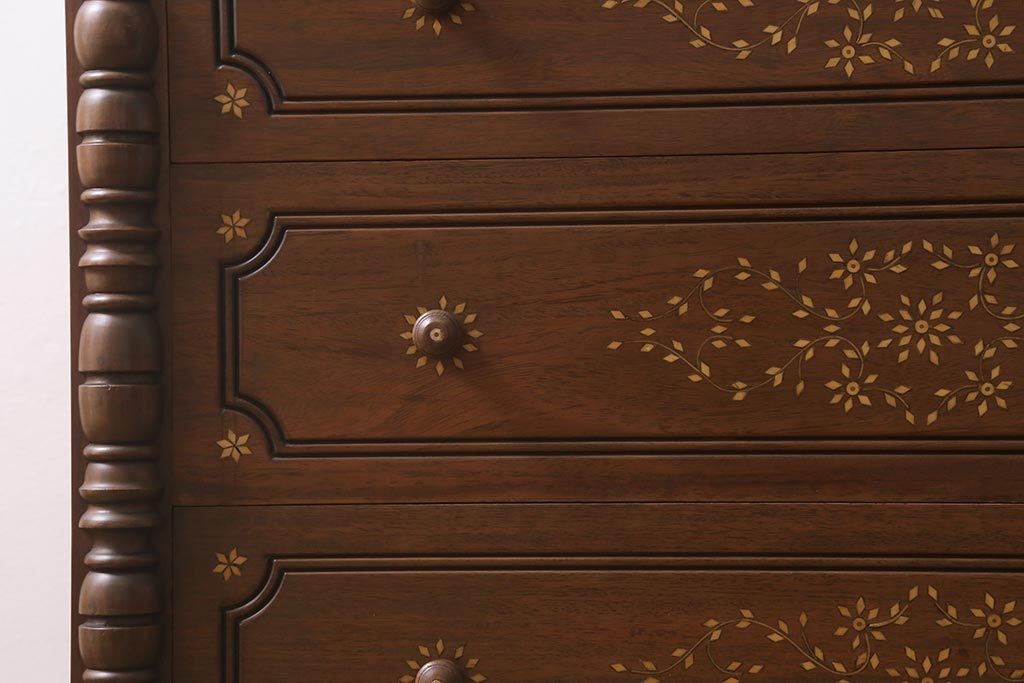 ラフジュ工房> デスク> ワークデスク > ヴィンテージ家具 ヨーロッパビンテージ 輸入家具 象嵌と挽き物細工が目を引くライティングビューロー(簿記机、在宅ワーク、在宅用ワークデスク、机、在宅ワーク、在宅用引き出し)(R-041133)
