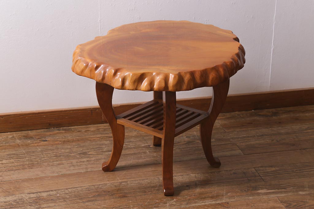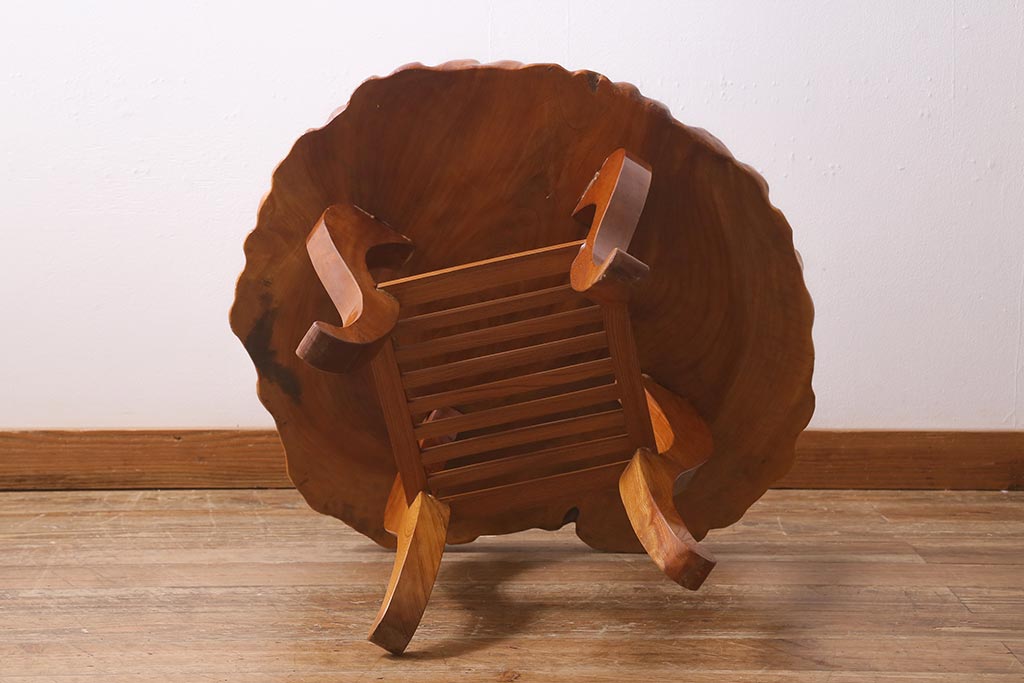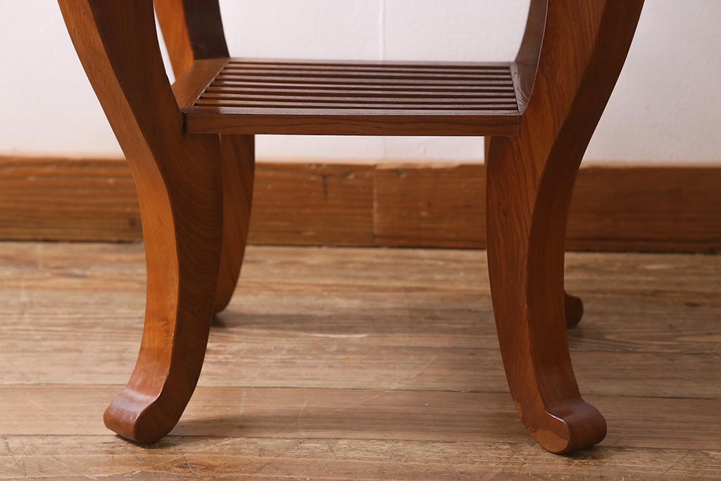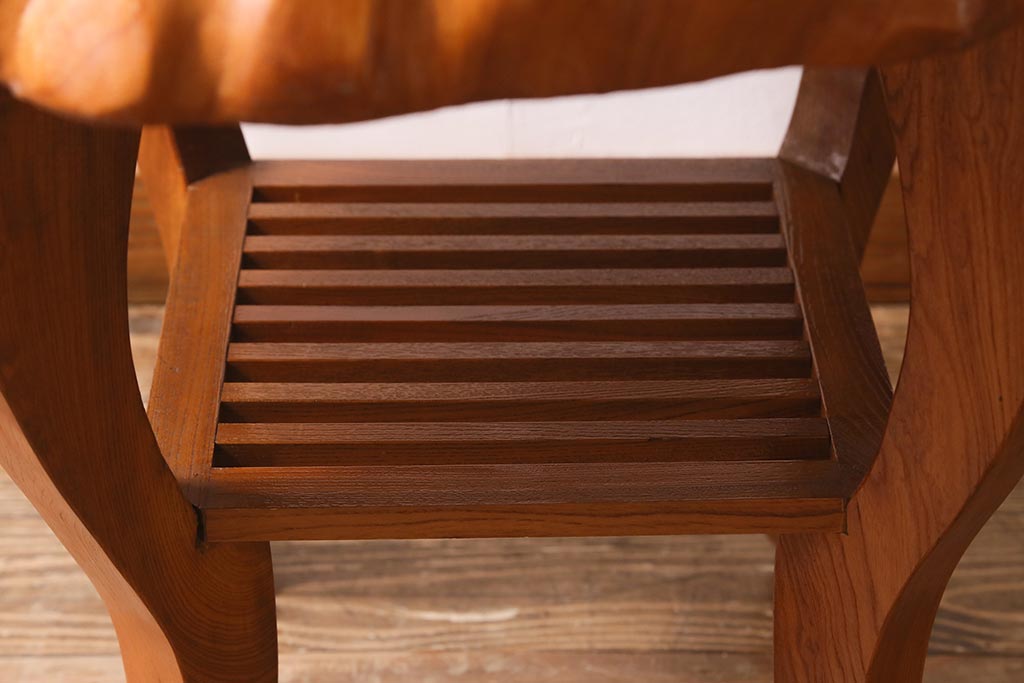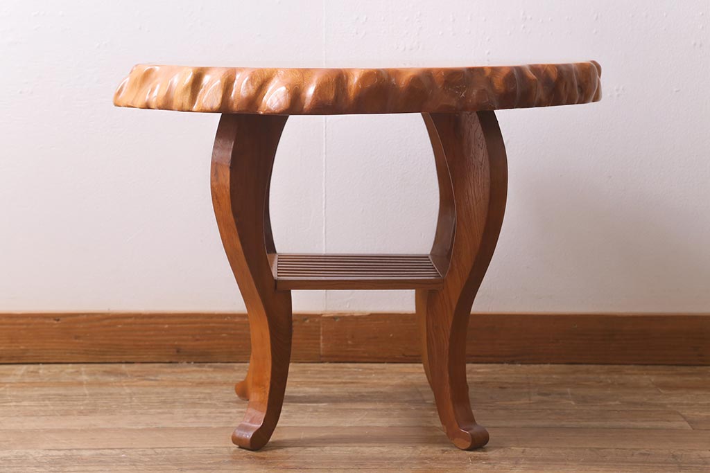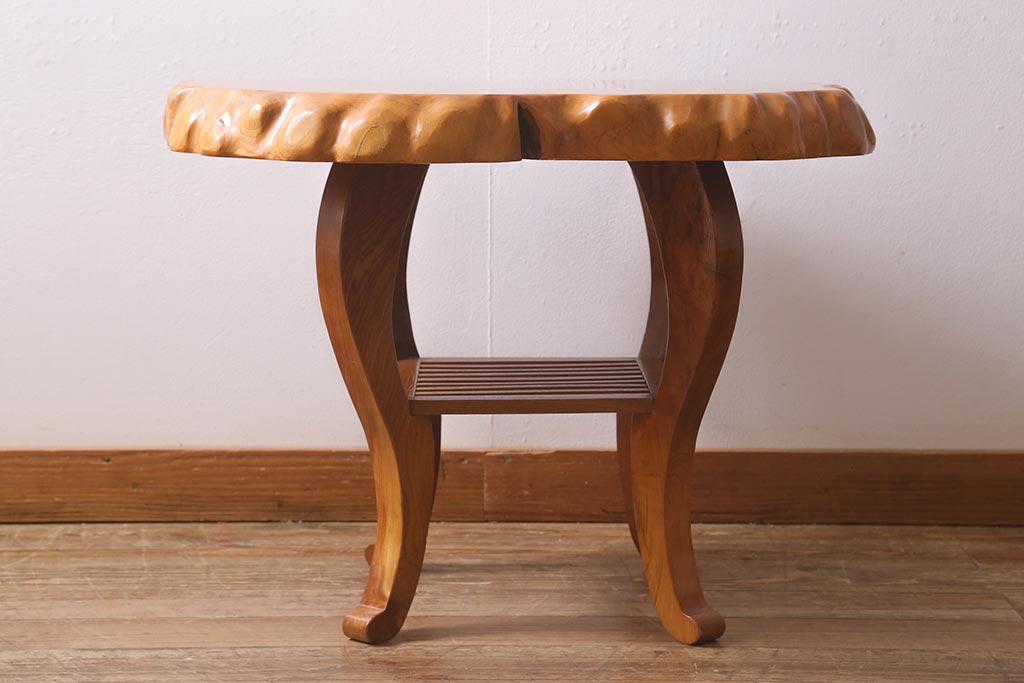 中古 民芸家具 総ケヤキ材 天板一枚板 独特の存在感を放つサイドテーブル(R-041050)