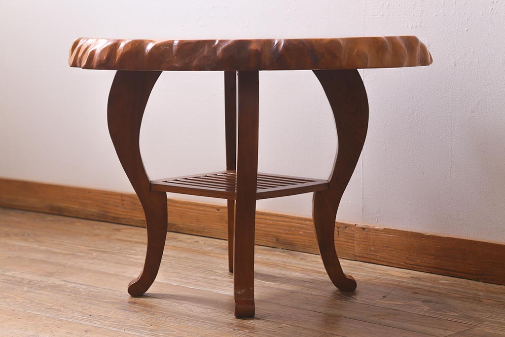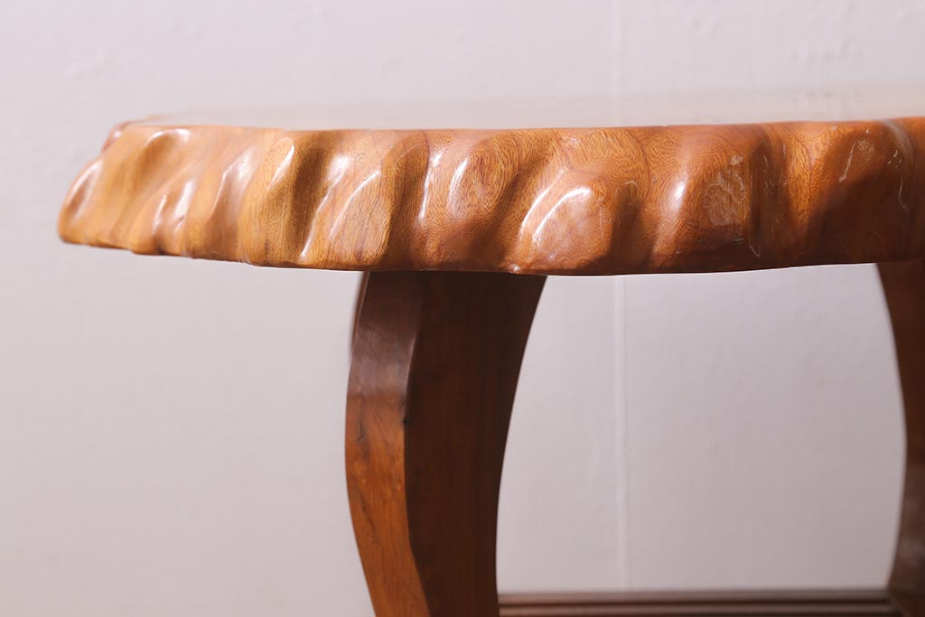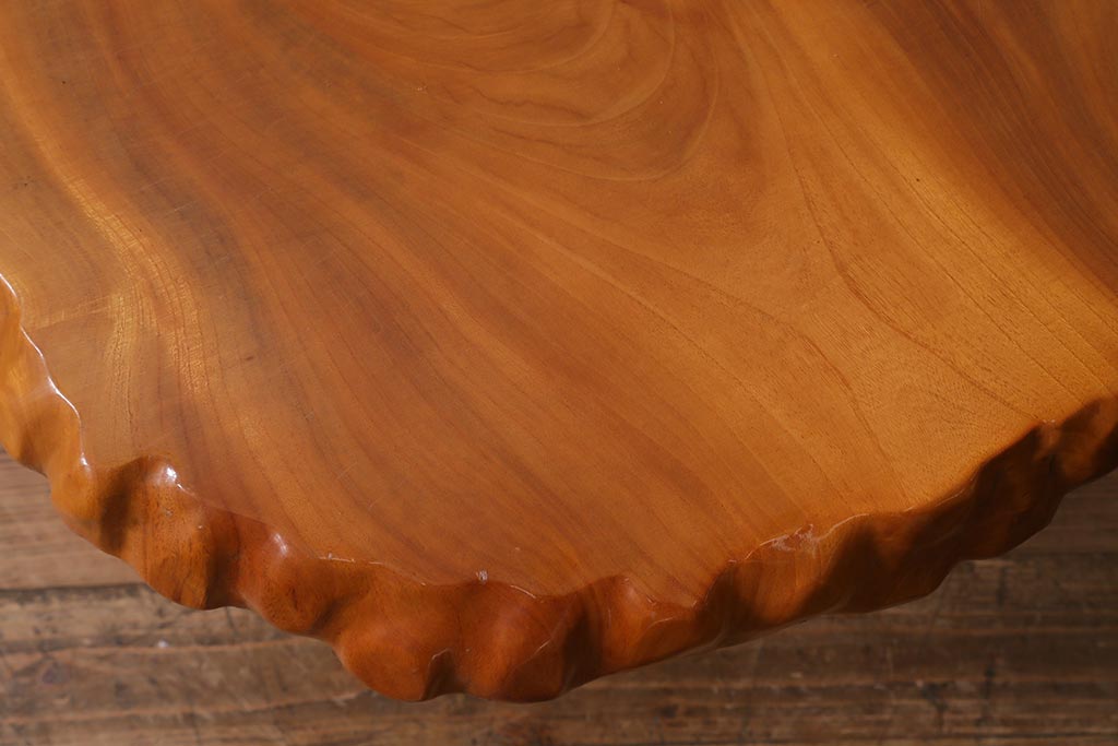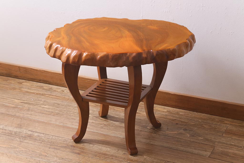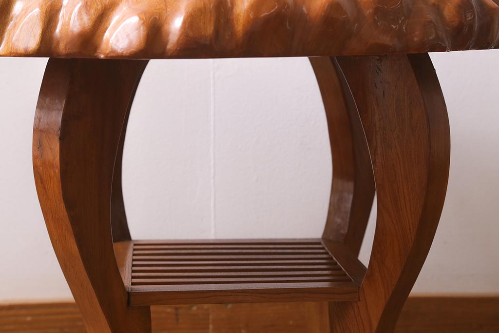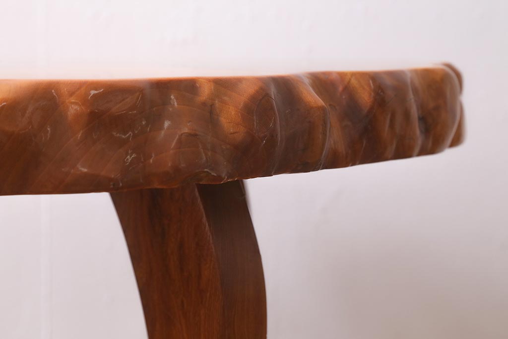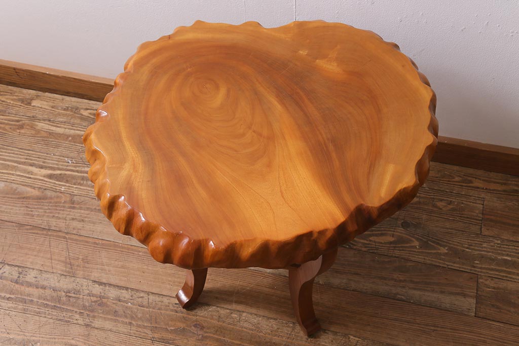 中古 民芸家具 総ケヤキ材 天板一枚板 独特の存在感を放つサイドテーブル(R-041050)